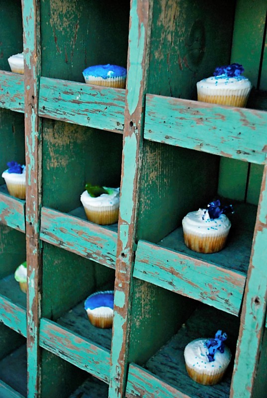 Found Pieces used: Bianca Riddling Rack, Bianca Sugar Mold, Erica Sugar Mold, Clementine Turquoise Cabinet, Crandall Green Chair, Esther Chalkboard