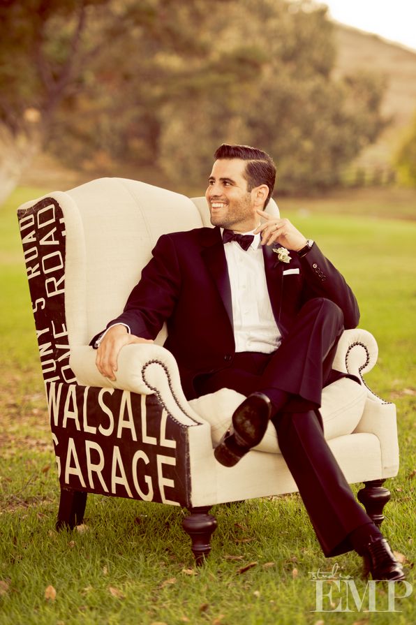 Our pieces used at this wedding: Palmer Leather Settee, Louis Gold Chairs, Ashlan Ropute Sign Wingback