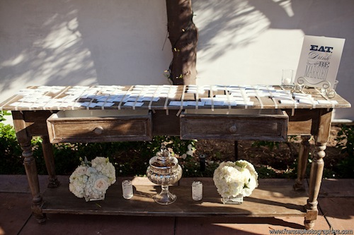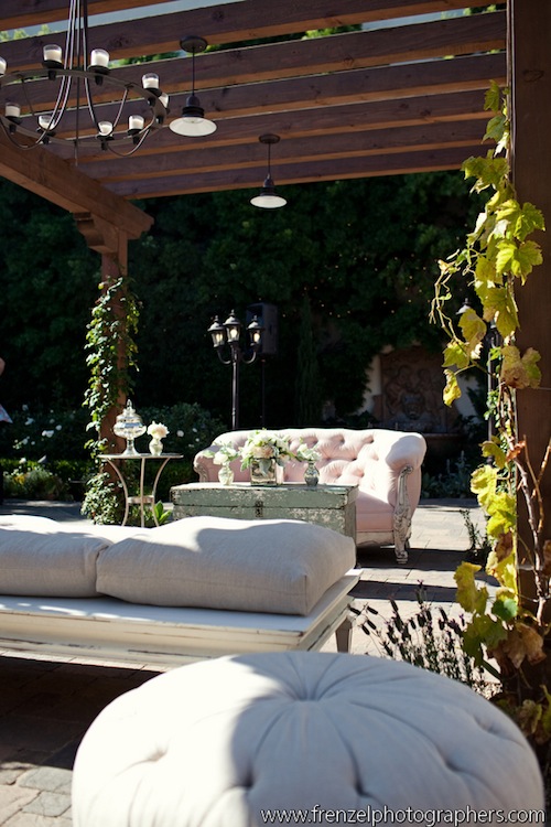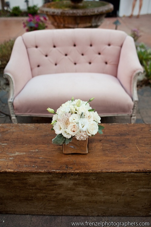 Pieces used at this wedding: Jordana Blush Settee, Jamie Blush Settee, Kennebunk Blue Trunk, Salem Painted Trunk, Trisha Kantha Bench, Nicholas Side Table, Jocelyn Tufted Cushion, Miller Sofa Table, Katelyn Dropleaf Table