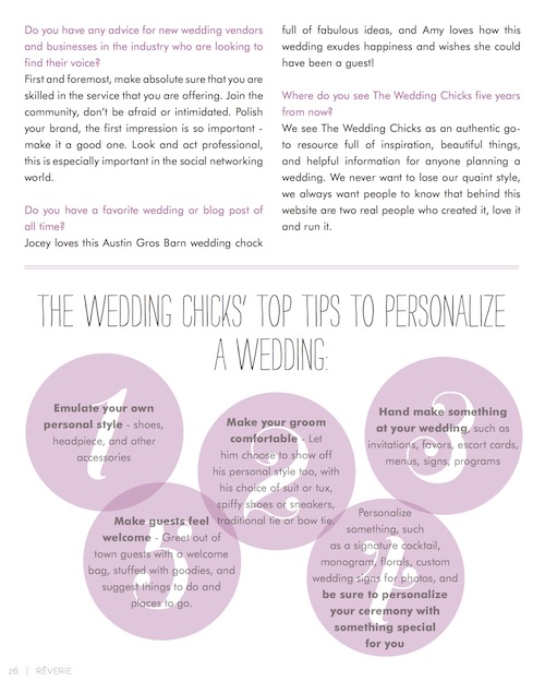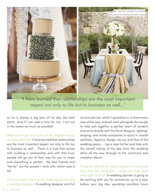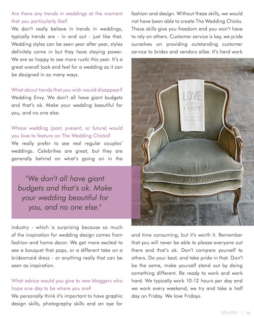 If you haven’t already, check out the newest issue of Reverie Magazine. There is all kinds of beauty on these pages and inspiration galore! I am so happy to see two articles with our furniture in it….truly blessed! Check out more on the Wedding Chicks post from the shoot below! Love those Chicks!!!