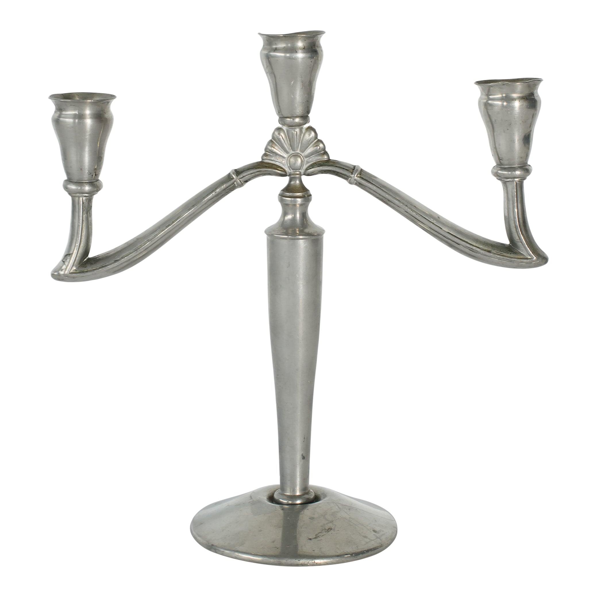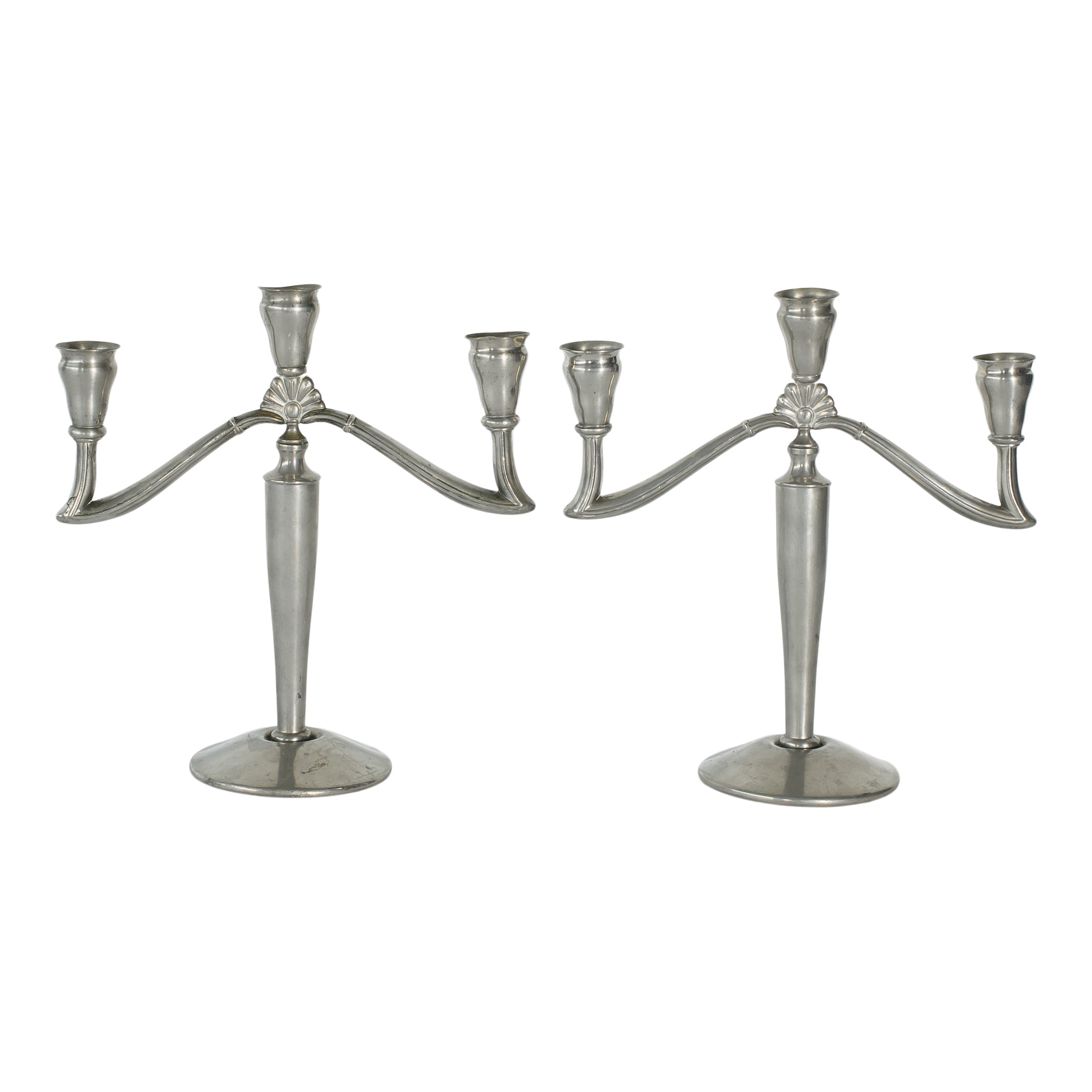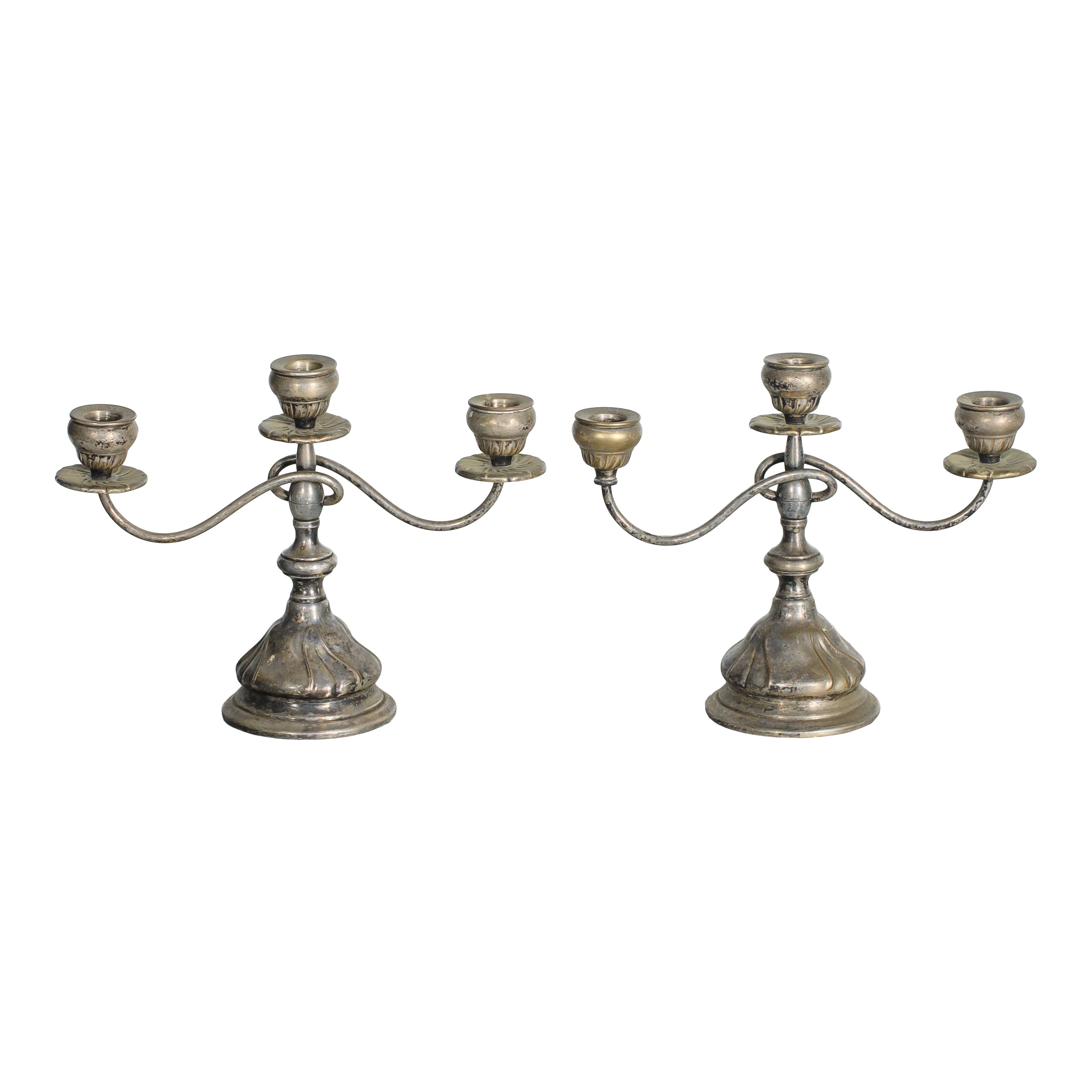 Assorted silver candelabras in various shapes and sizes. Rents individually.