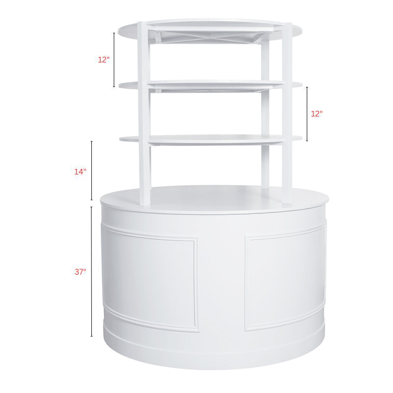 Looking for a statement shelf? Check out the Nicole Round White Shelf! Perfectly paired with the Nicole White Bar, it's the ideal choice for event and wedding back bars. Add a touch of personality with this round shelf.