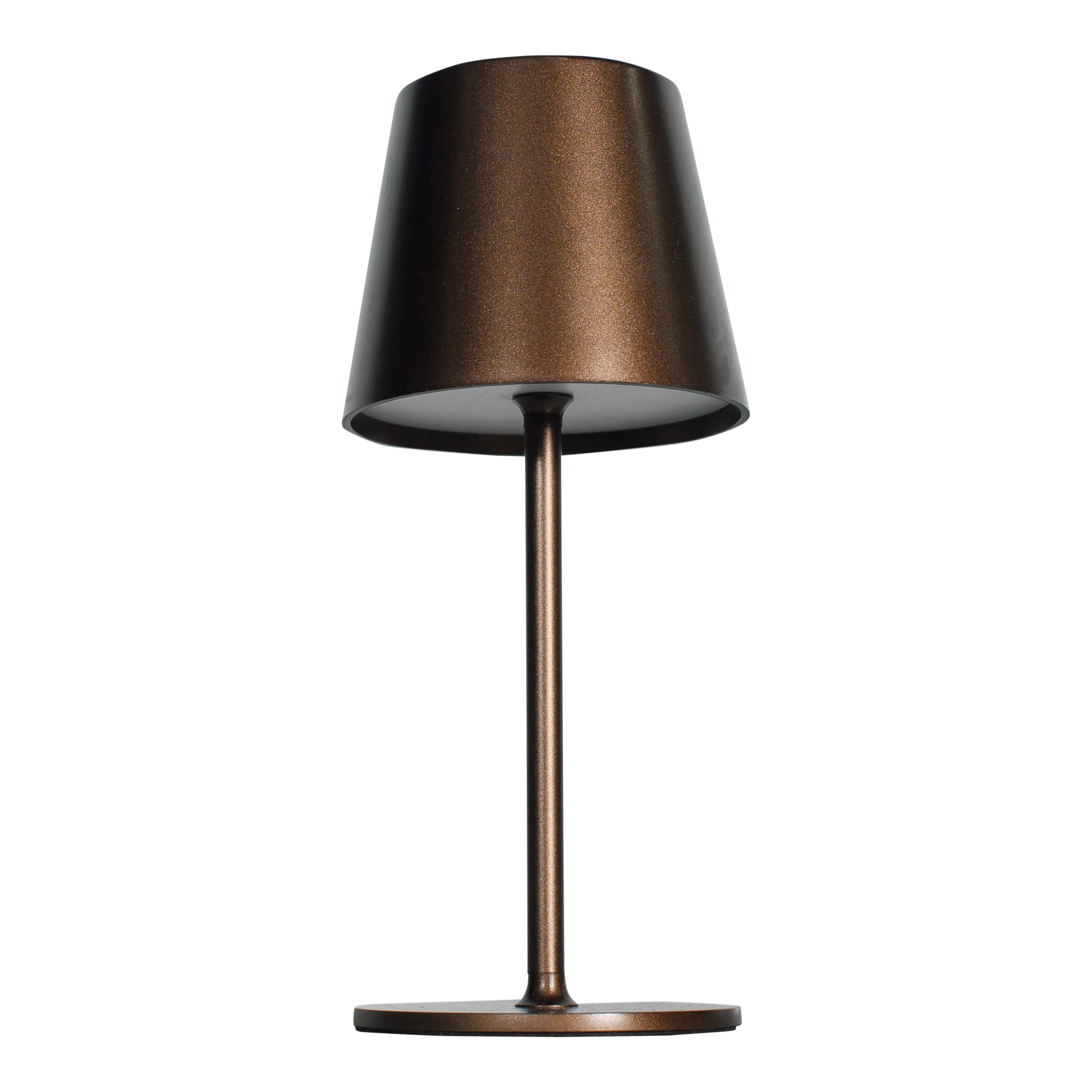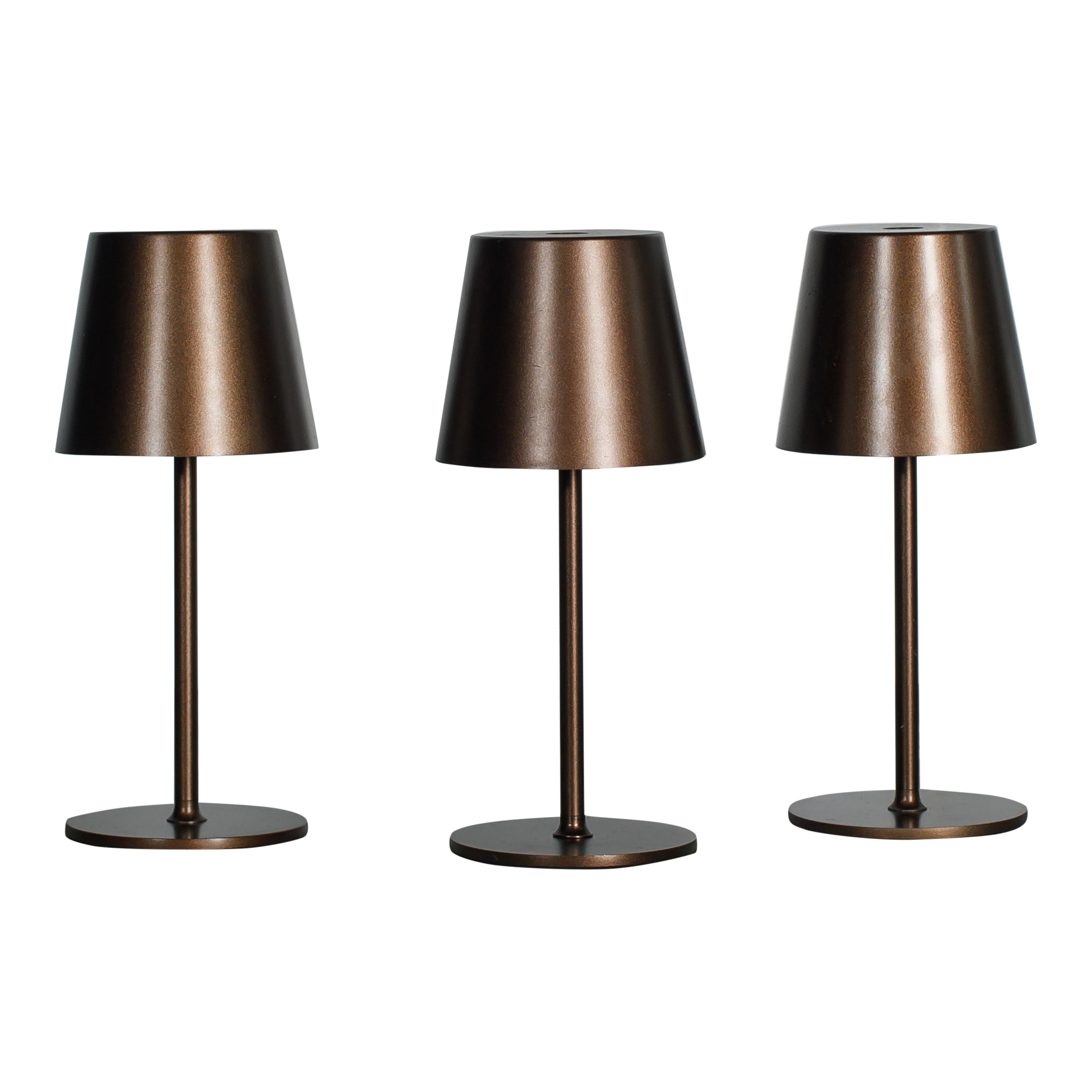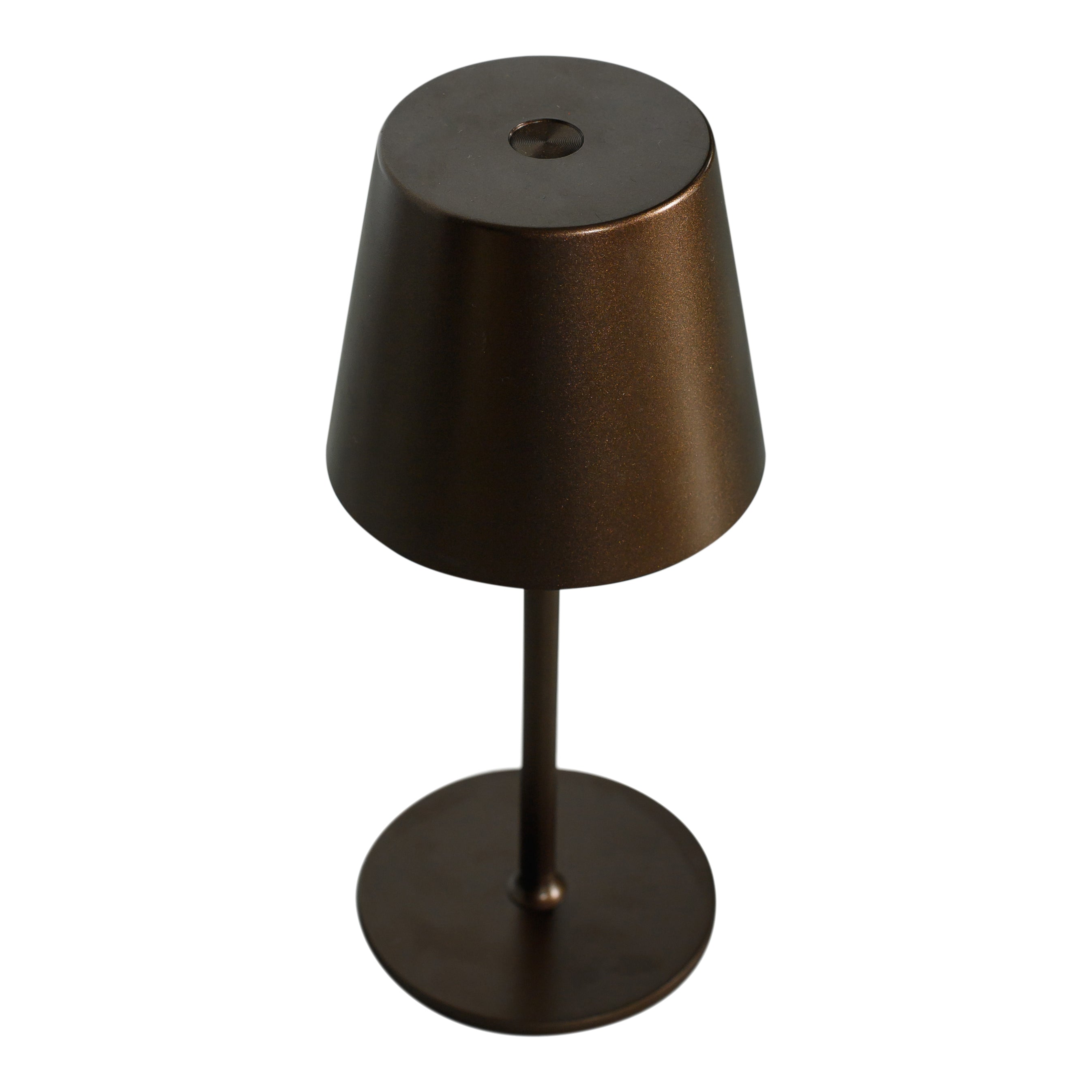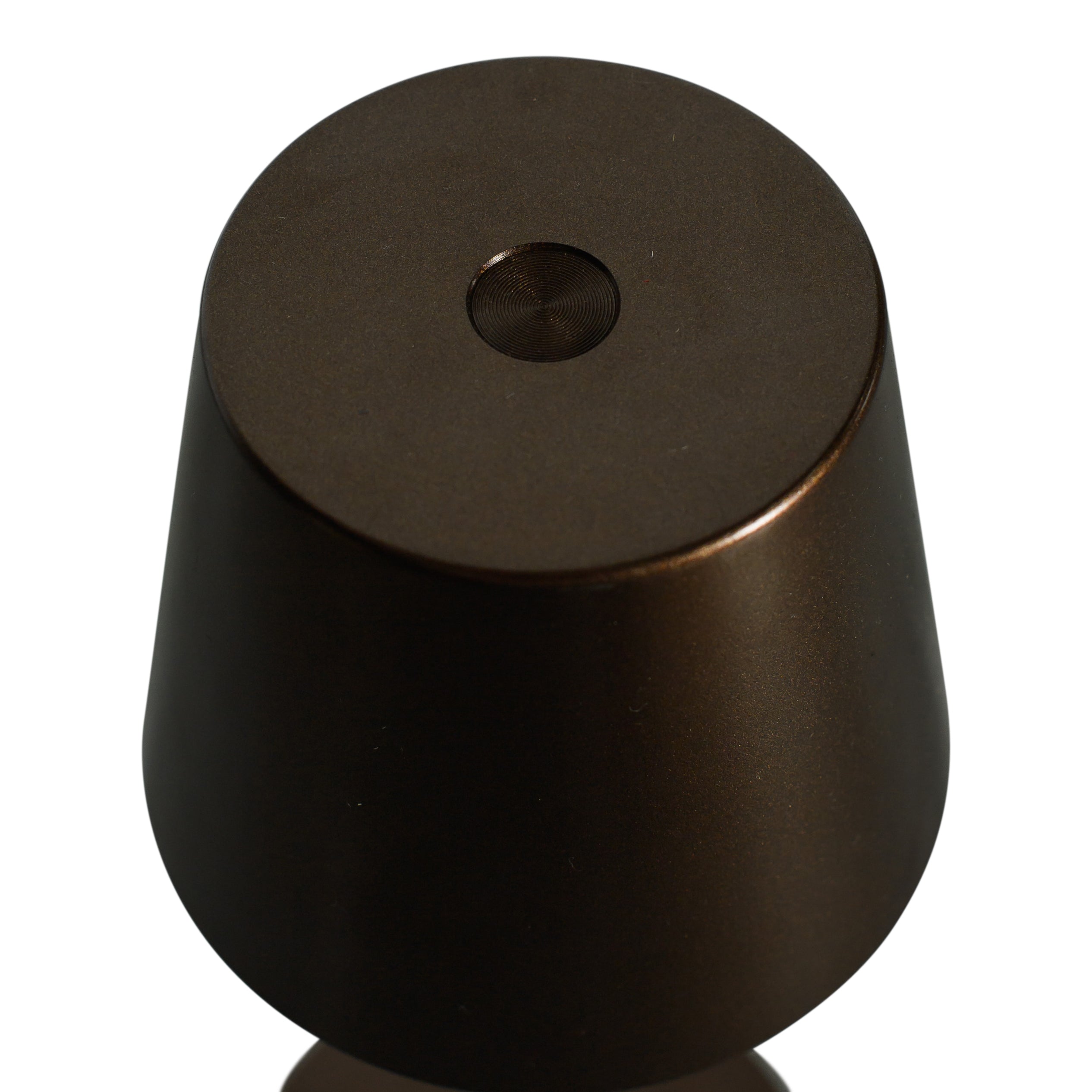 The Stetson Lamp features a sleek bronze finish and modern silhouette, making it a versatile lighting accent for both contemporary and classic setups. Its cordless, rechargeable design offers easy placement on dining tables, bars, or lounge groupings.
