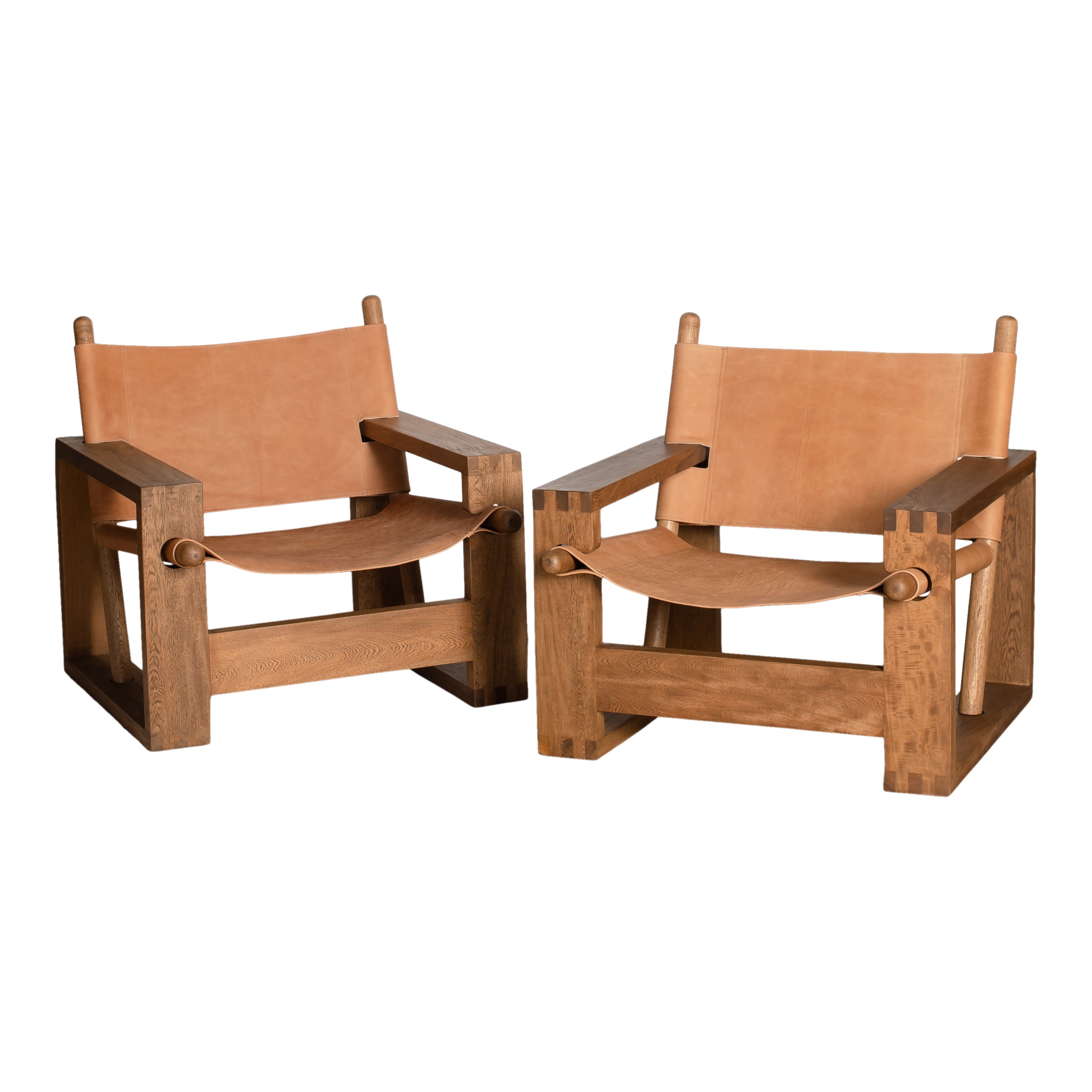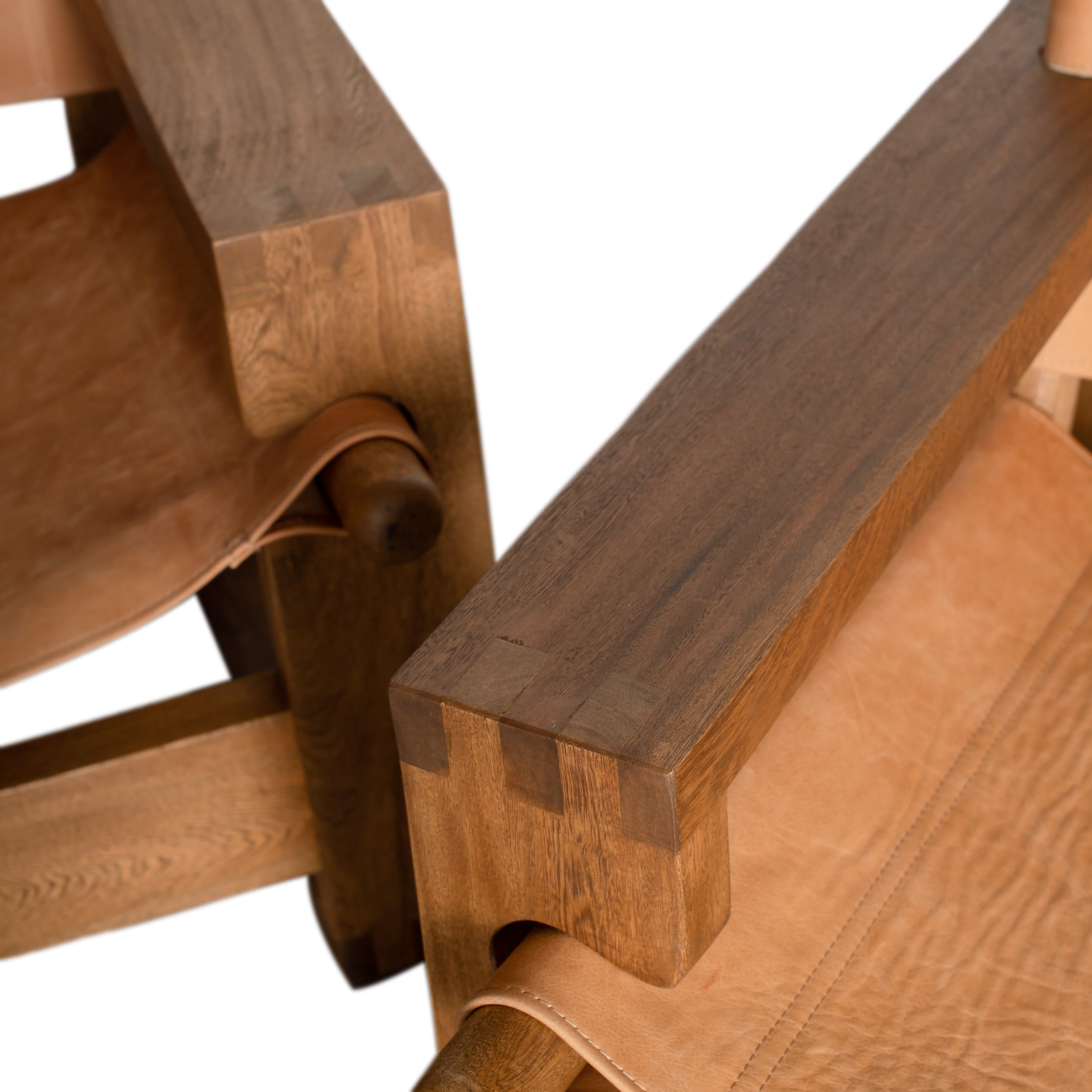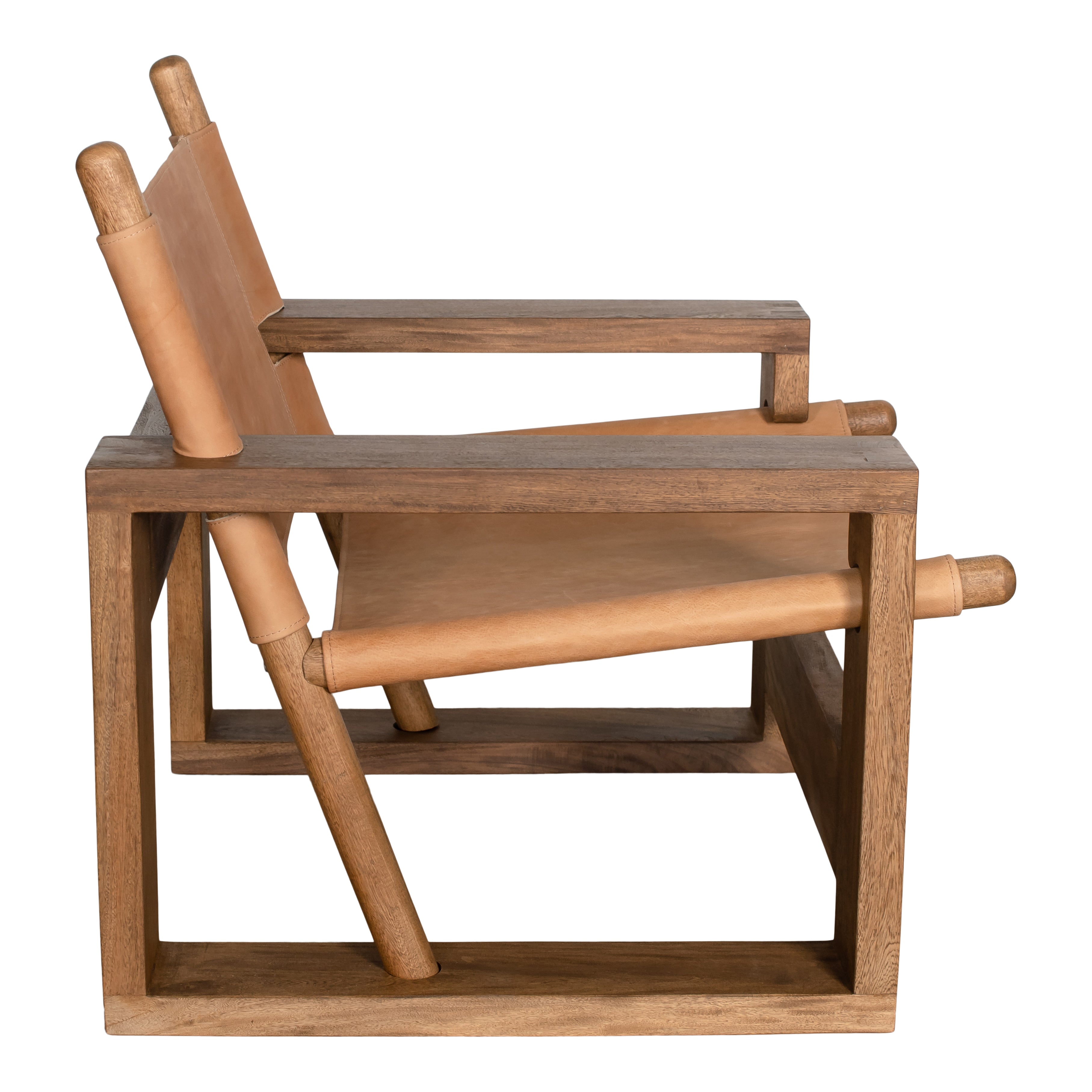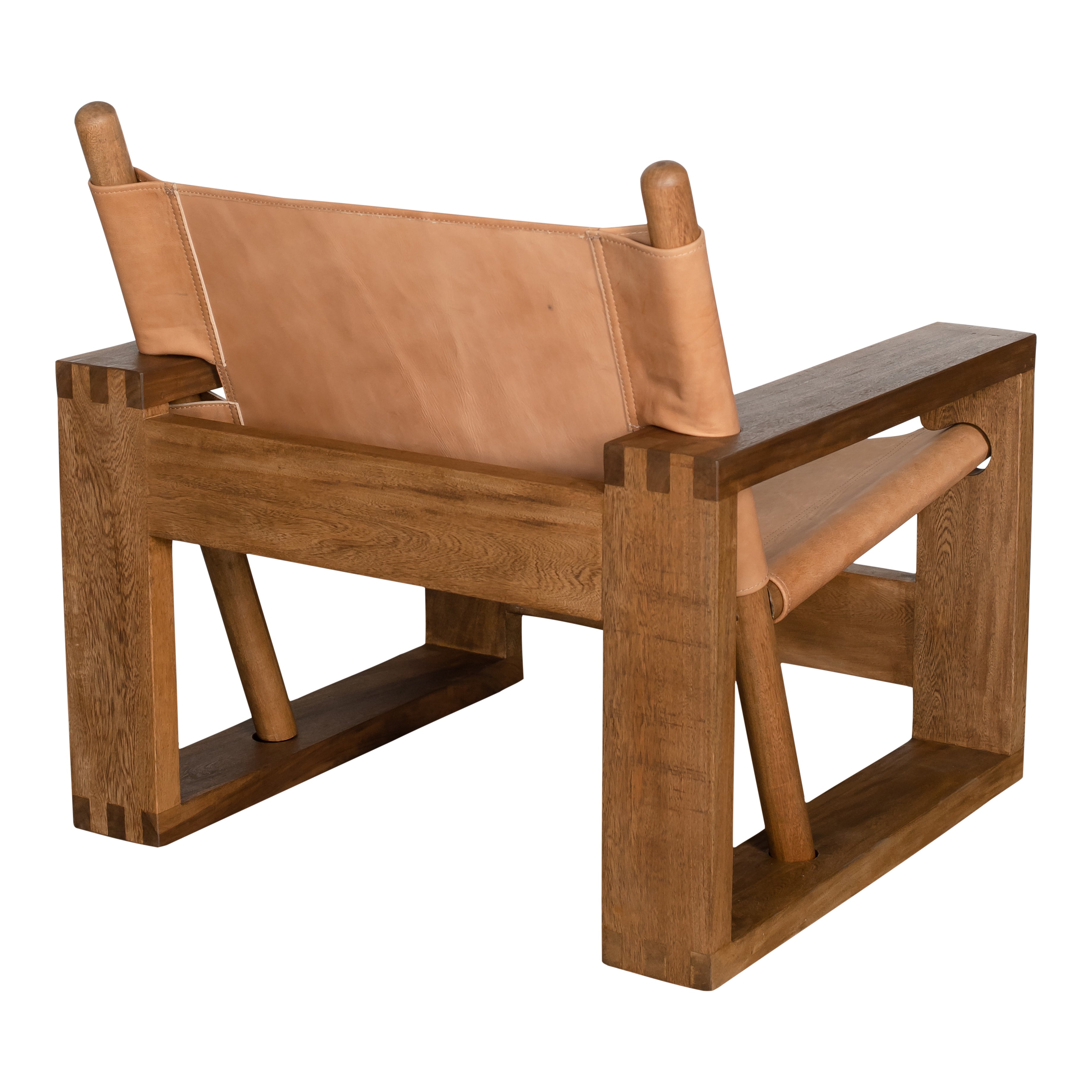 The Briggs Cognac Armchair combines a solid wood frame with natural leather seating for a look that’s both bold and timeless. Its sling-style seat and backrest bring a relaxed feel, while the angular frame and dovetail joinery showcase craftsmanship and detail. Ideal for lounge areas or paired seating arrangements.