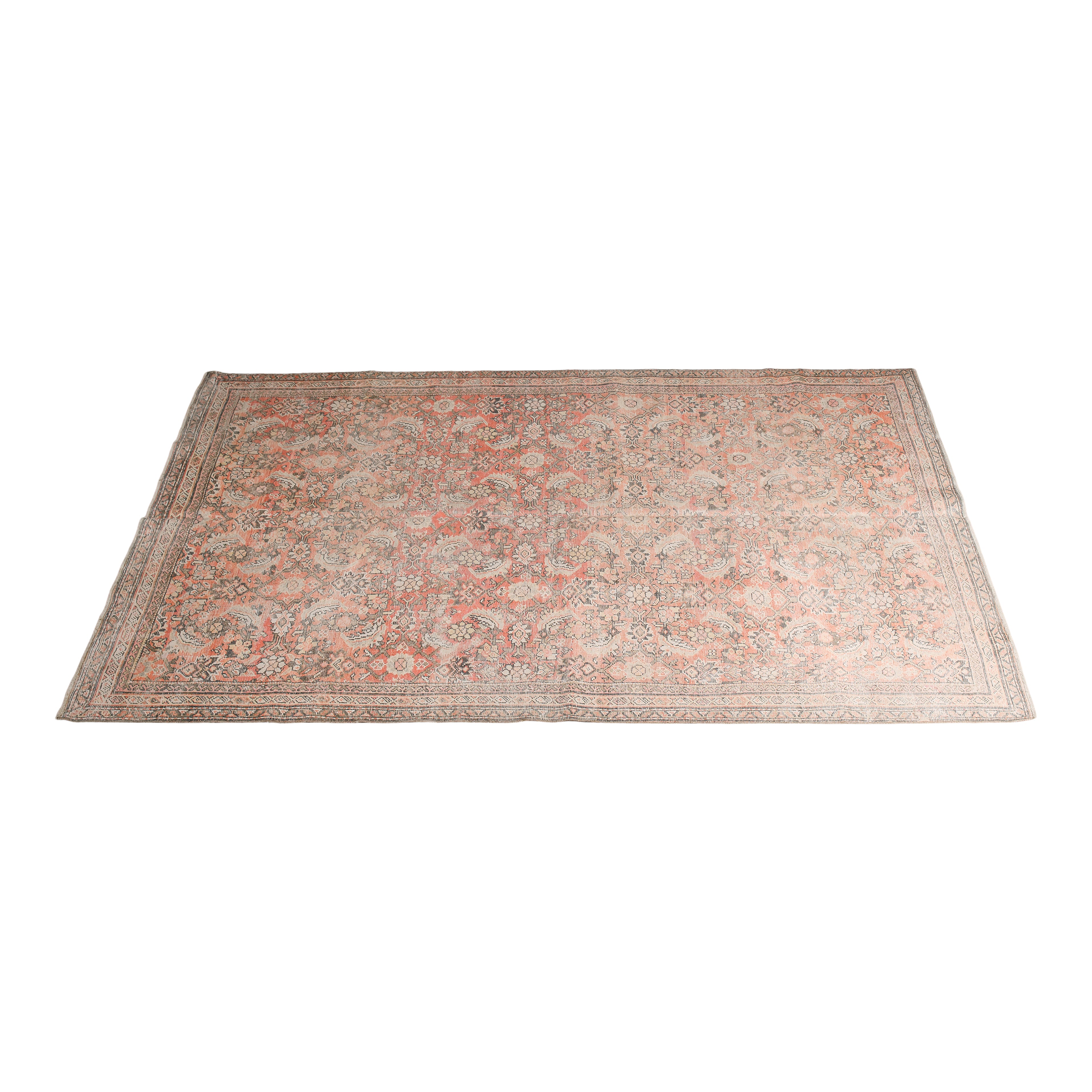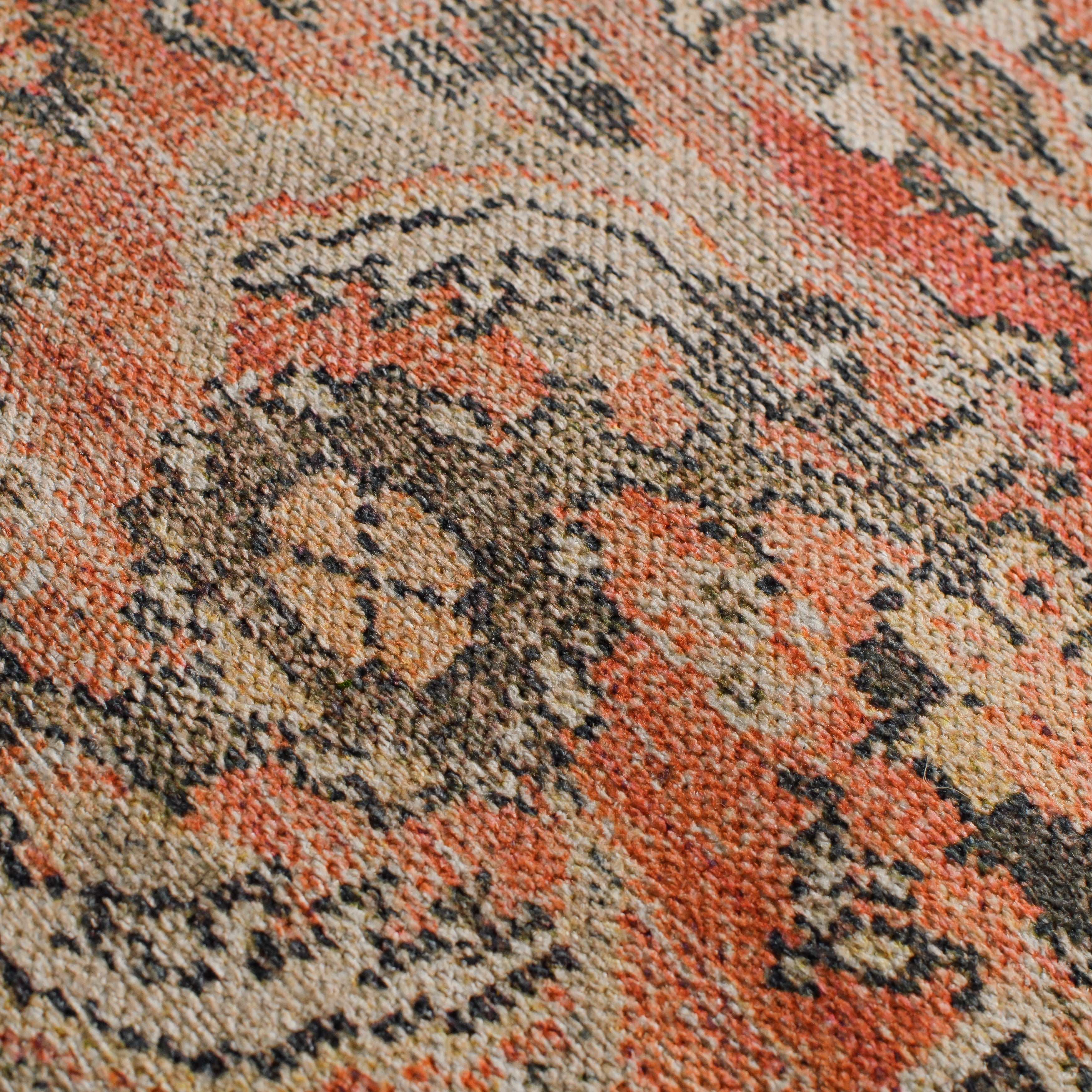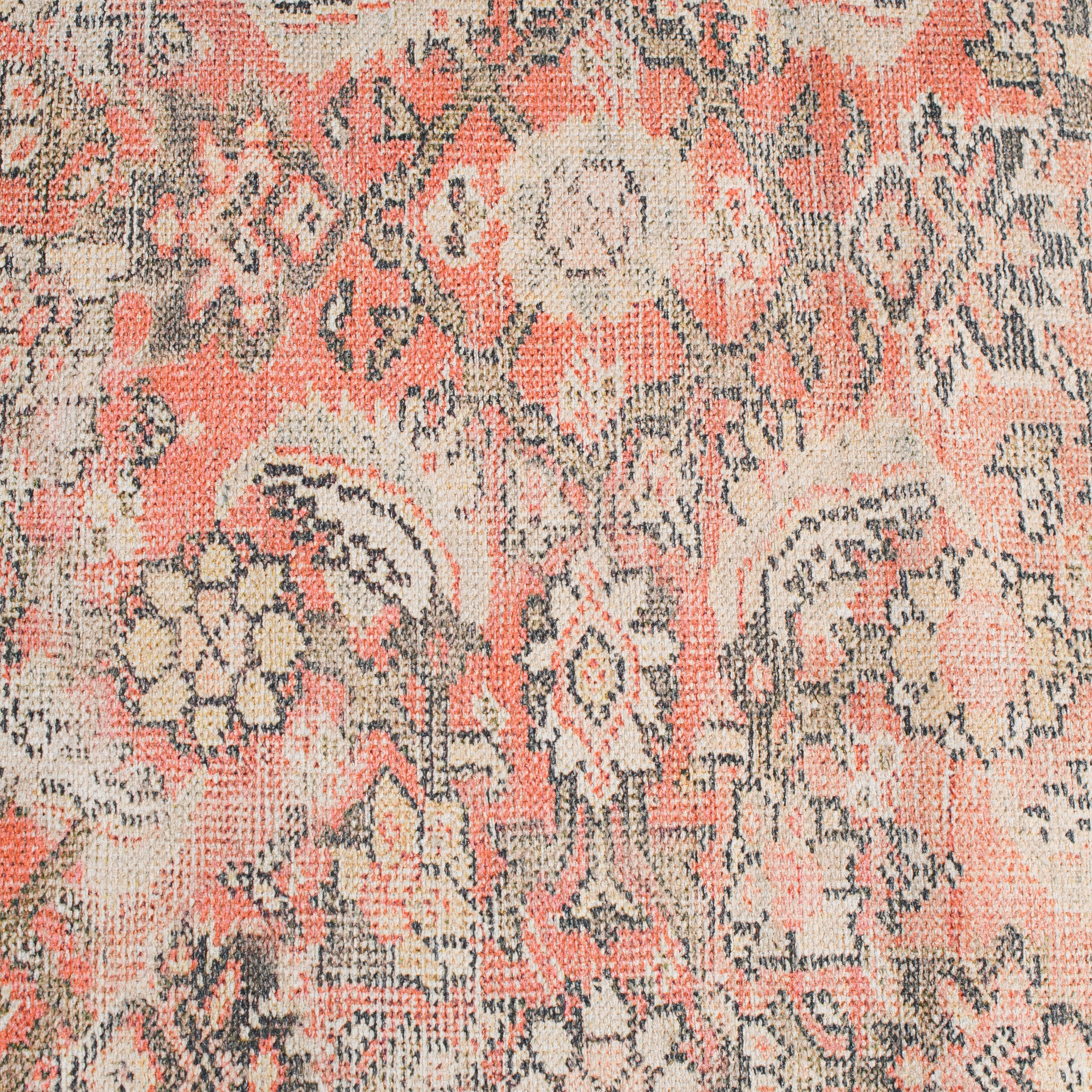A vintage inspired rug with a soft, faded palette of coral and neutral tones. Its detailed pattern adds texture and warmth, making it a great layer for event lounges or styled spaces.