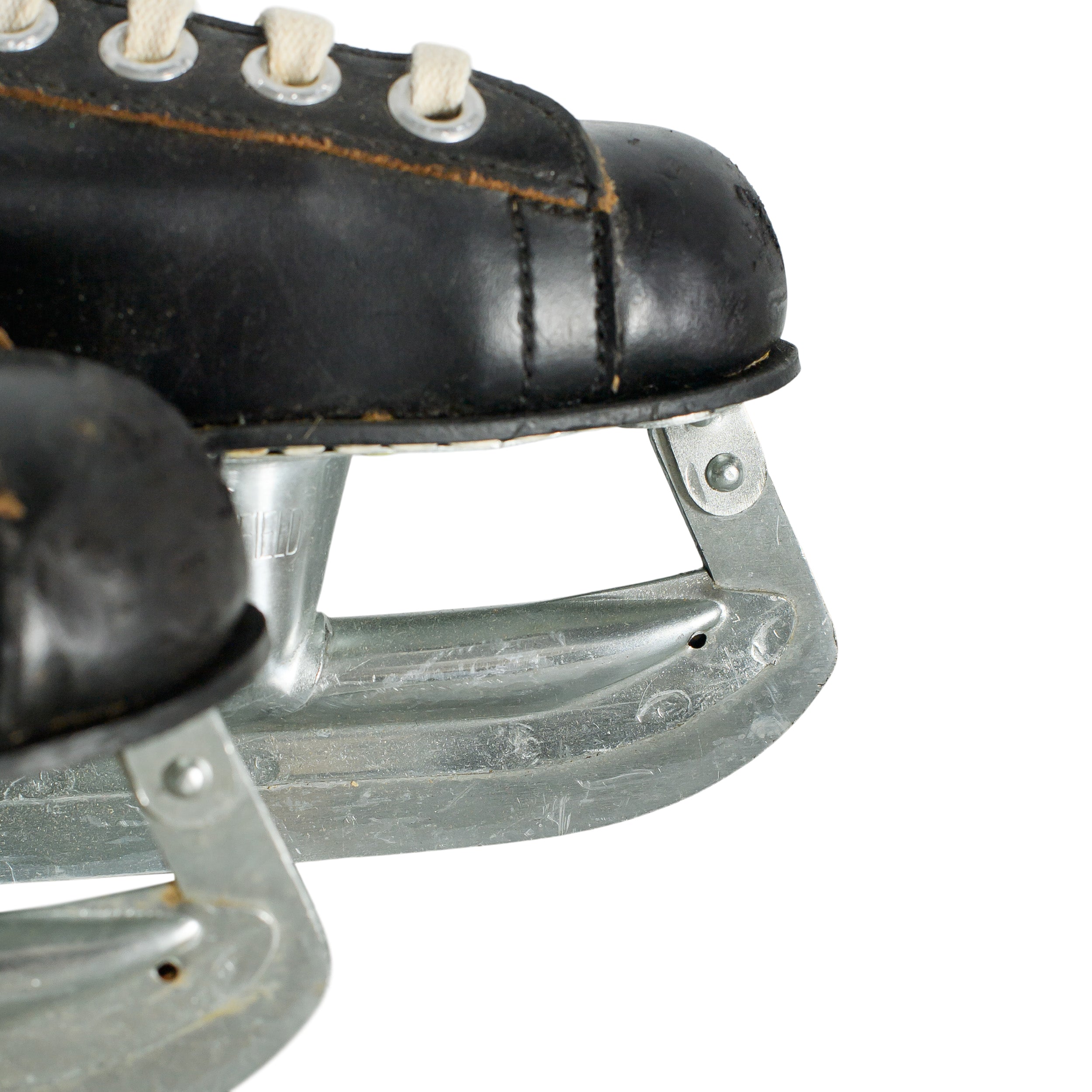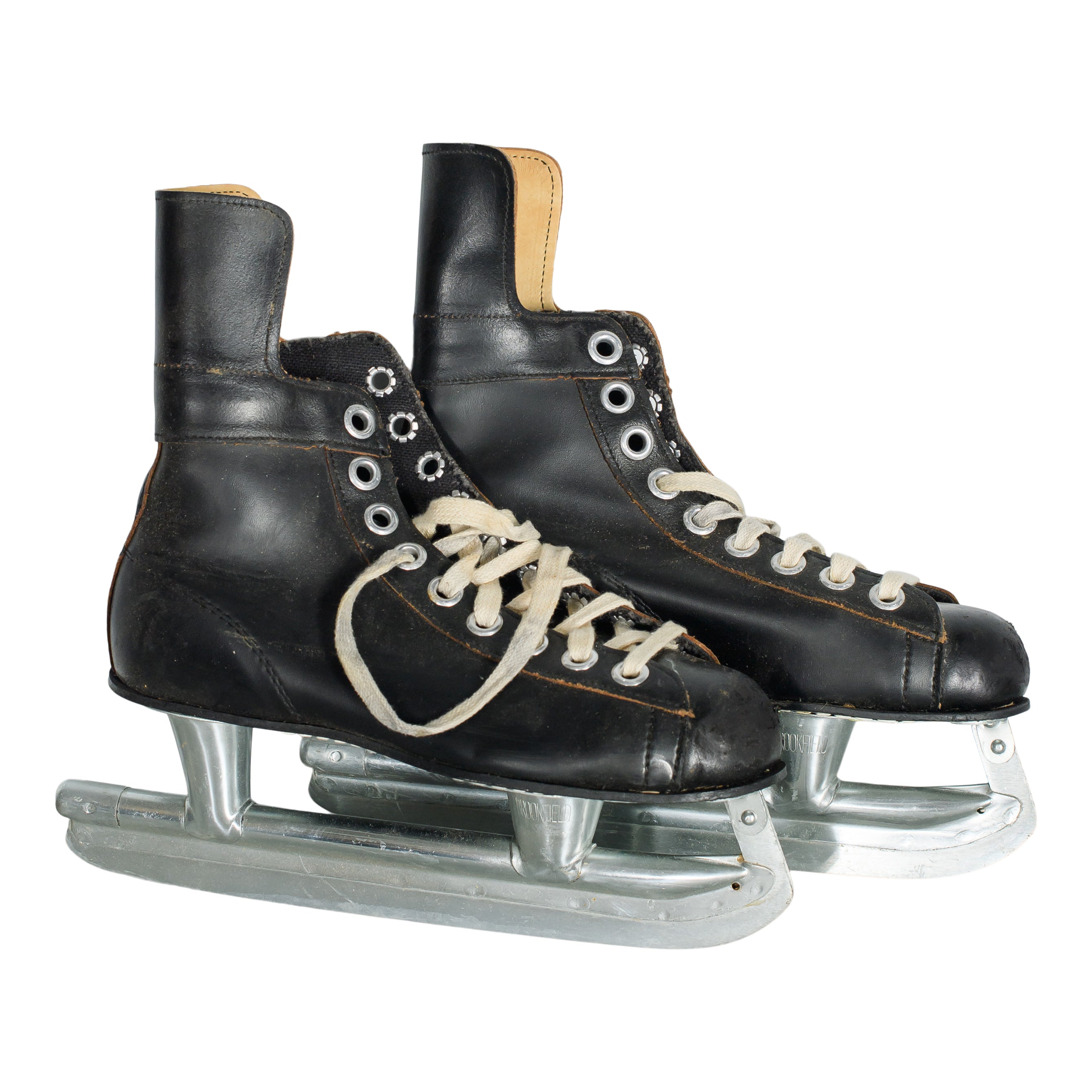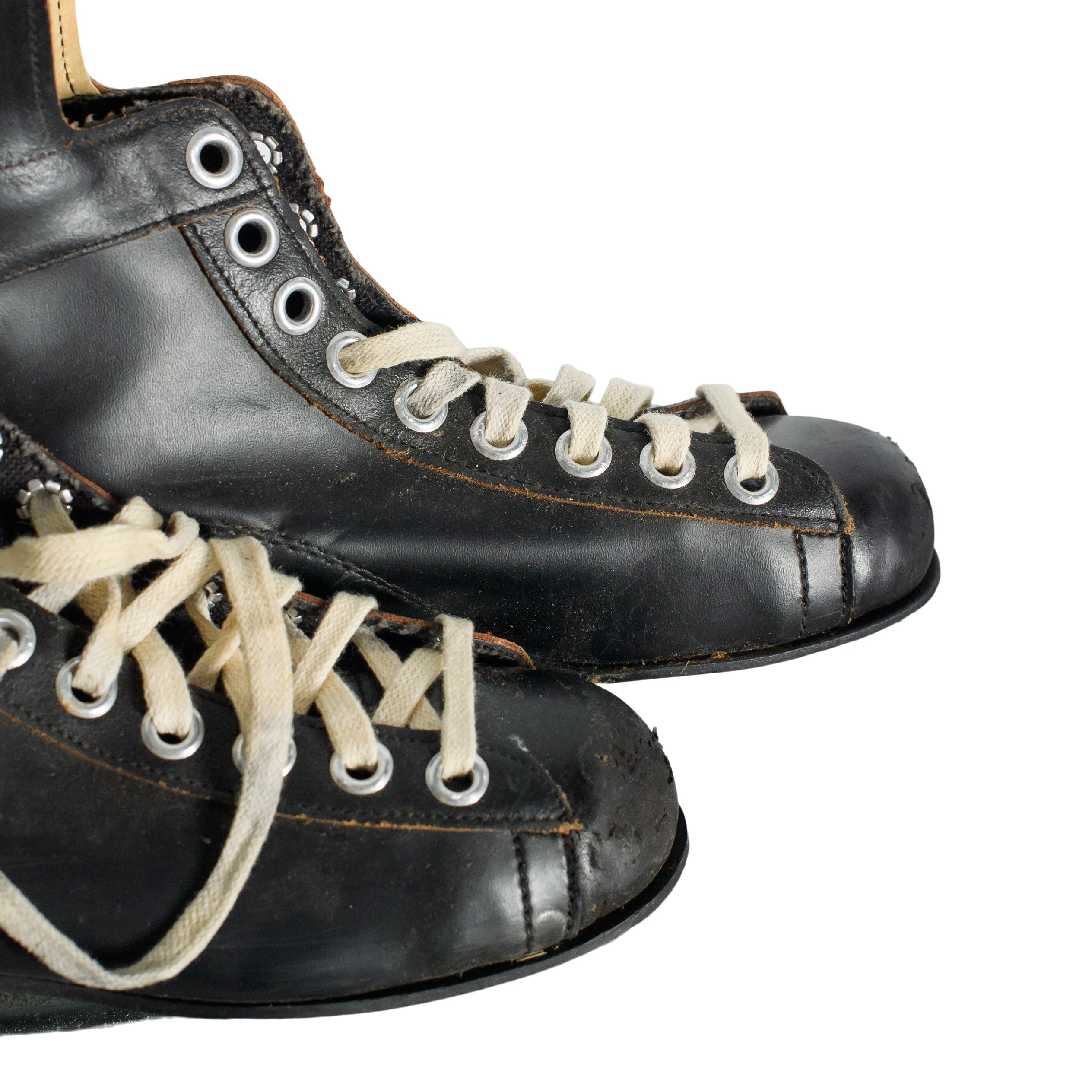 These Hassler Black Ice Skates bring a nostalgic, winter-ready touch to any display. Made from worn black leather with aged laces and classic metal blades, they carry the scuffs and character of years gone by. Not intended for functional use.
