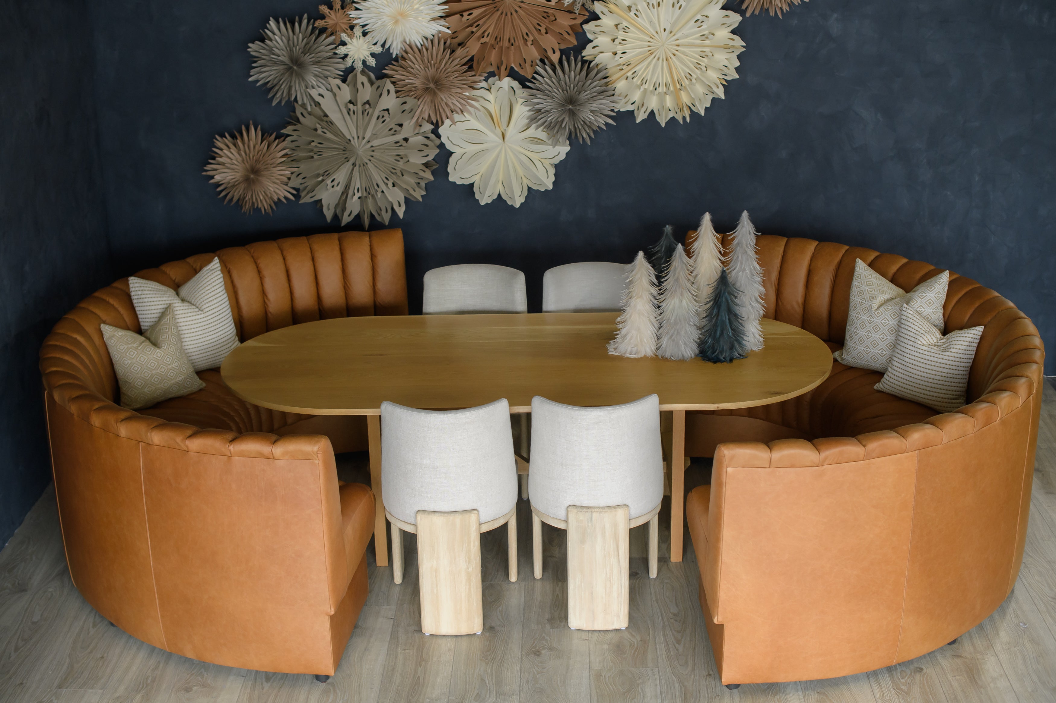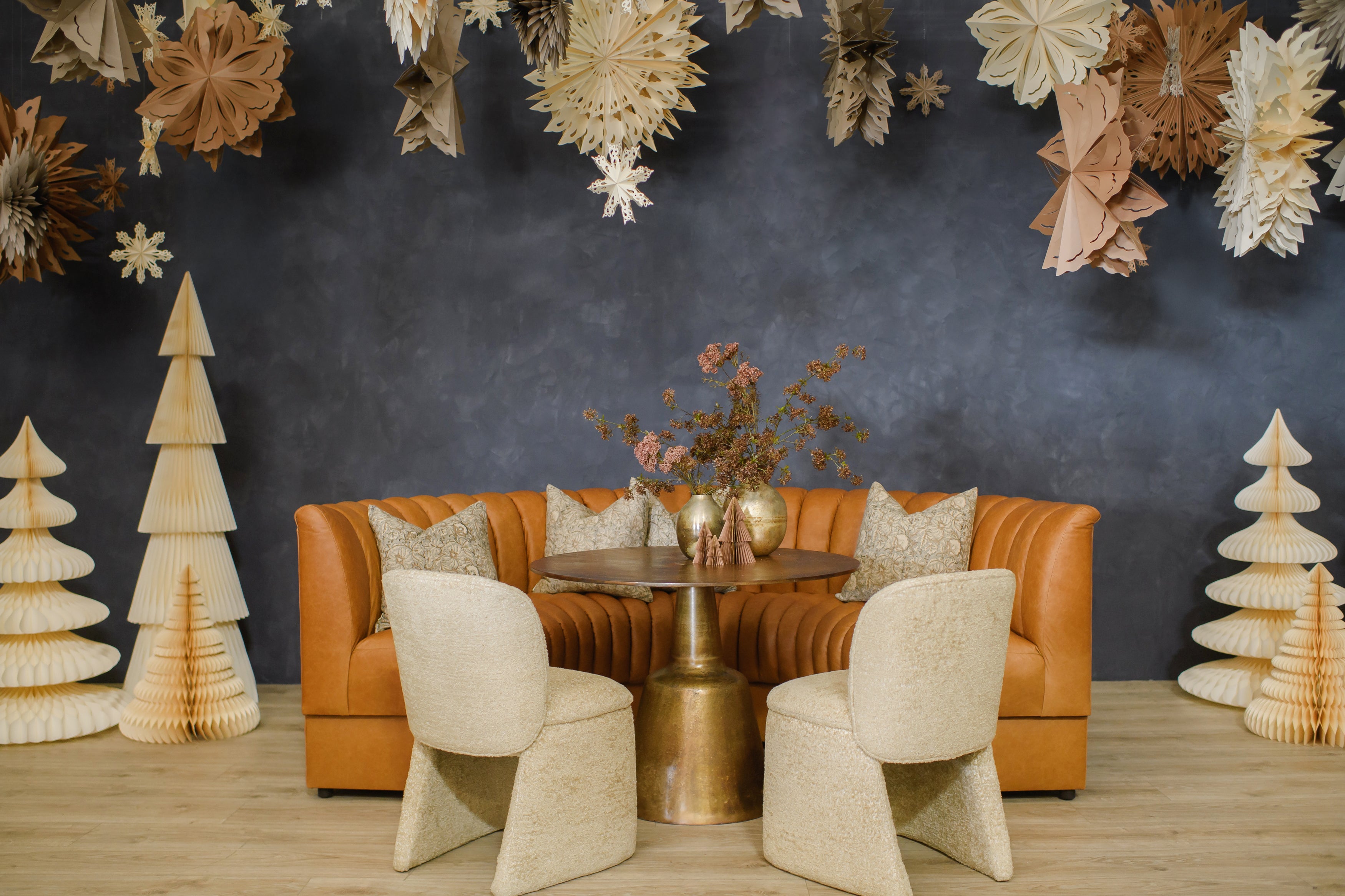 The Louise Leather Banquette brings a bold, sculptural presence with its channel-tufted design and warm caramel leather. Its curved form is ideal for creating intimate seating arrangements, lounge areas, or statement corners. Both stylish and versatile, it’s a standout piece for events looking to mix modern lines with timeless texture. Seats 4-5