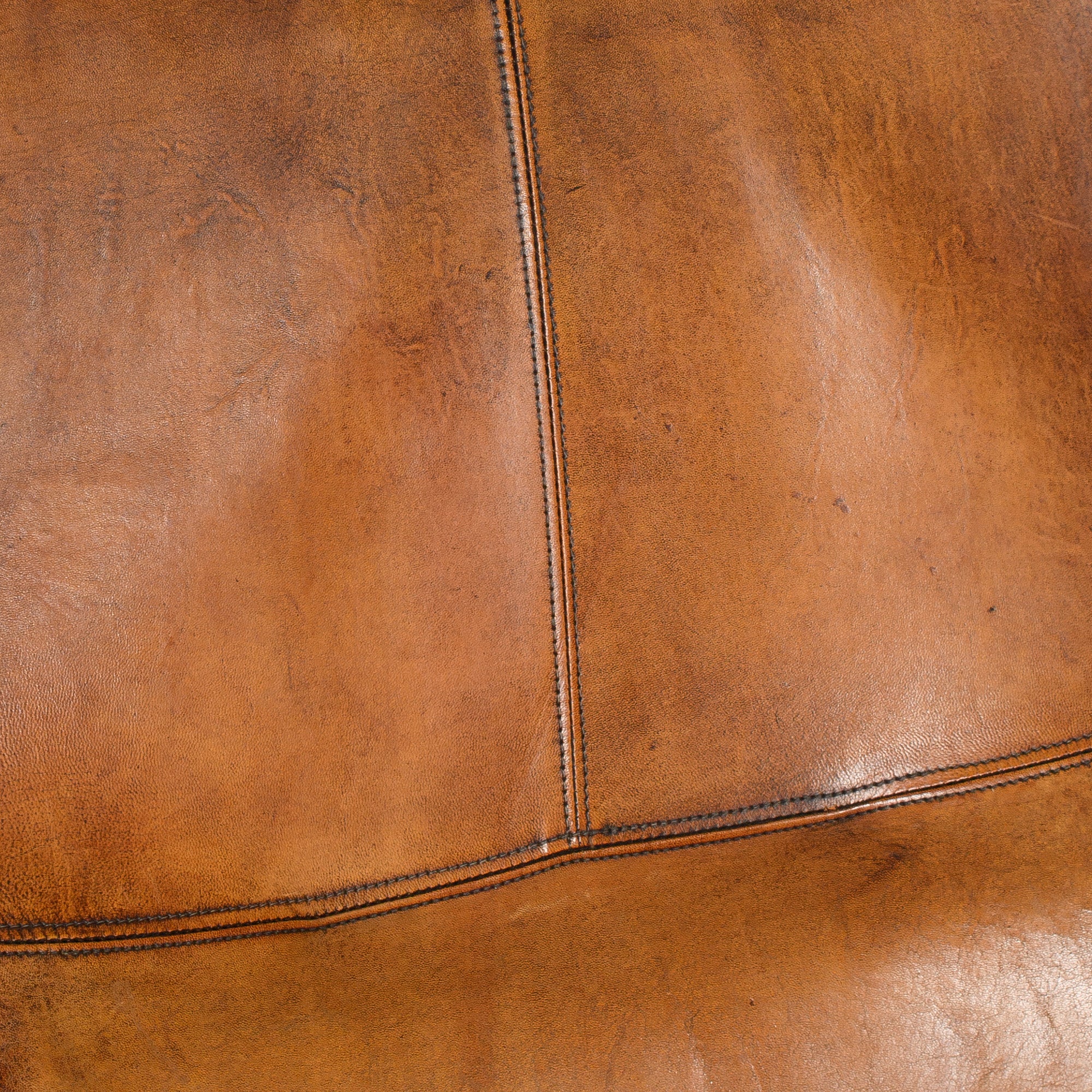 The Pierson Chair is a traditional vintage leather wingback chair with T-stitching, rich patina, rolled arms, and sturdy wooden legs. Comfortable, grounded, and timeless. Seat height: 17.5" Dimensions: 36 X 29 X 41.5