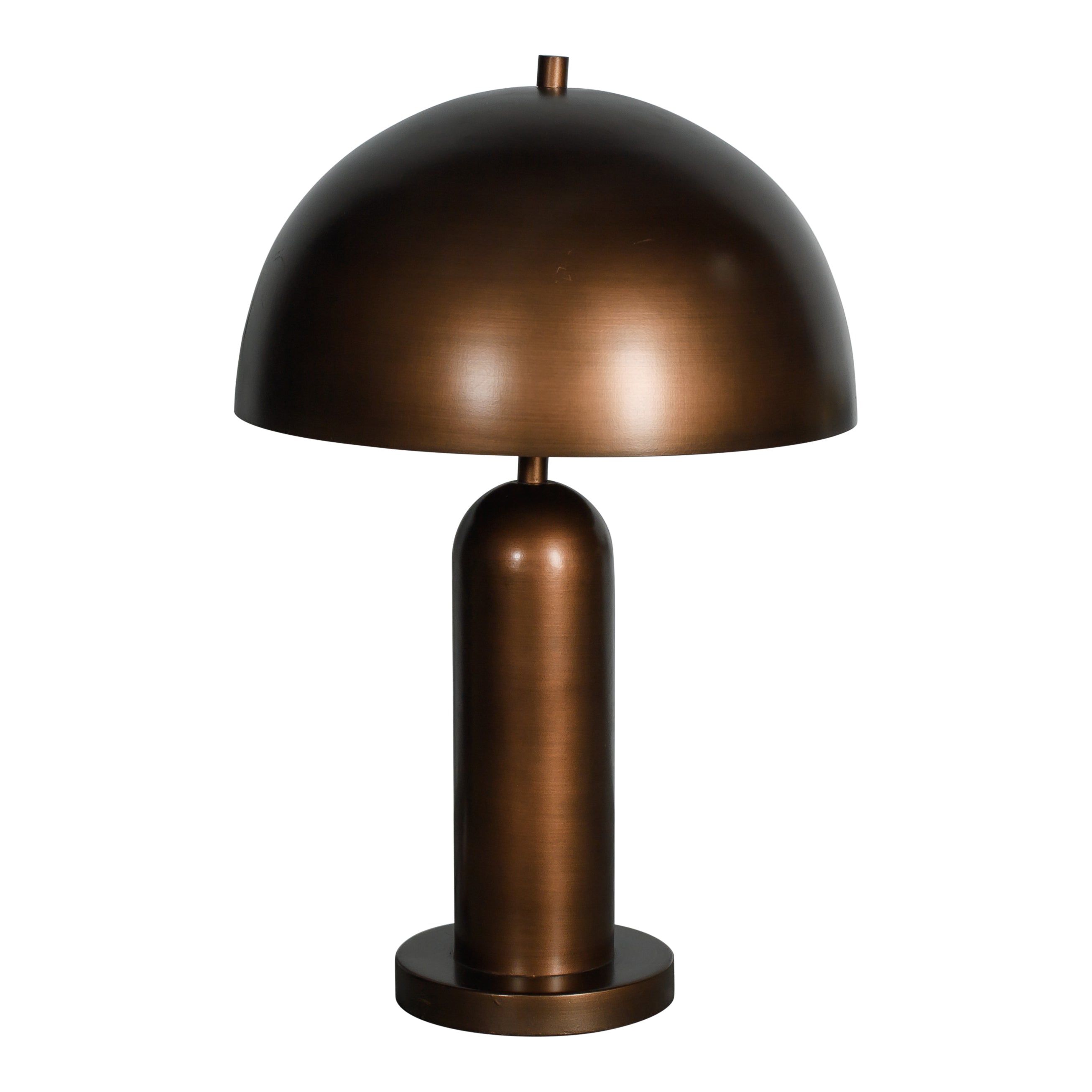 The Stevie Lamp features a sleek dome shade and cylindrical base in a rich bronze finish. Its smooth, curved form brings a warm, modern touch to any setting. Designed for functional, everyday use, it includes a power cord and offers reliable ambient lighting on a side table or console table.
