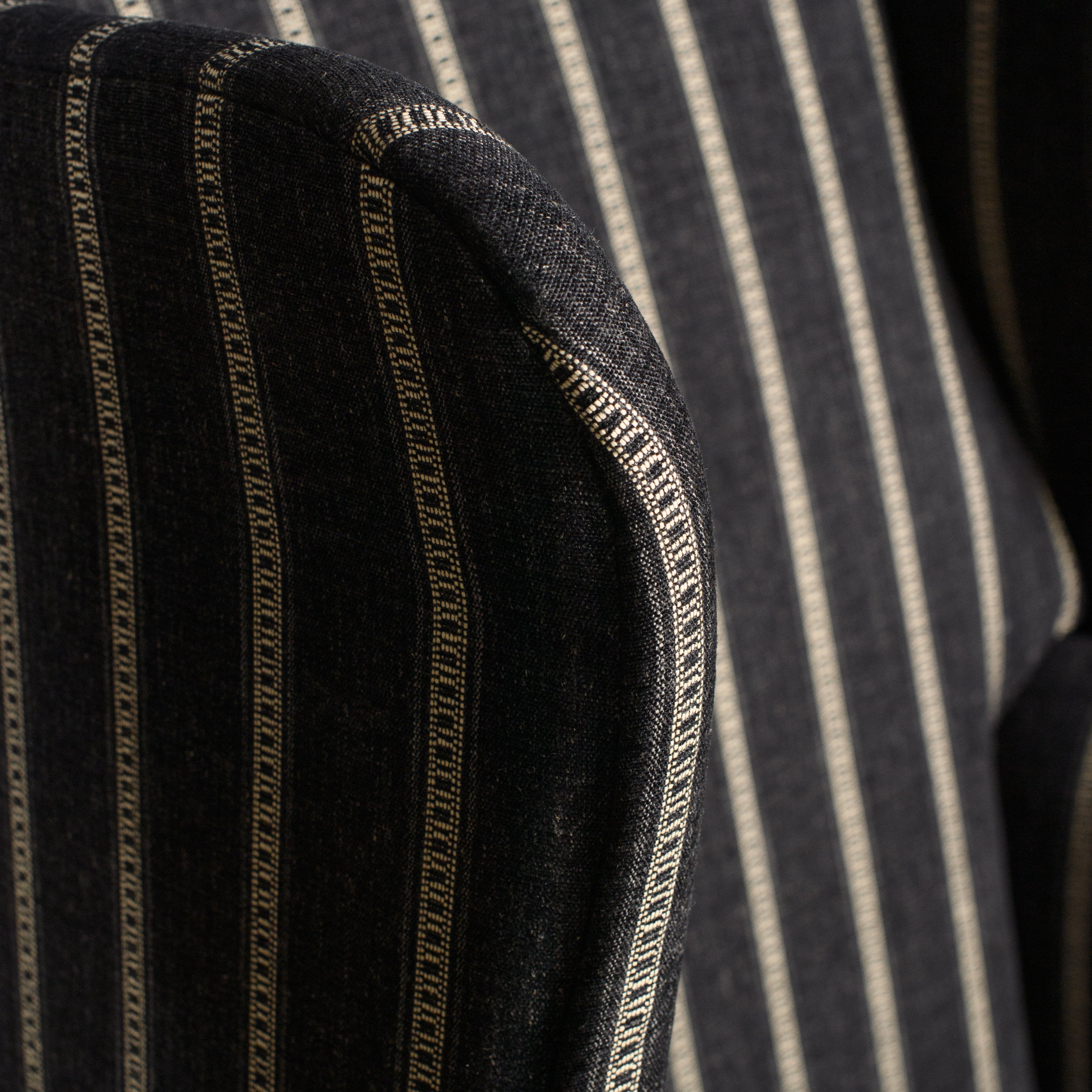 The Tiffy Black Wingback Chair brings a tailored touch to lounge or seating areas with its classic silhouette and bold striped upholstery. The high back and winged sides give it presence, while the natural wood base adds a grounded, relaxed contrast. Perfect for creating intimate conversation corners or pairing with textured sofas and side tables for a refined mix of pattern and form.