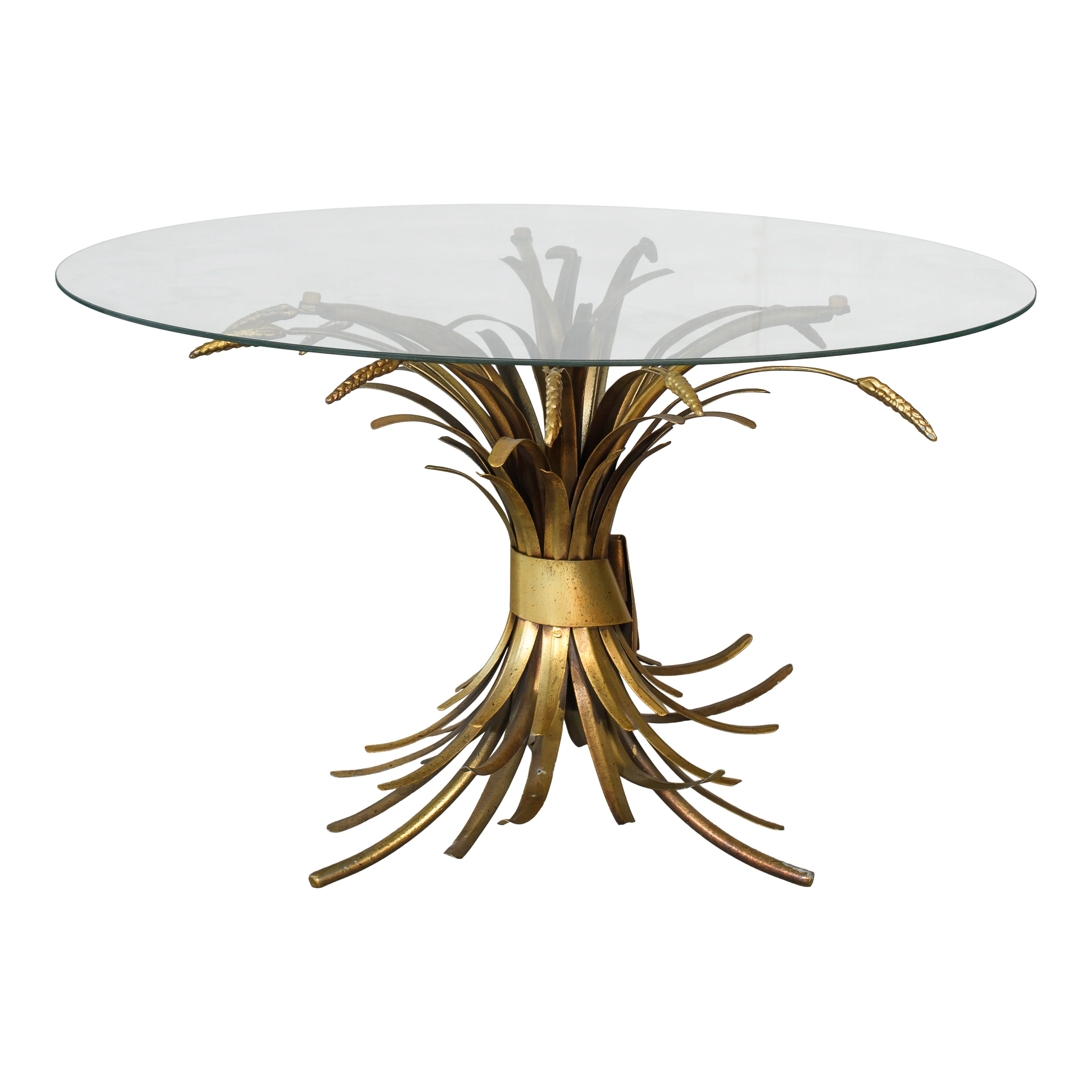 Mid-century brass coffee table with round glass top. Matching set to the Ferrara Side Tables. Size and design may vary slightly.