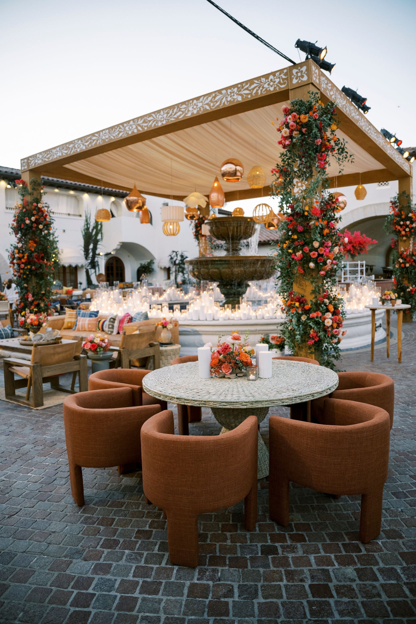 Modern rust linen chair. Can be used for dining or lounge seating.