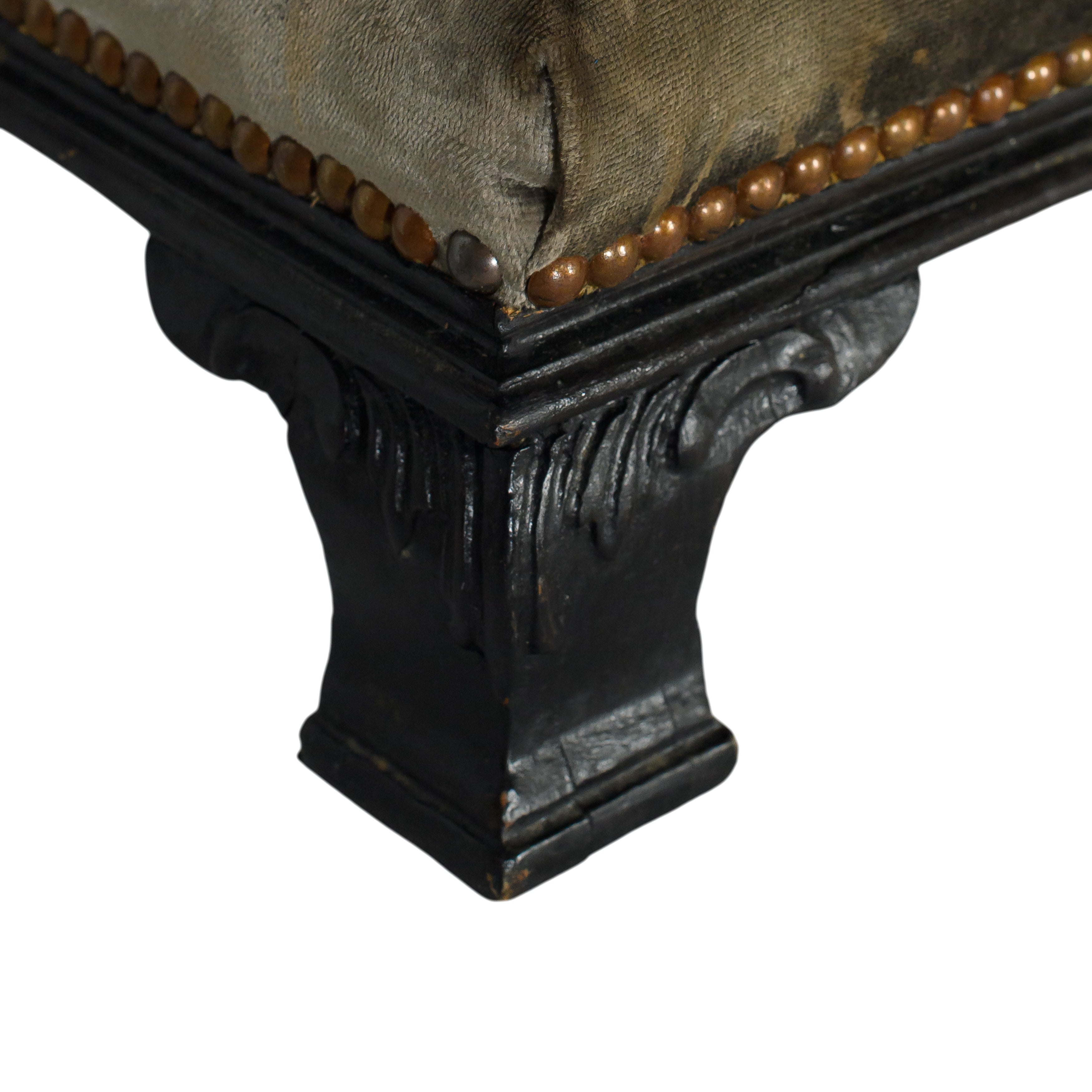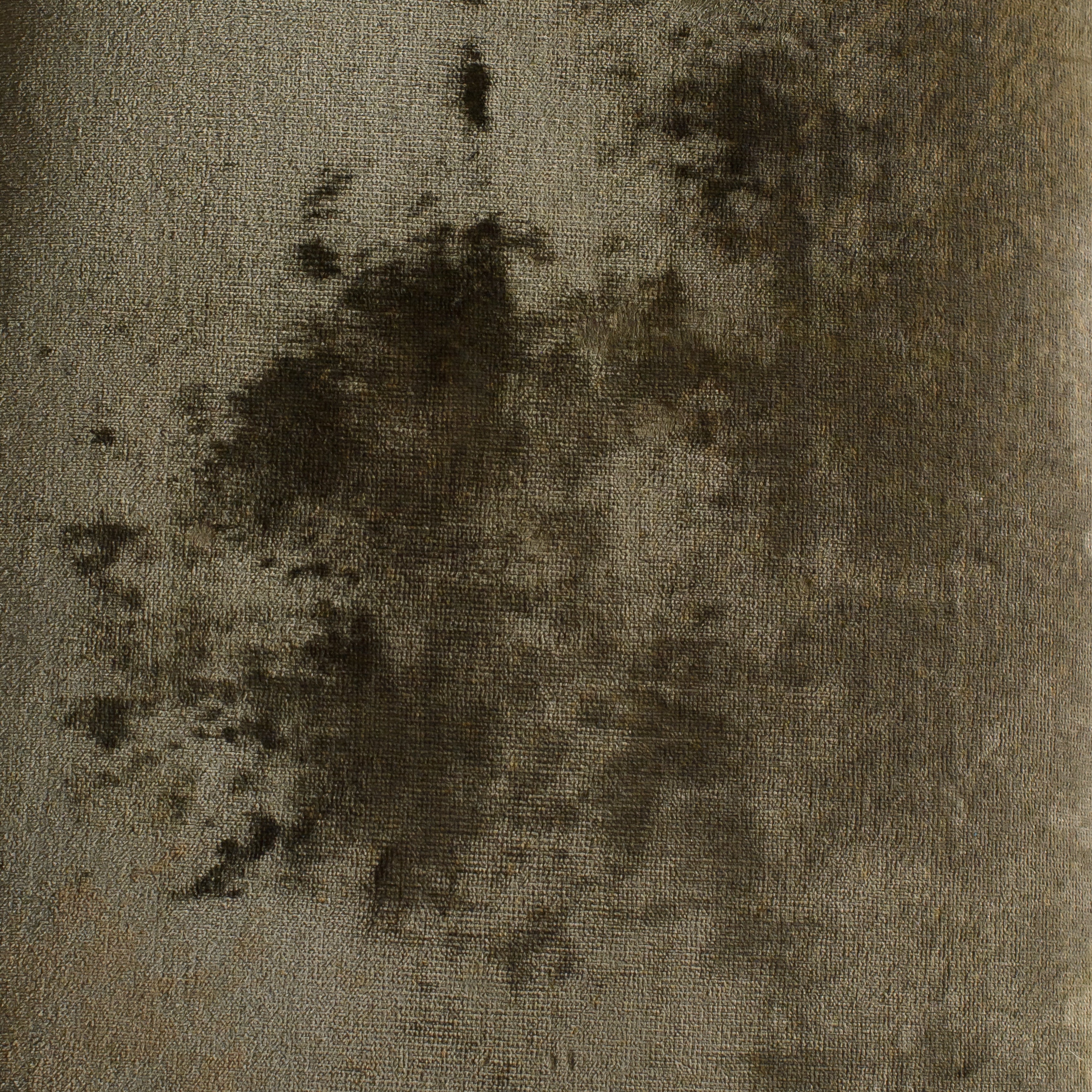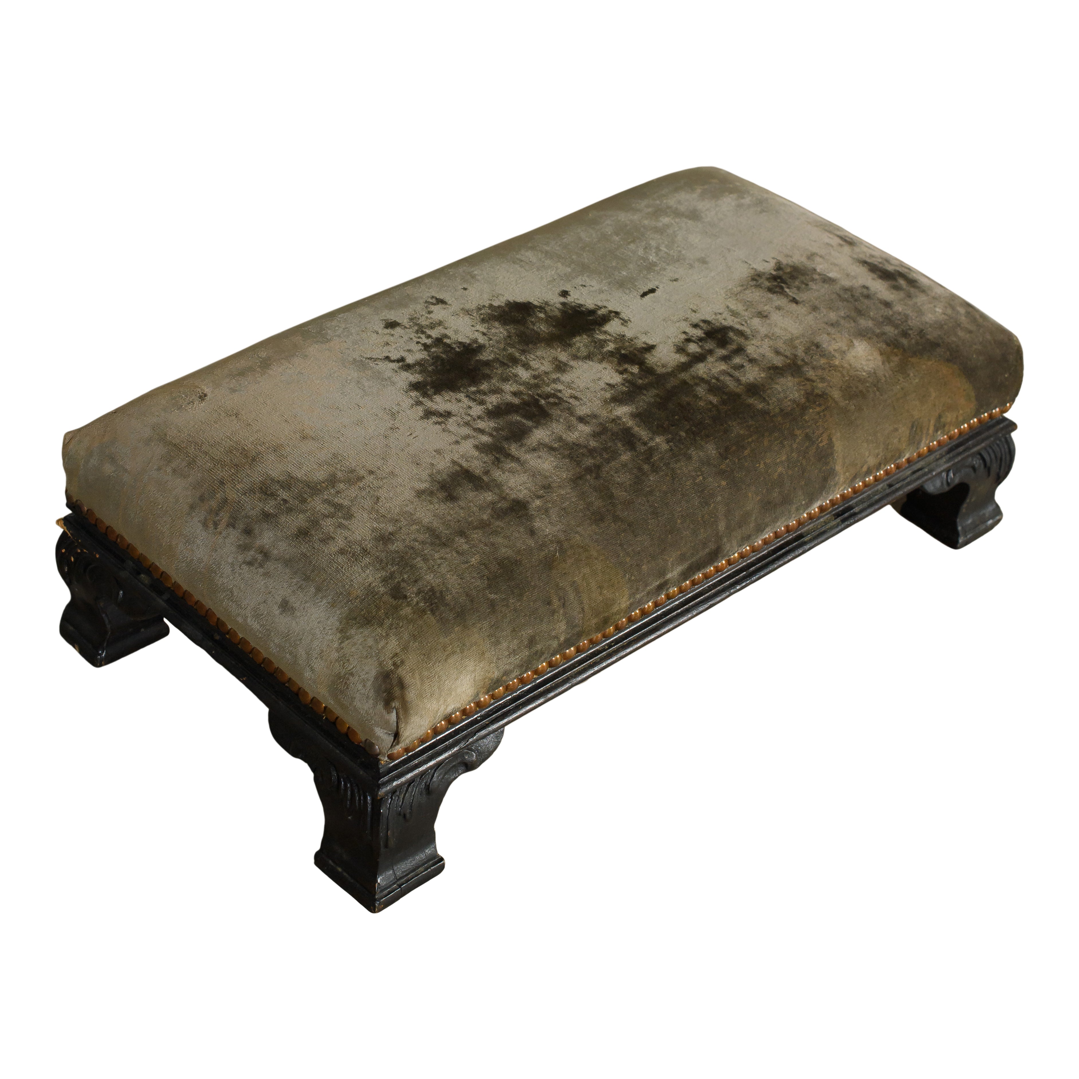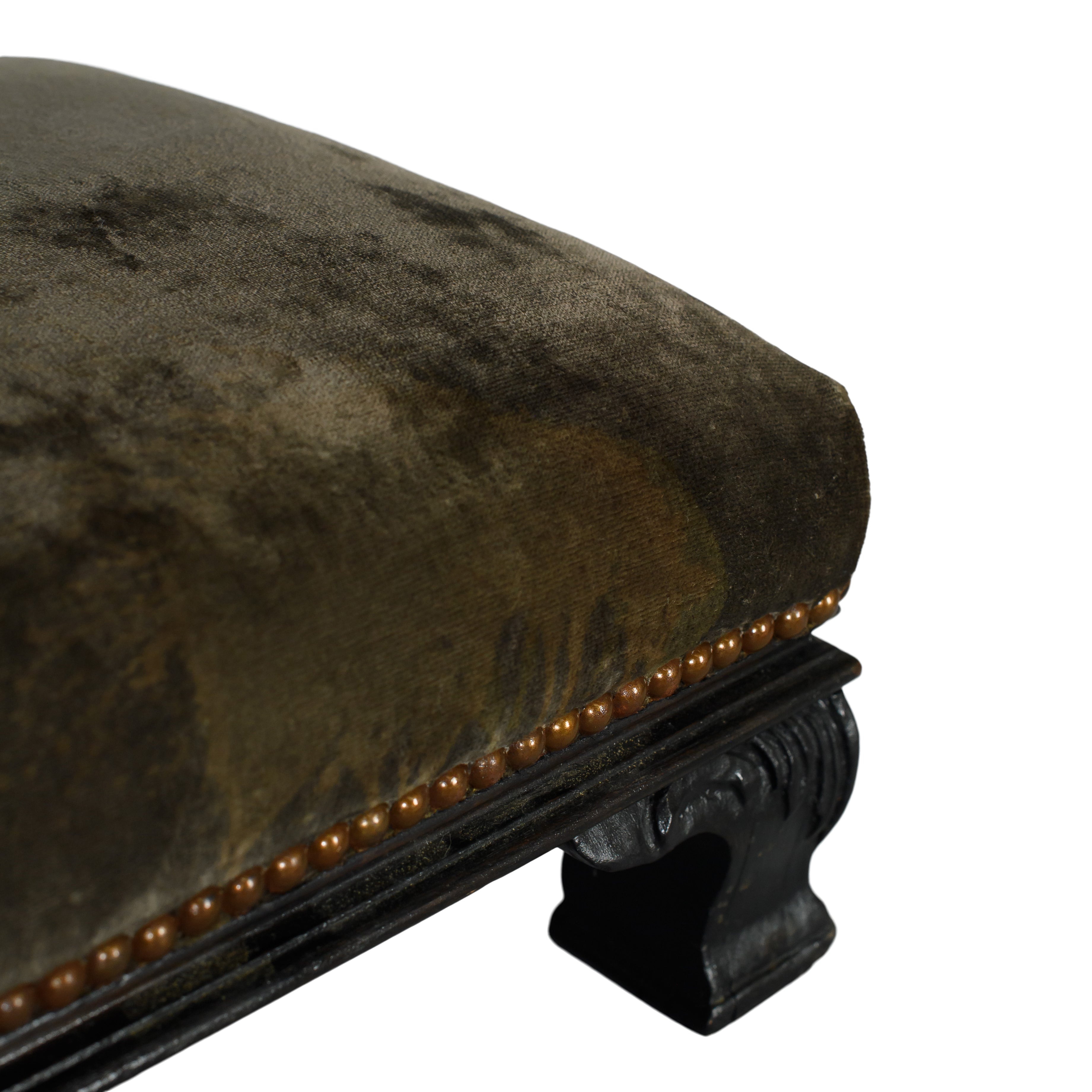 Petite in scale but rich in detail, the Samina Ottoman features a low 7-inch profile perfect for layering under coffee tables or styling beside a chair. The plush, moss-toned velvet cushion rests atop a carved black wood base accented with brass nailhead trim.