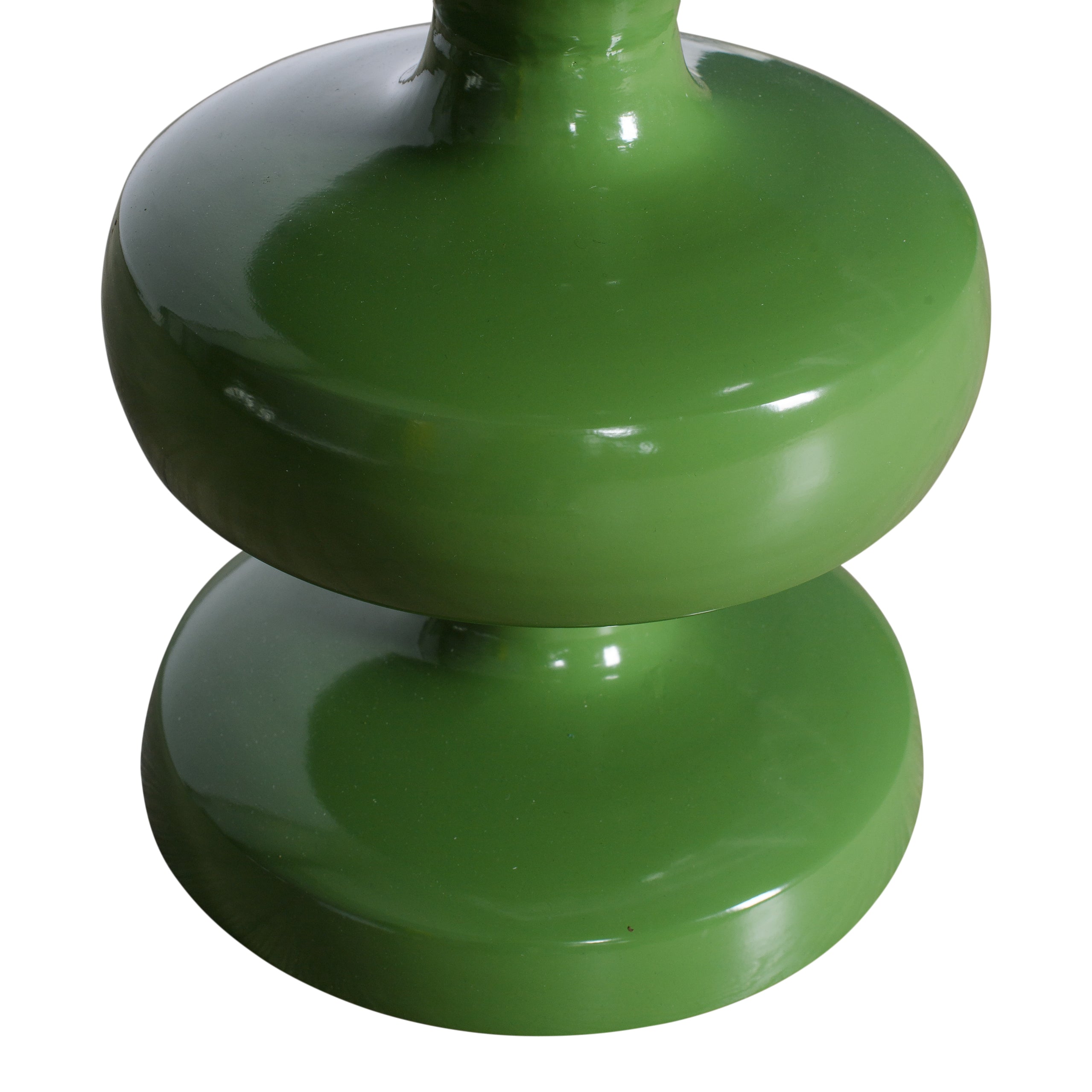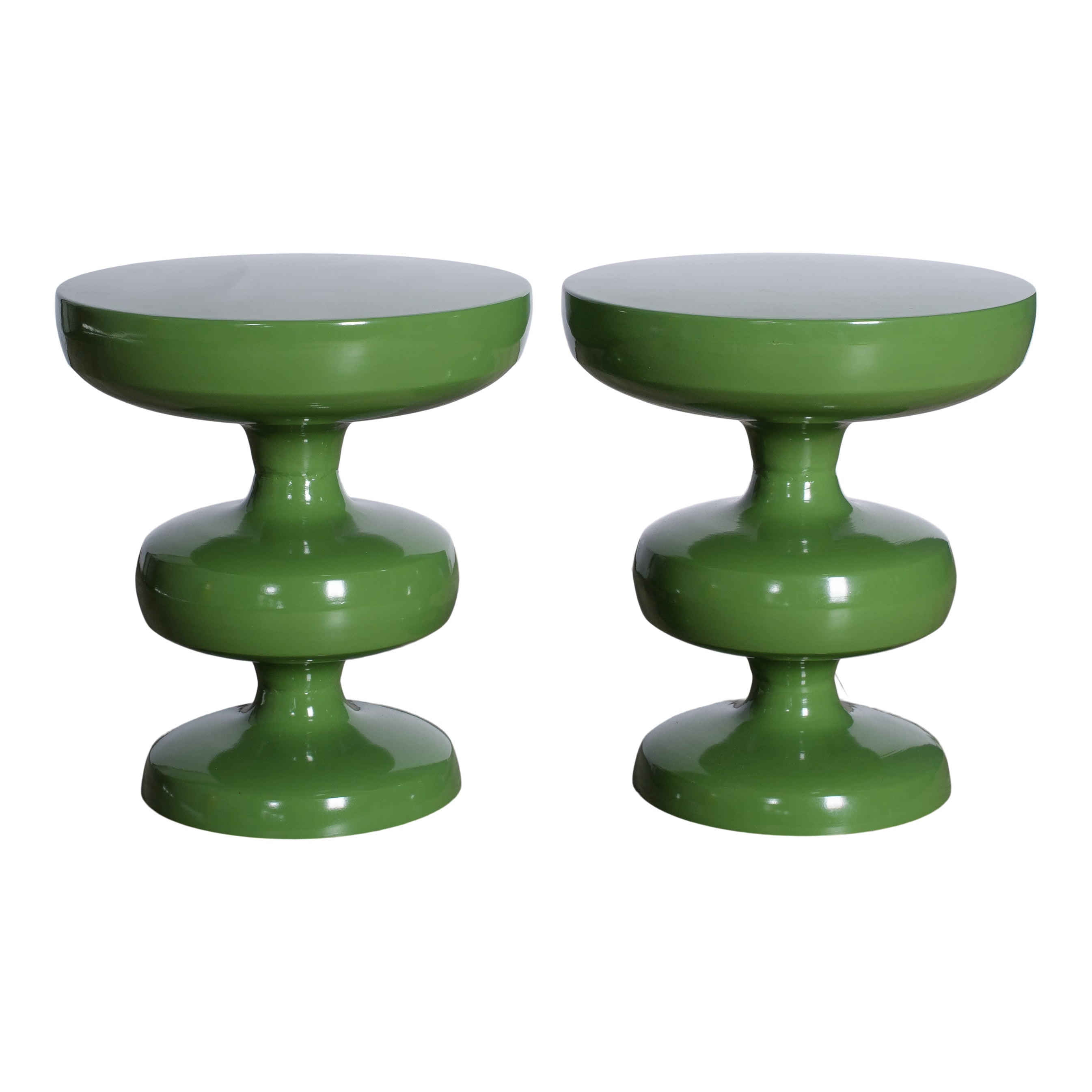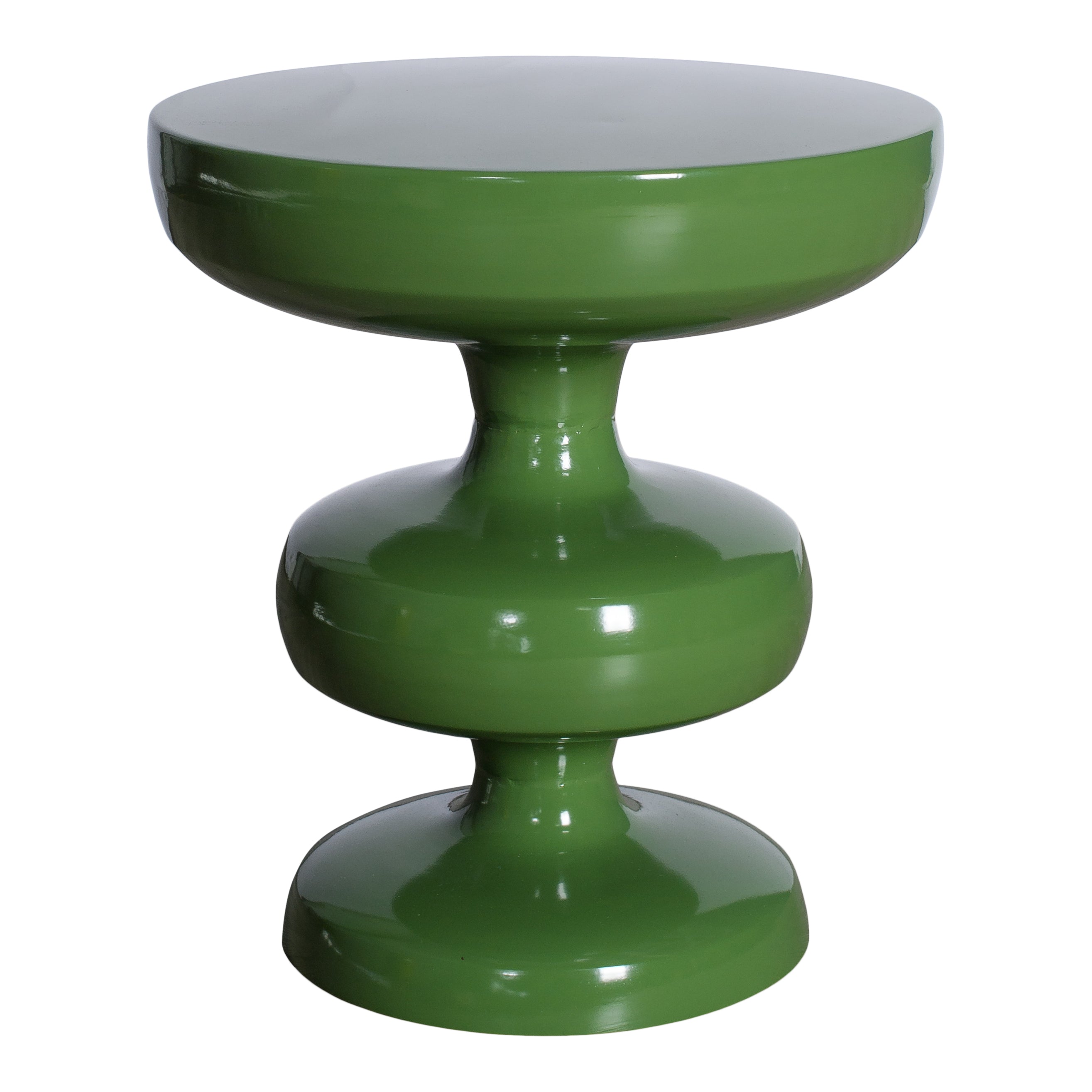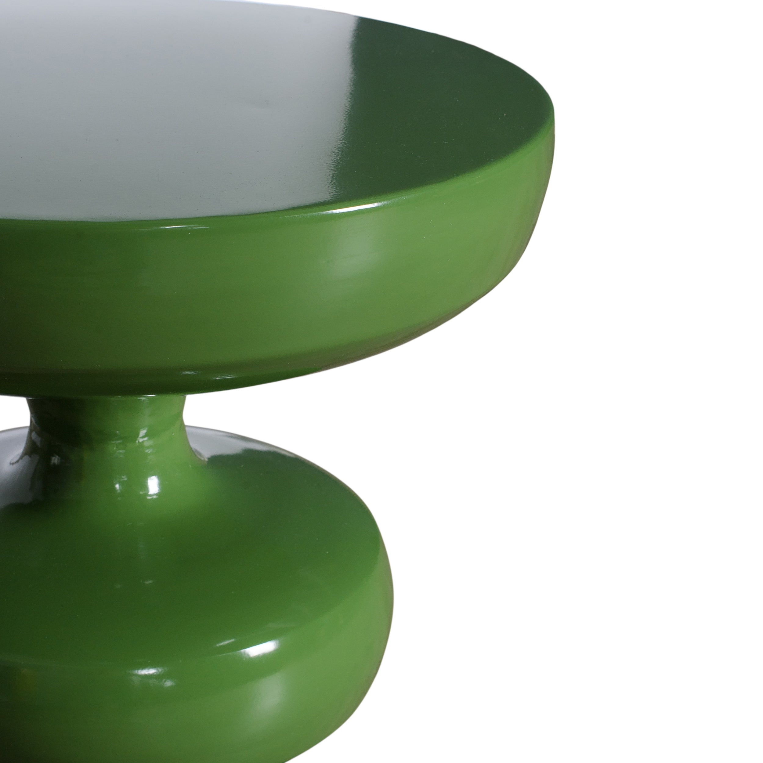 The Evans Side Table features a sculptural, stacked silhouette with a glossy finish in a vibrant grass green. Its rounded, tiered form adds dimension and a fresh pop of color, making it a bold accent piece.
