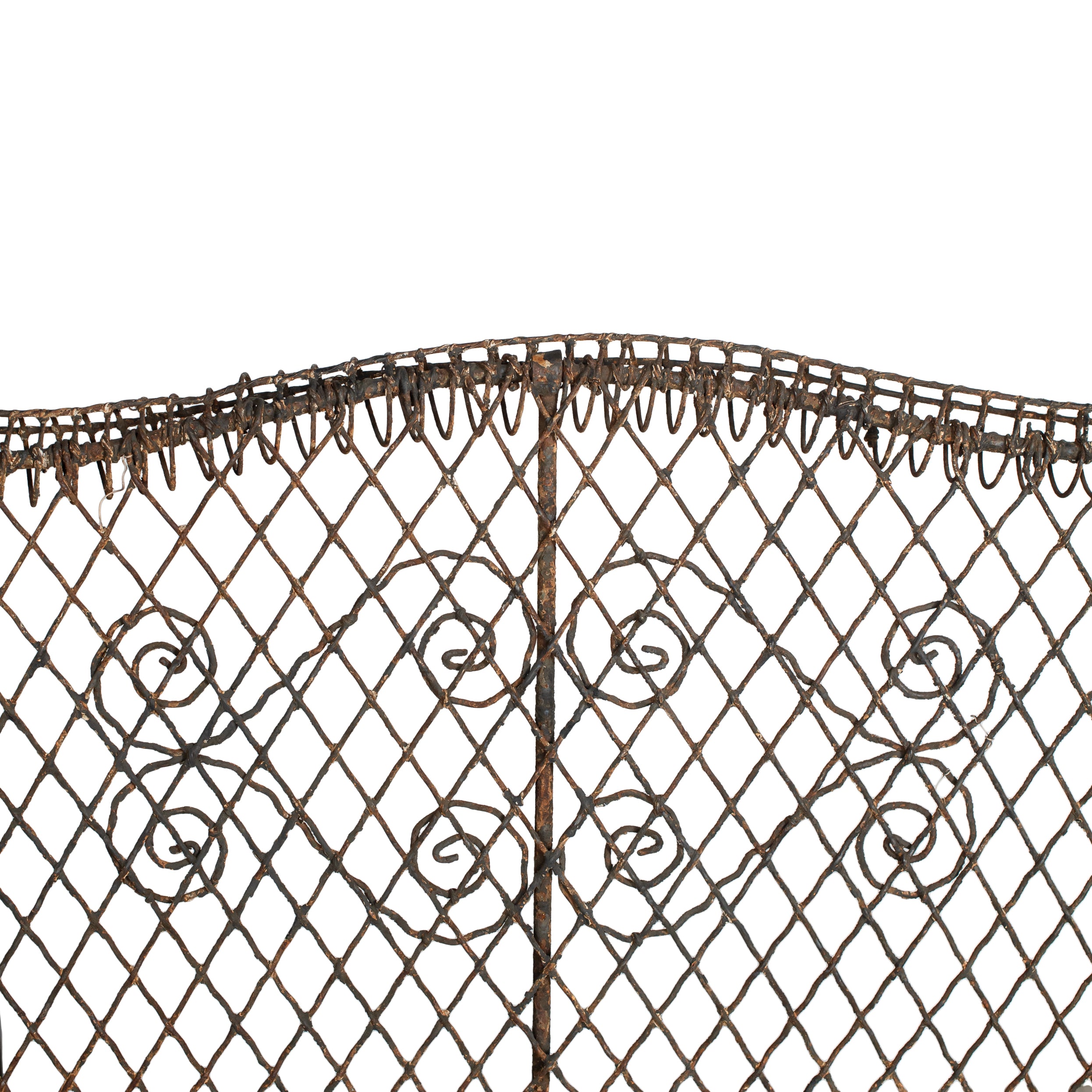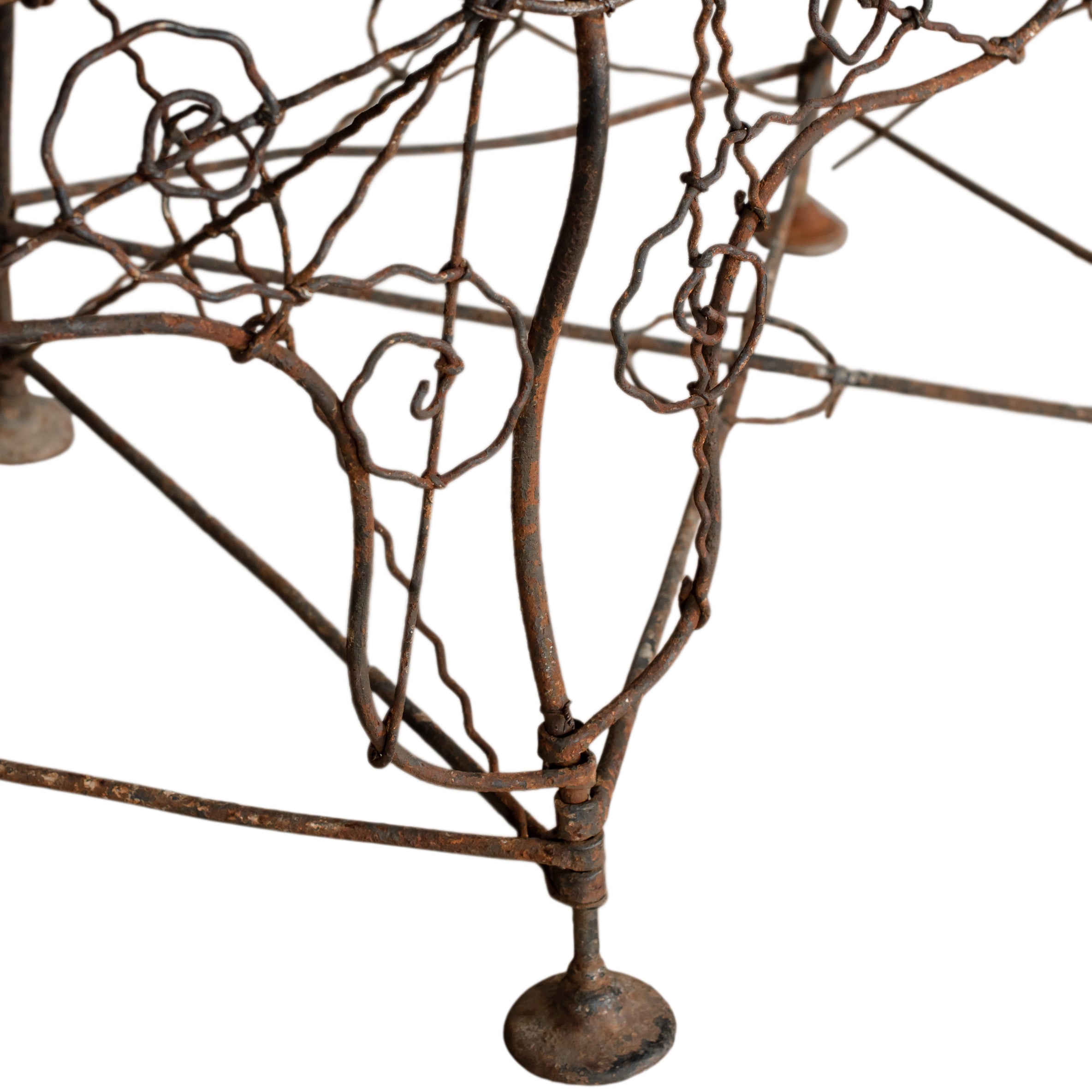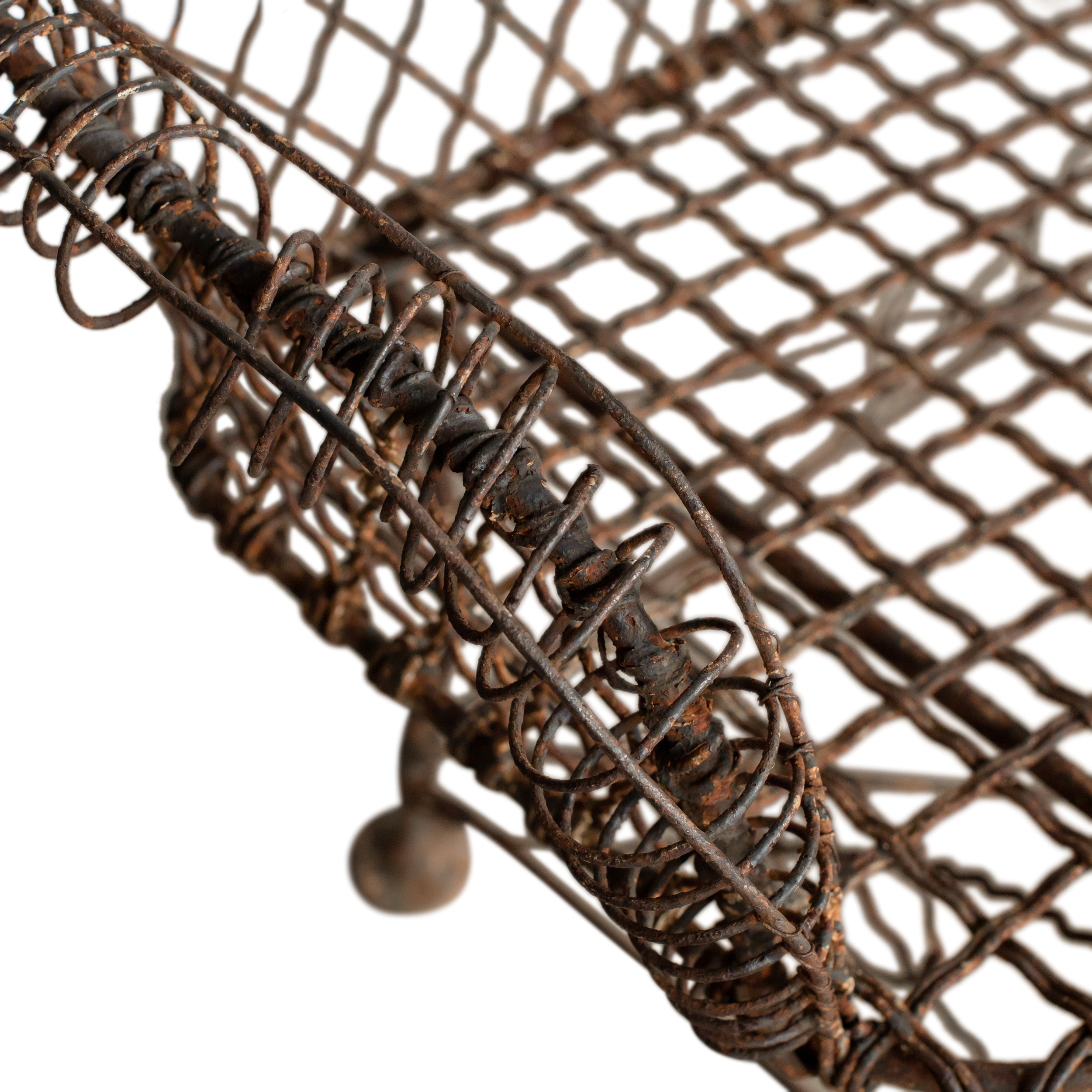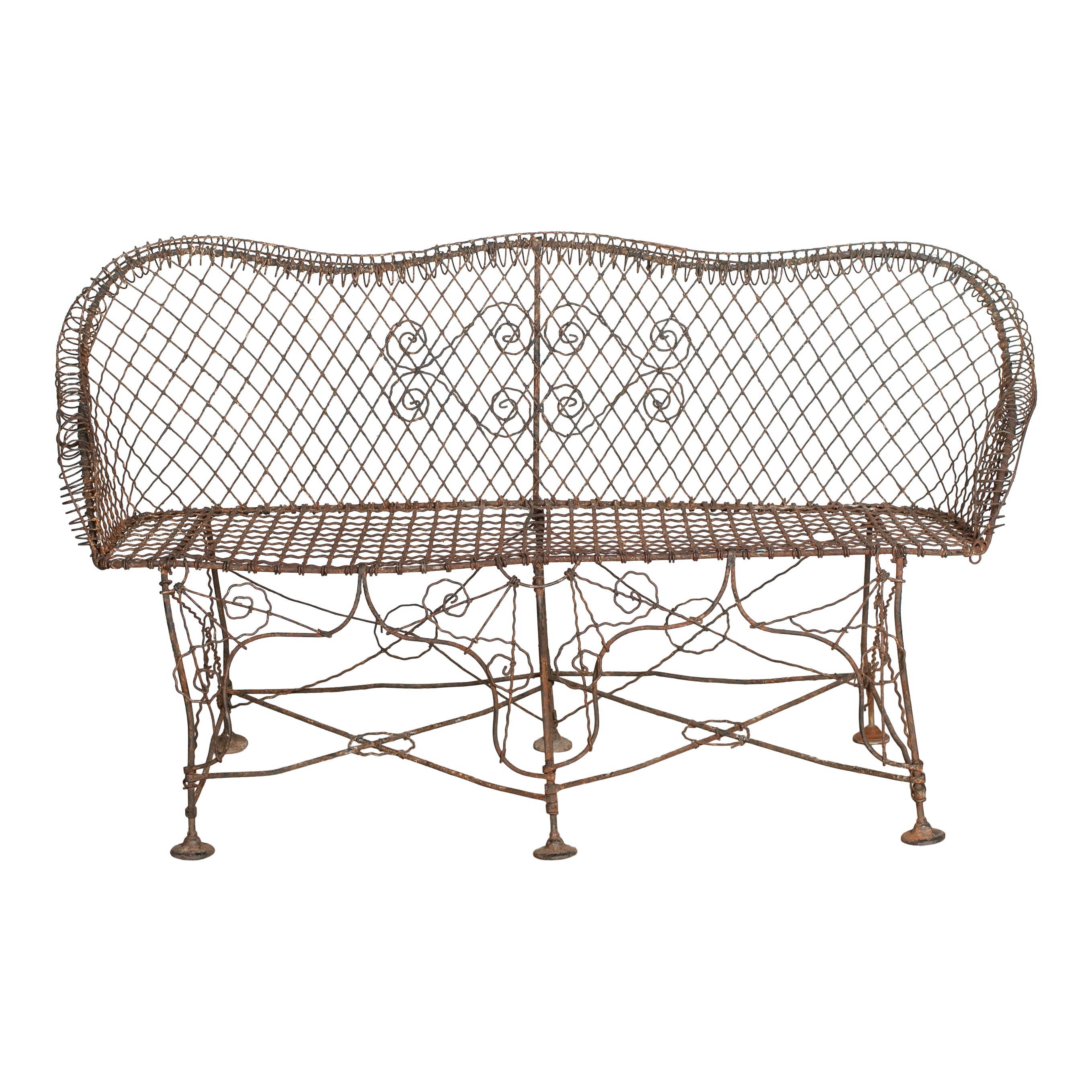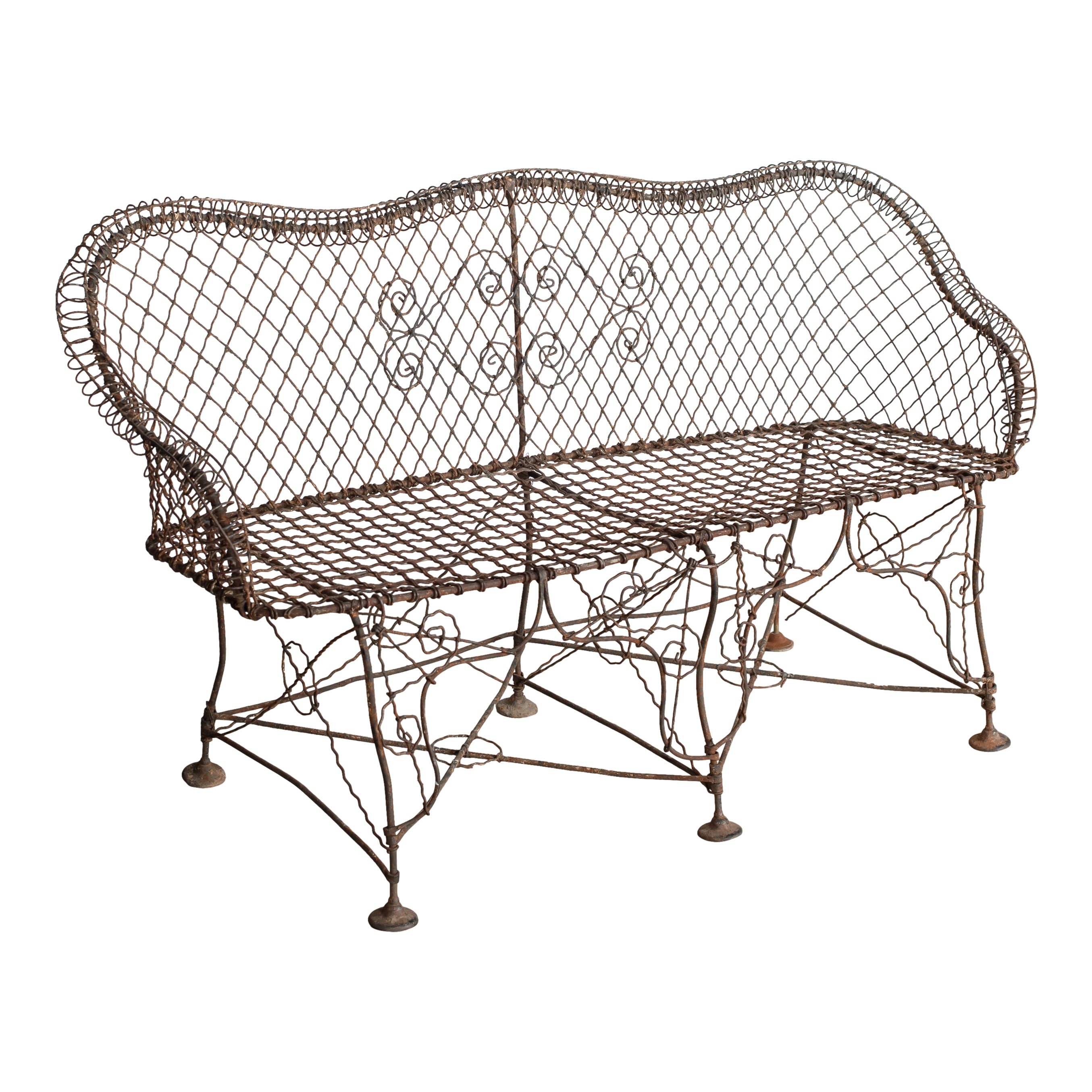 A rare late-19th-century wire settee, hand-made circa 1890 with intricate latticework and graceful scroll detailing throughout. The sculptural iron frame showcases the craftsmanship of the era, finished with a naturally aged patina that reflects over a century of use and character.