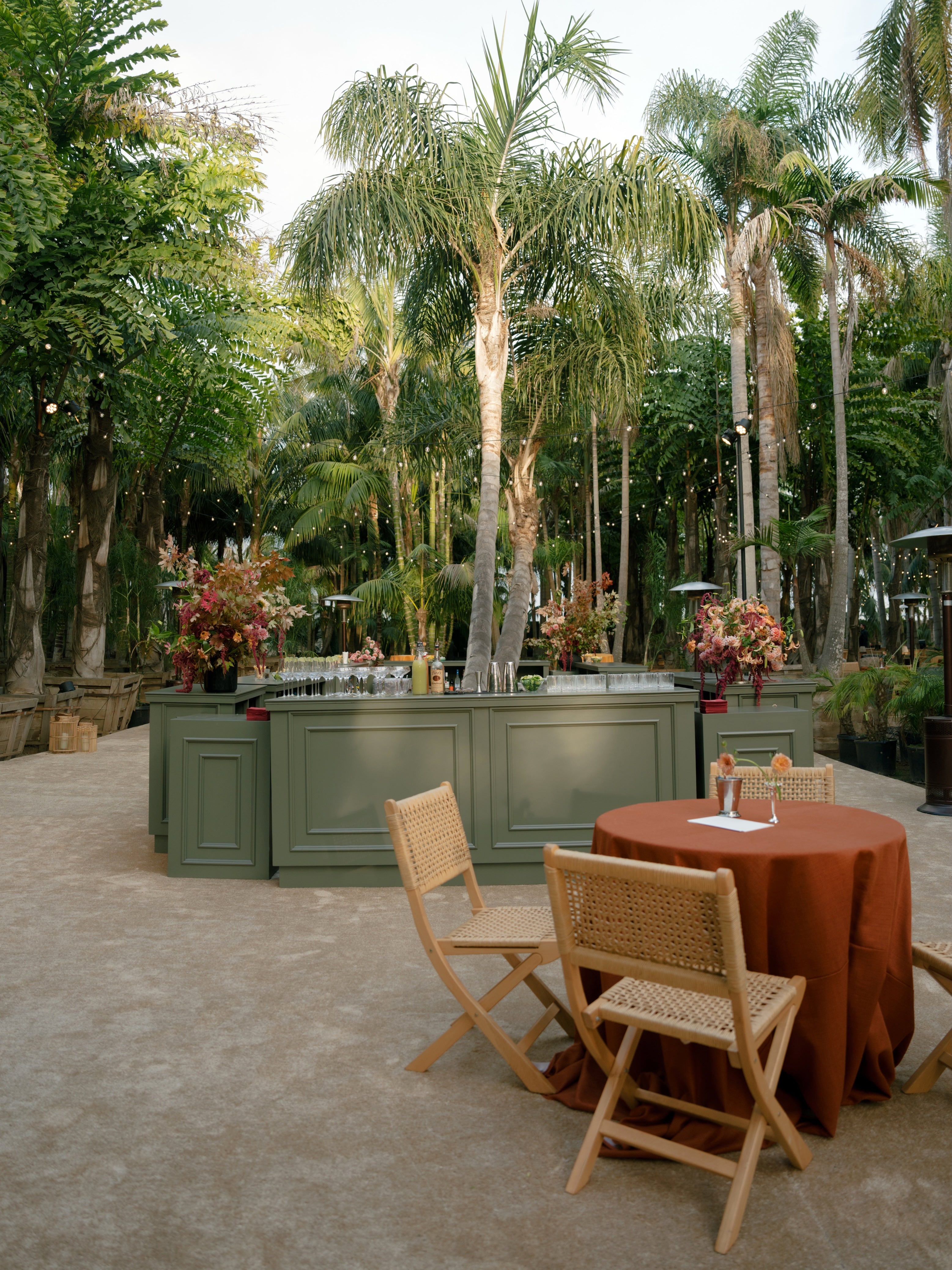 A modular bar in a muted green finish, the Andrew Bar features nine individual pieces that come together to create a strong, structured layout. Paneled detailing adds a tailored feel, while the stepped design offers space for display or service. Ideal for larger layouts or multi-point setups.