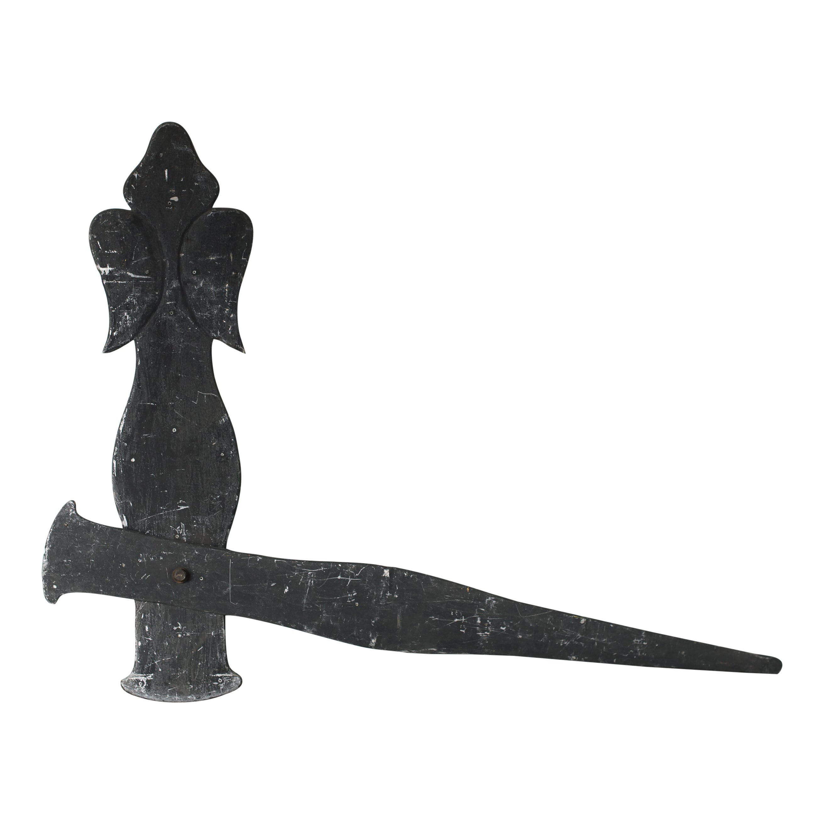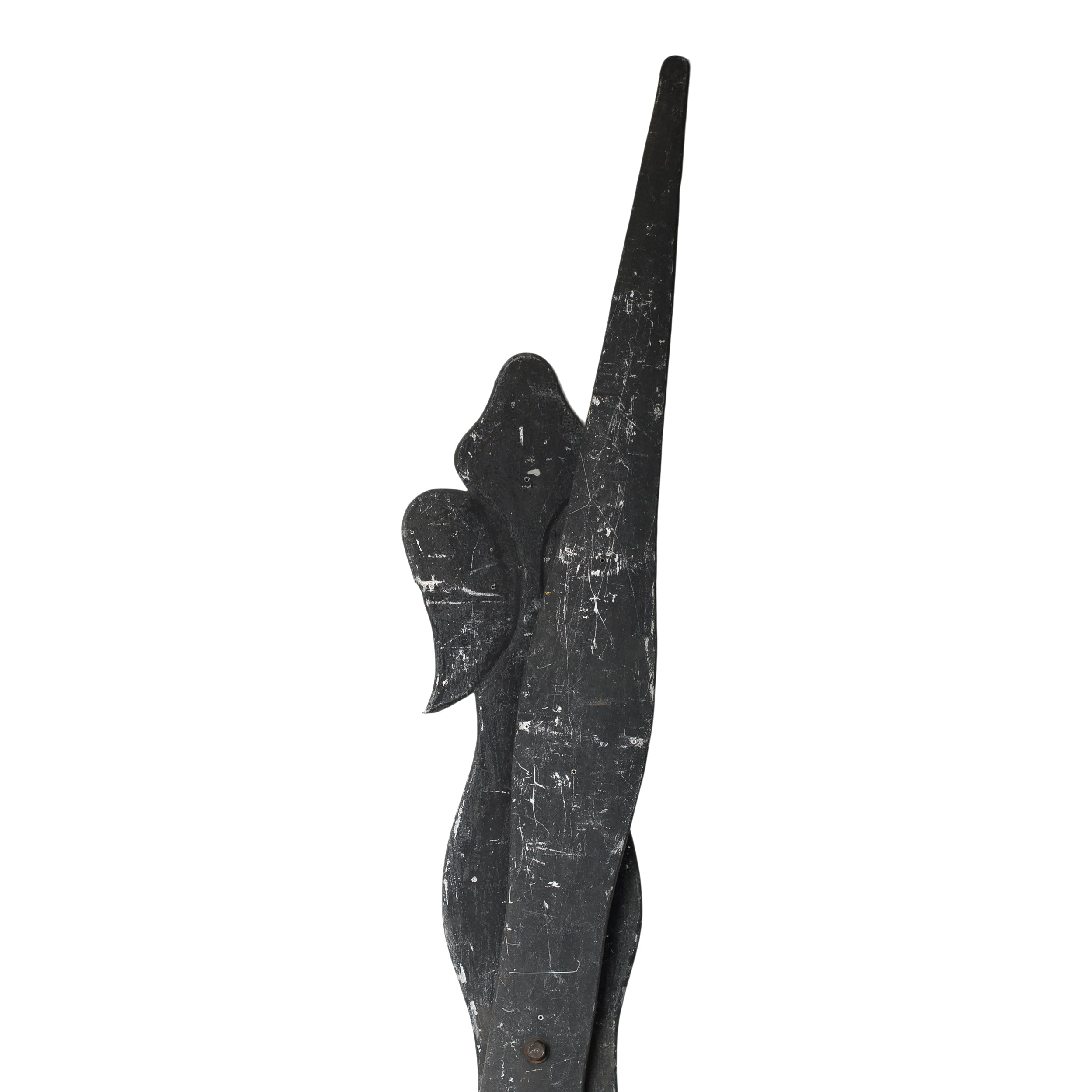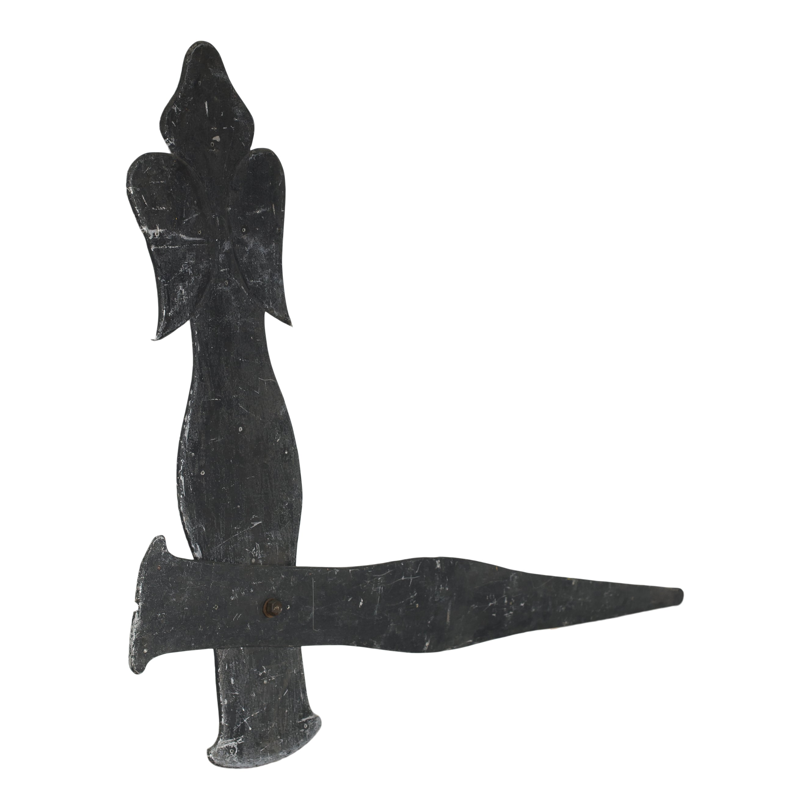 This set of oversized vintage clock hands features a bold silhouette with a matte black finish and visible wear throughout. The elongated forms and decorative detailing reference traditional clockwork design while offering strong visual impact at scale.