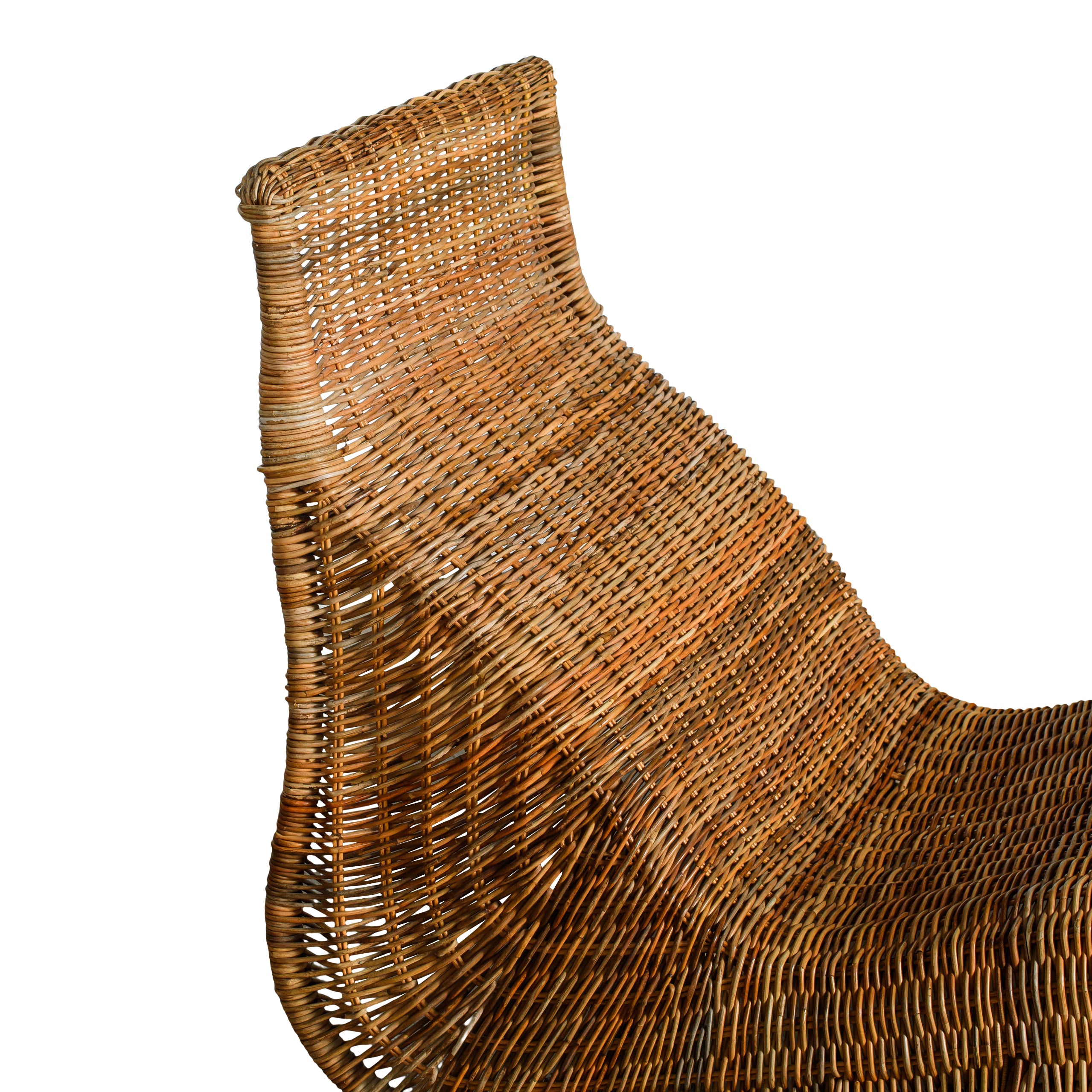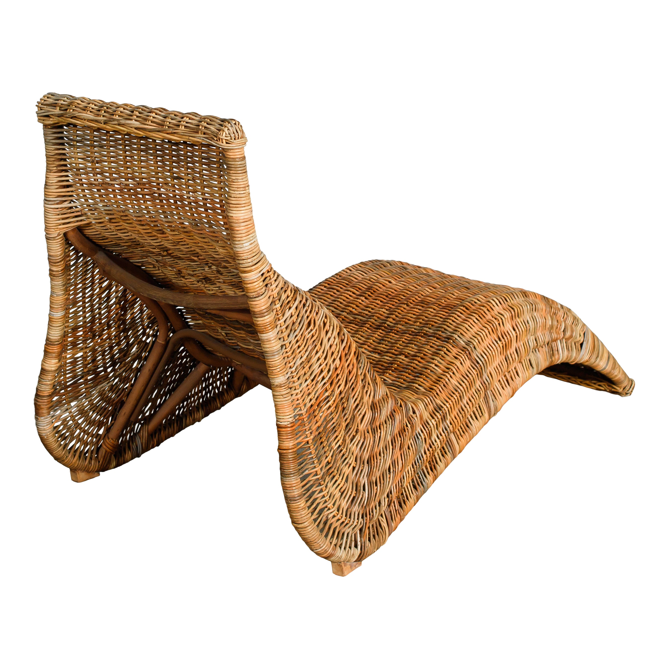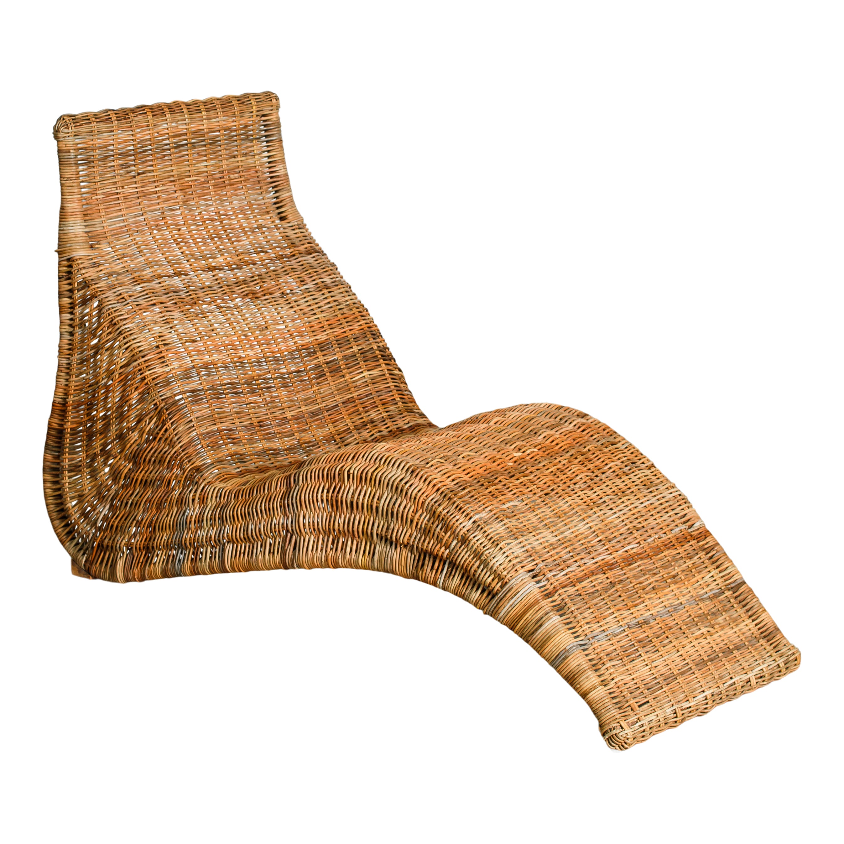 A sculptural rattan lounger with an easy, flowing shape that invites relaxed lounging. Its woven construction brings warmth and natural texture, while the curved silhouette adds a striking, organic presence to any room or outdoor-covered space. Style it as a statement seat or as part of a laid-back, coastal-inspired setting. A standout piece that blends form and function with effortless appeal.