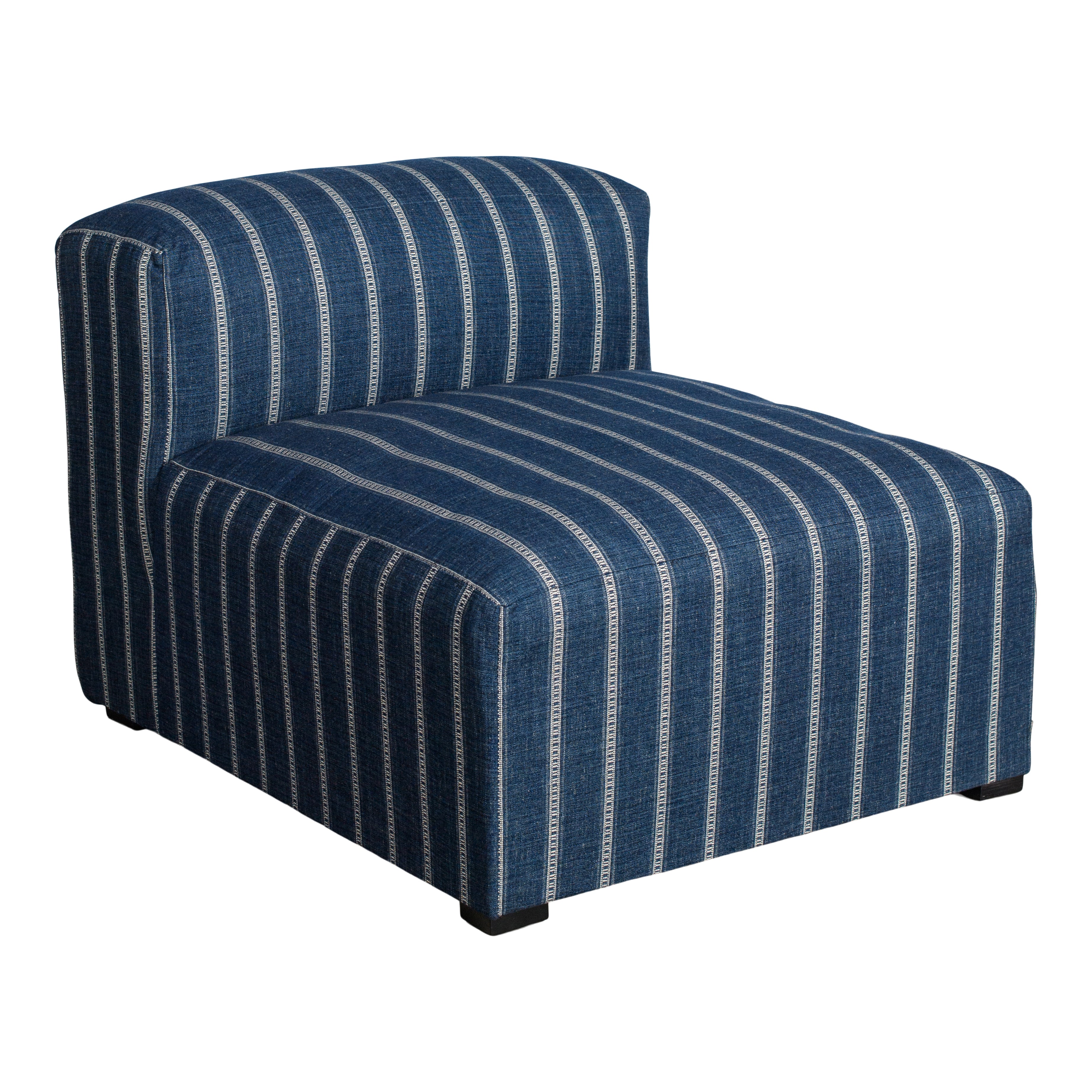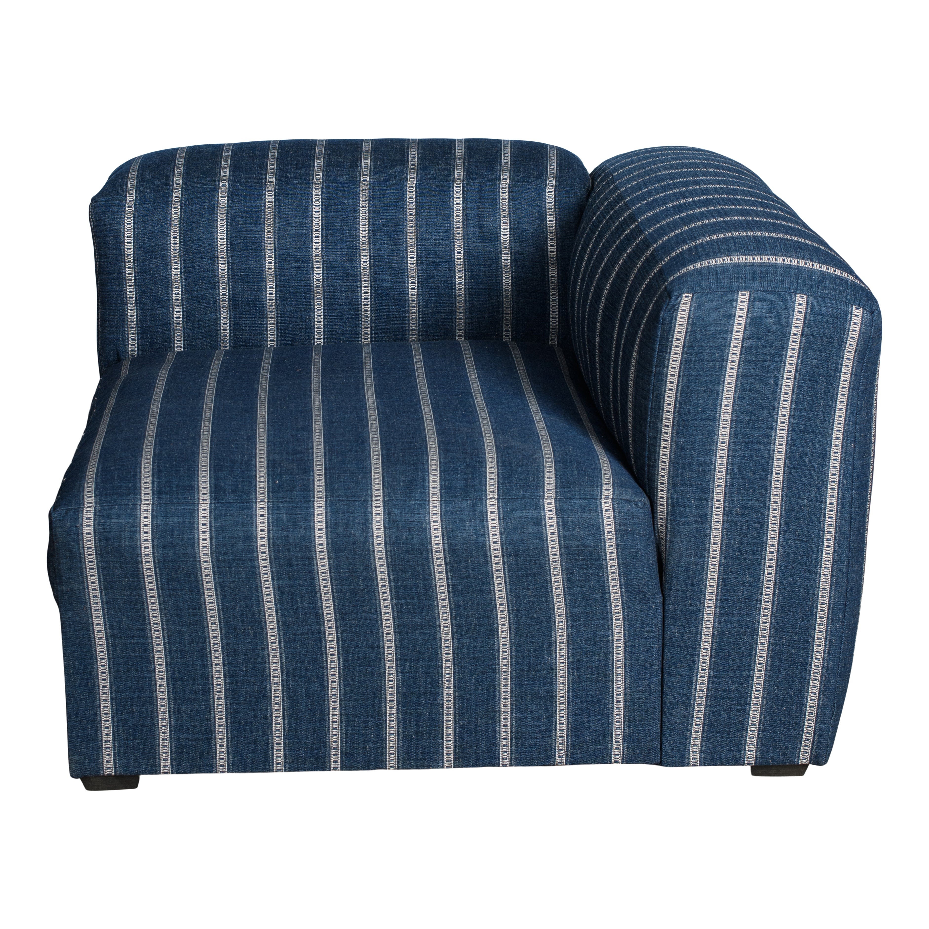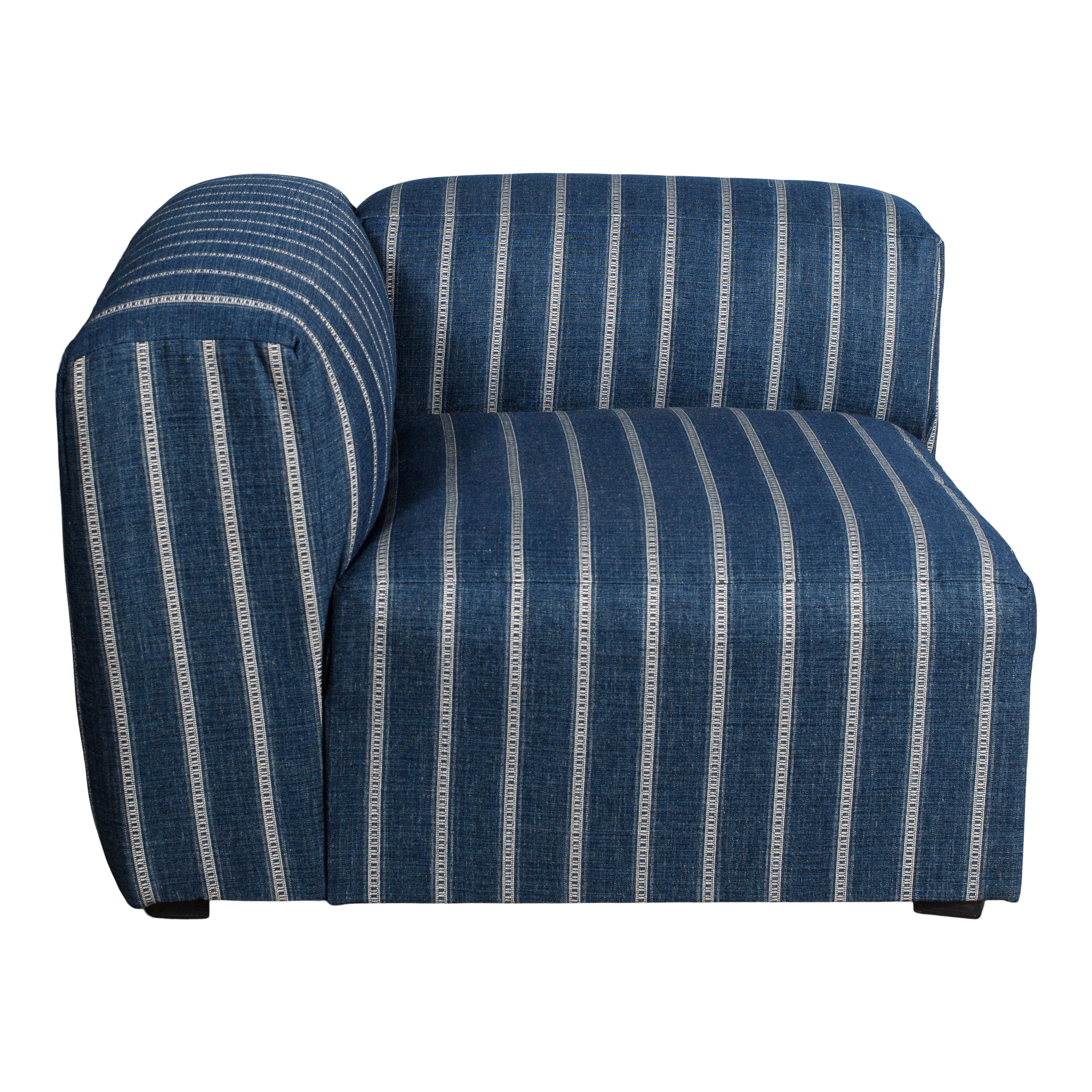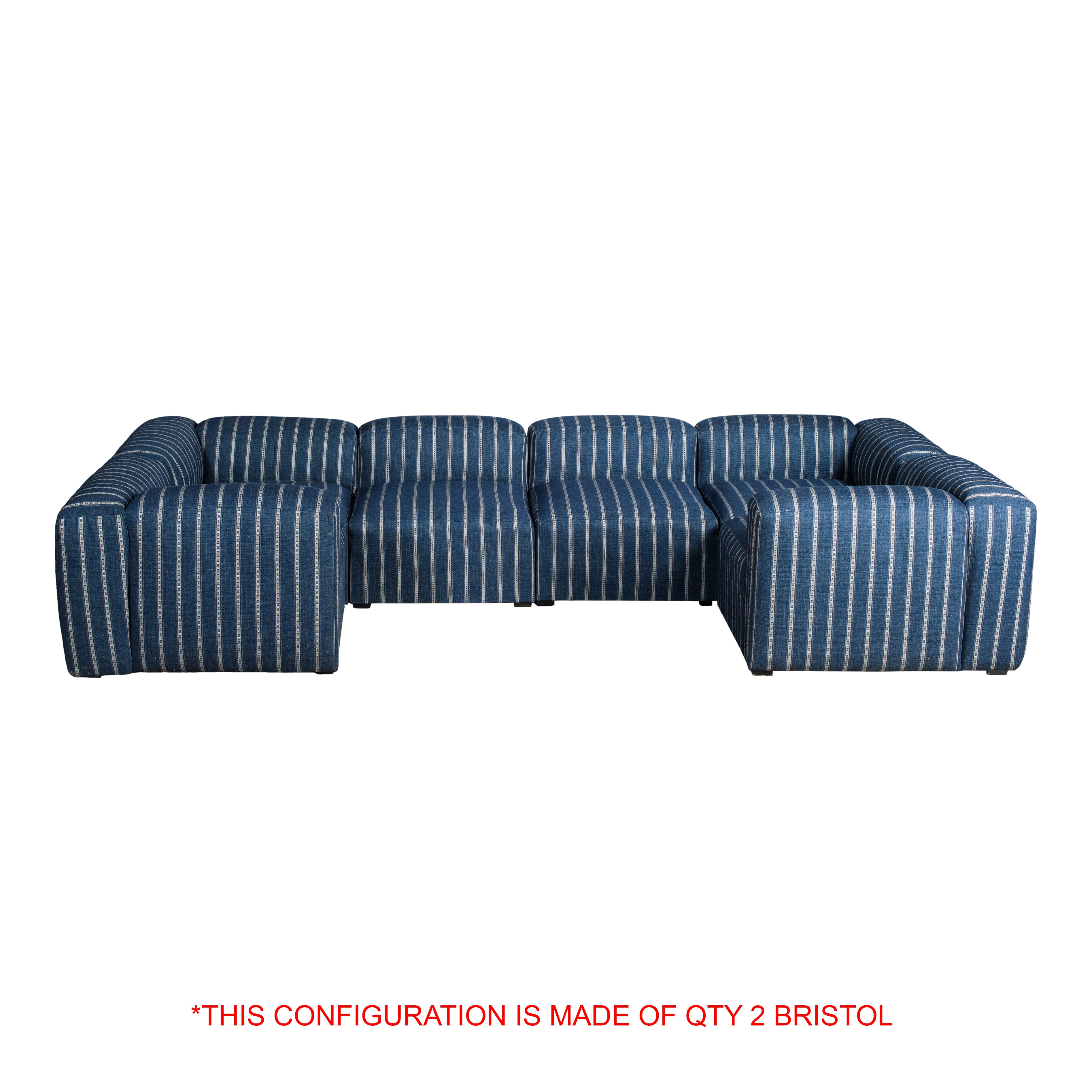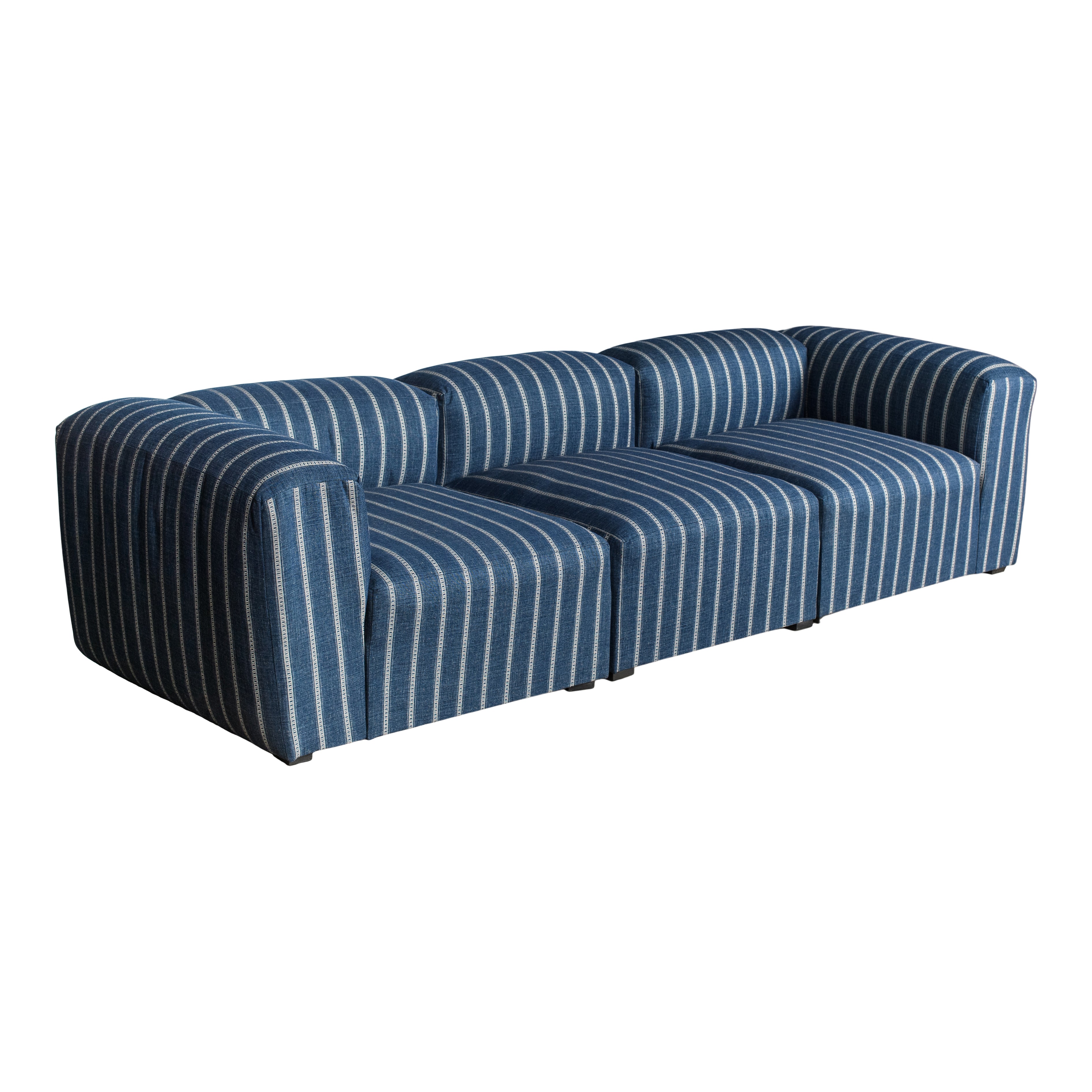 The Bristol Striped Couch brings a bold dose of pattern with its indigo and ivory ticking stripes. Its modular, low-profile design allows for flexible layouts—use all three pieces together for a statement lounge or separate them for more intimate seating. For even more possibilities, combine two Bristol Couches to create extended, U-shaped, or corner configurations that anchor larger lounge areas.
