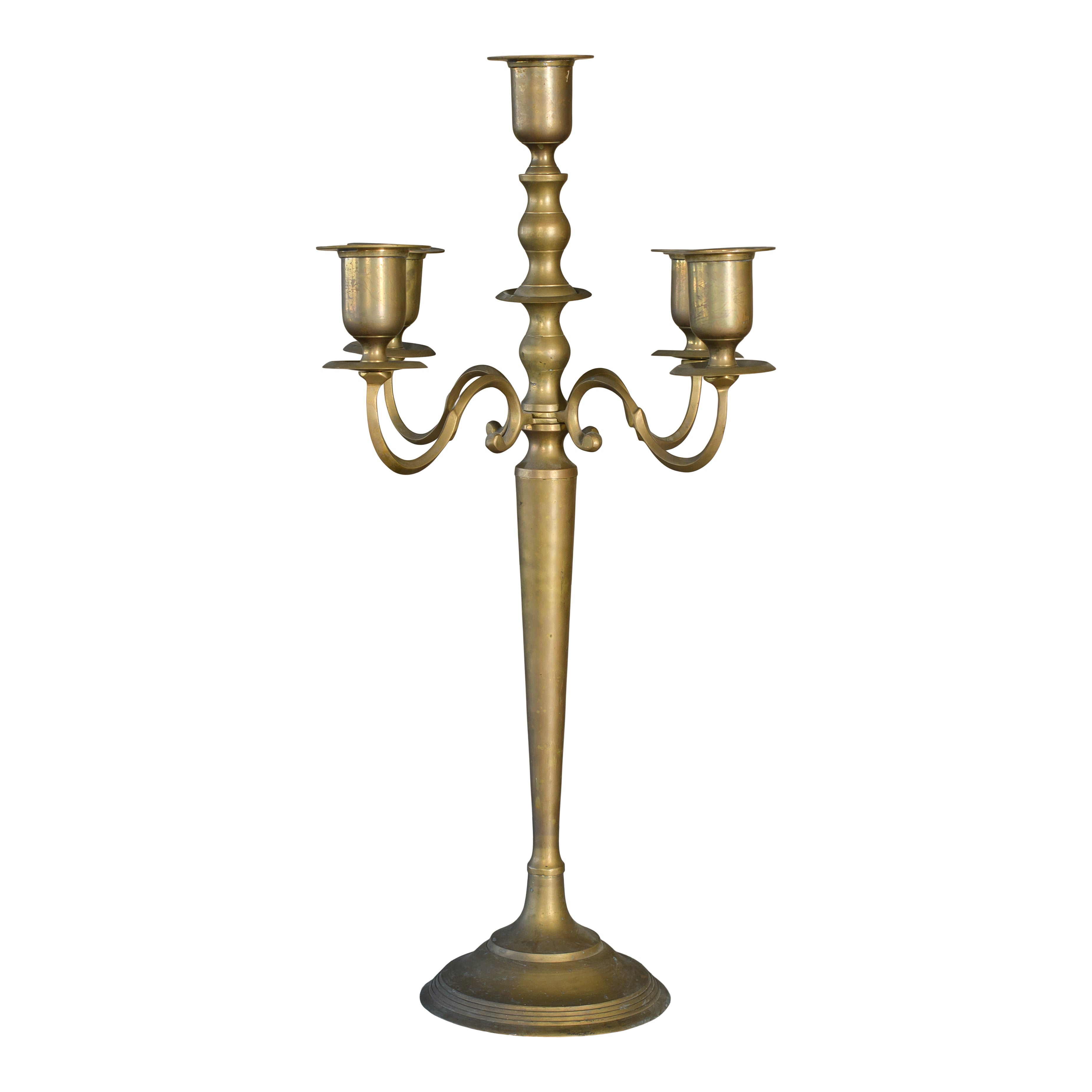 The Coronita Candelabra is a vintage brass piece with graceful arms and a classic silhouette. Designed to hold three taper candles, it brings a warm, golden glow to any setting.