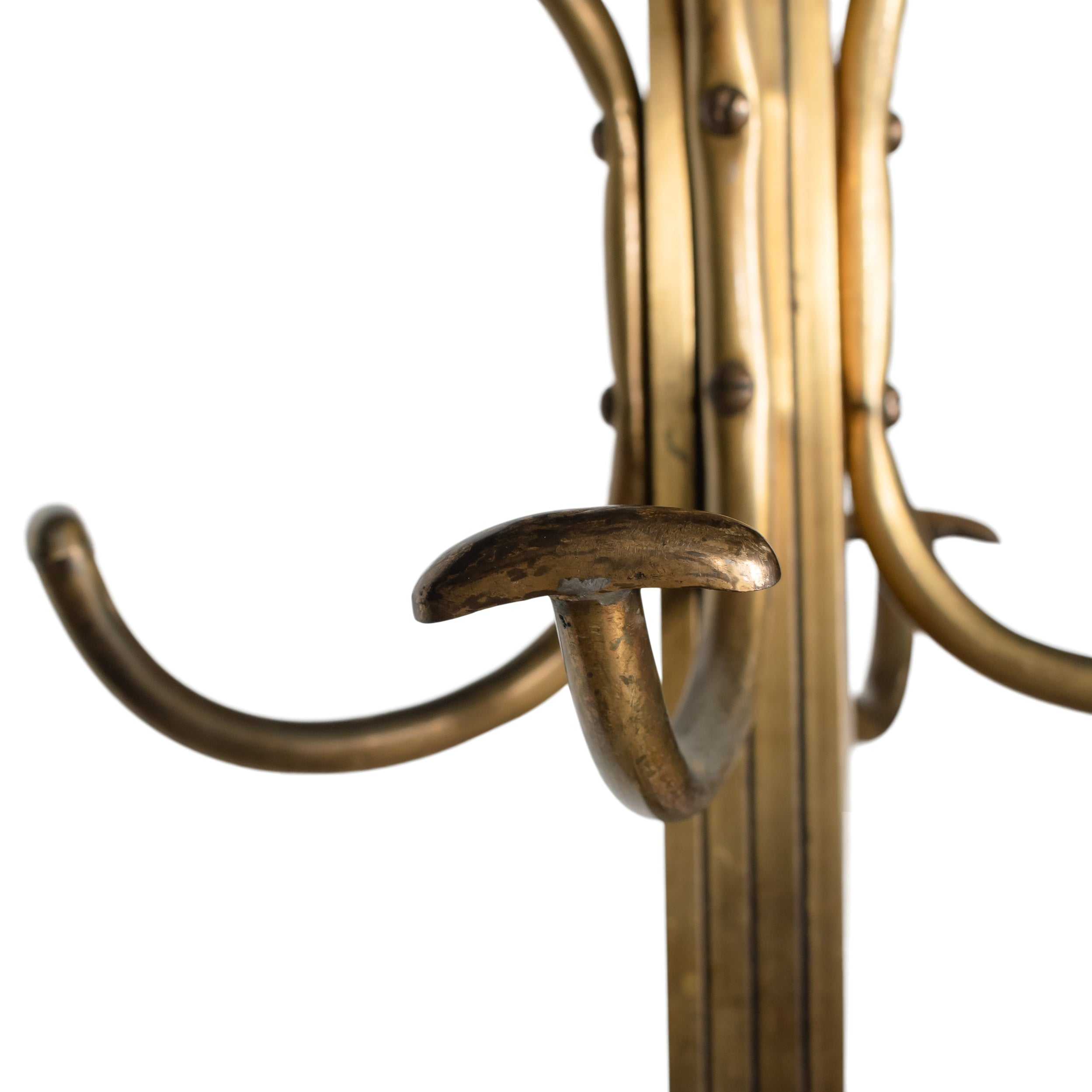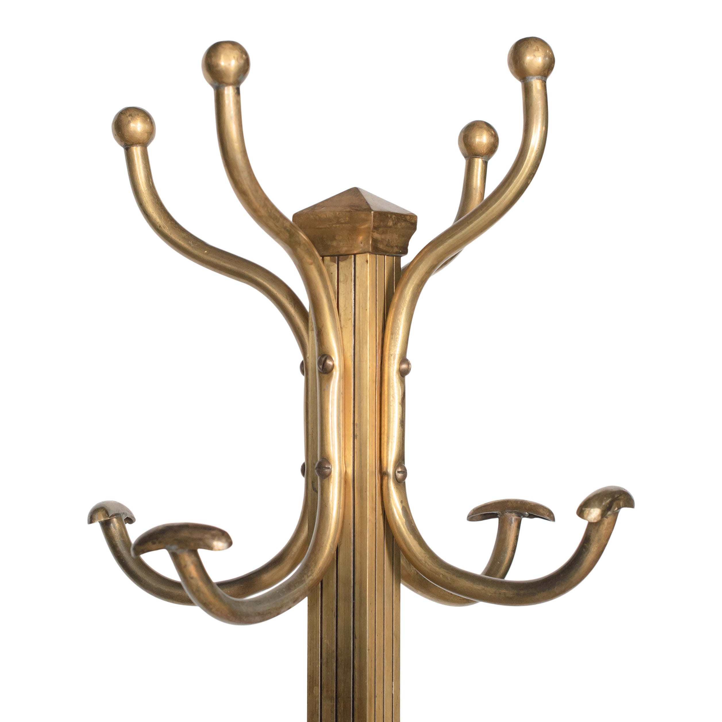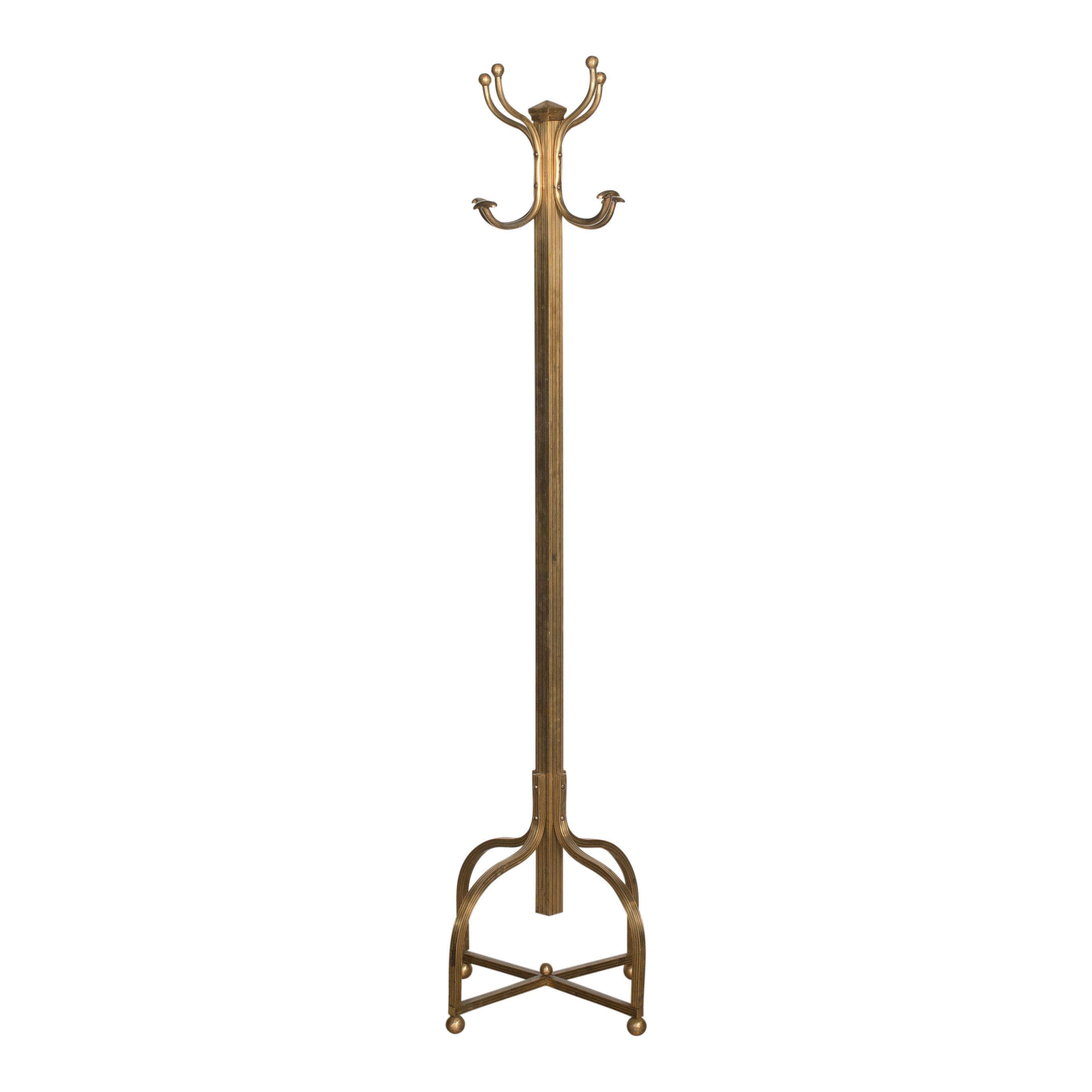 A vintage brass coat rack with sculptural hooks and a sturdy, decorative base. Perfect as a styling piece in entryways, lounges, or themed vignettes.