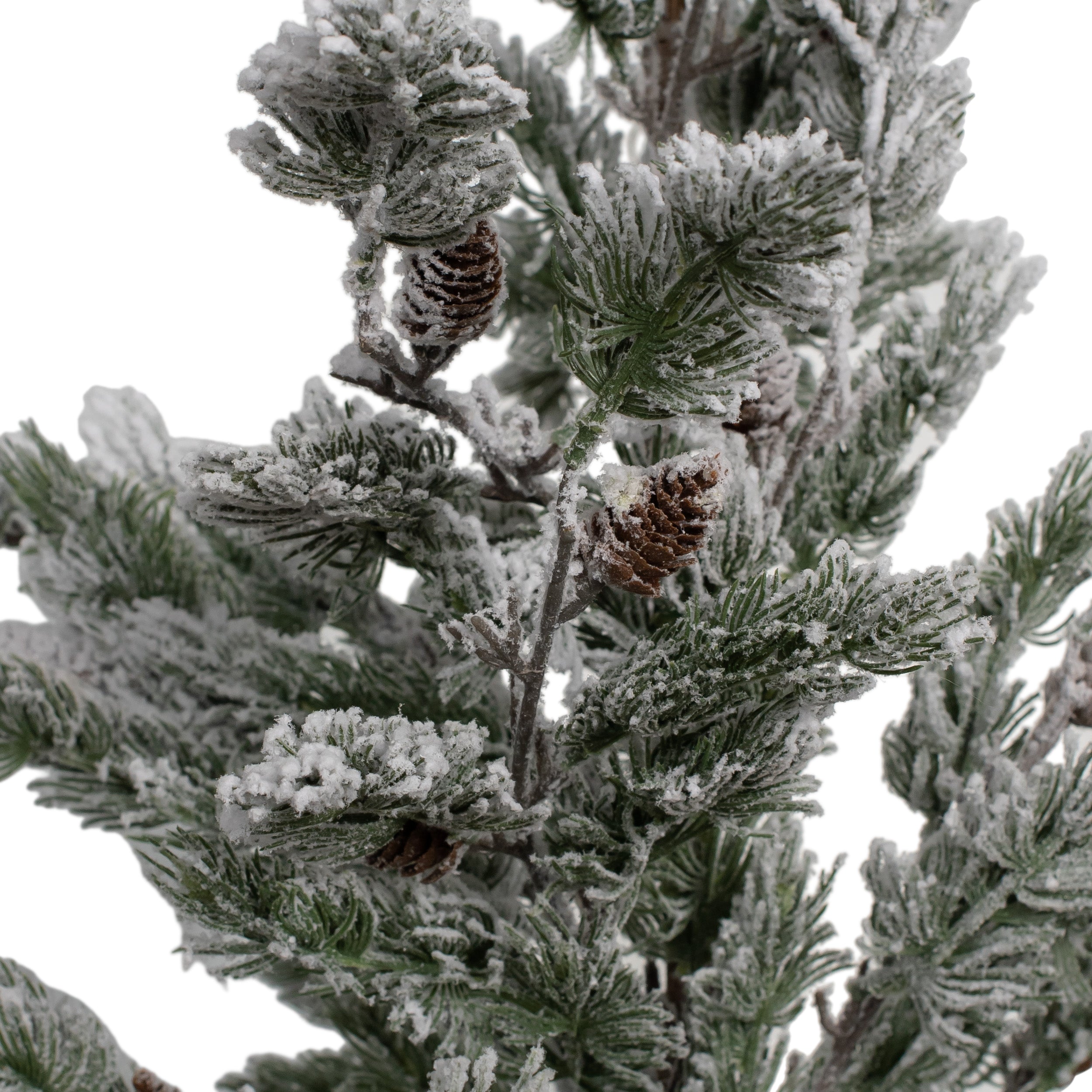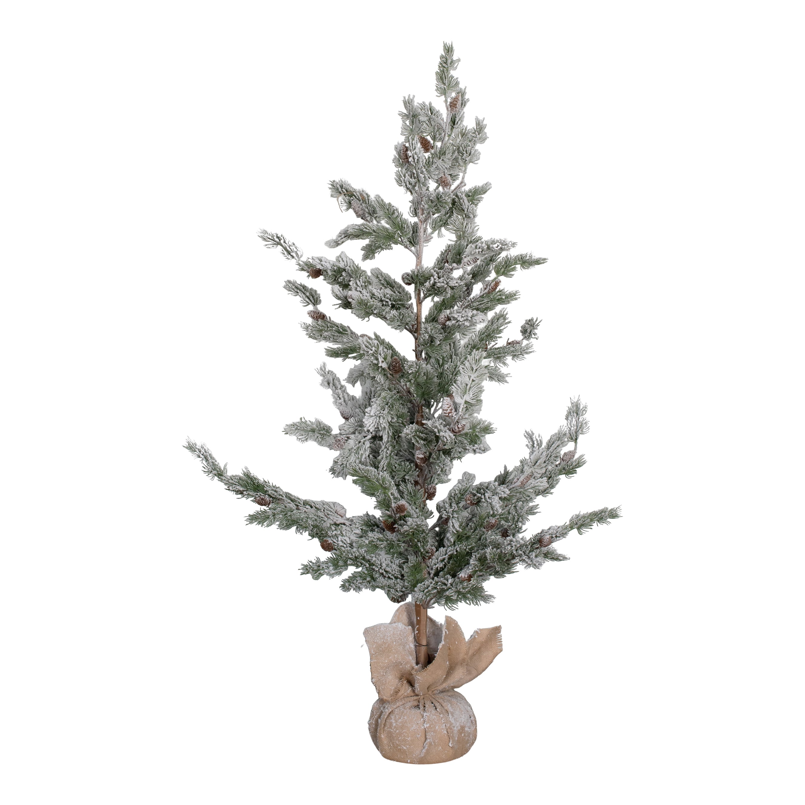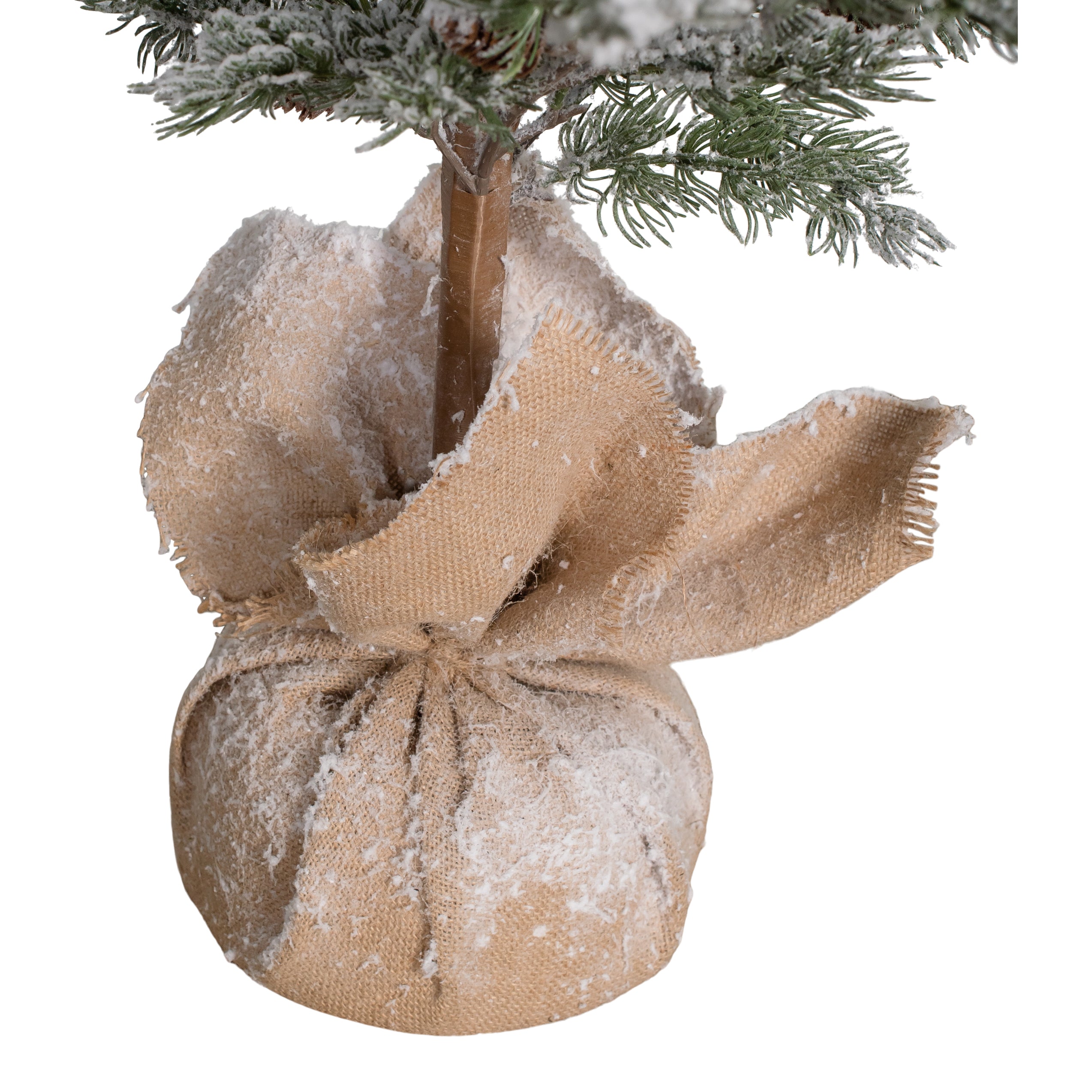 A snowy, pine-dusted Christmas tree wrapped in a burlap base, perfect for adding a frosty holiday touch to tabletops, entry moments, bar displays, or winter vignettes. Its soft, flocked branches and scattered pinecones bring a cozy, just-snowed-in feel to any seasonal setup.