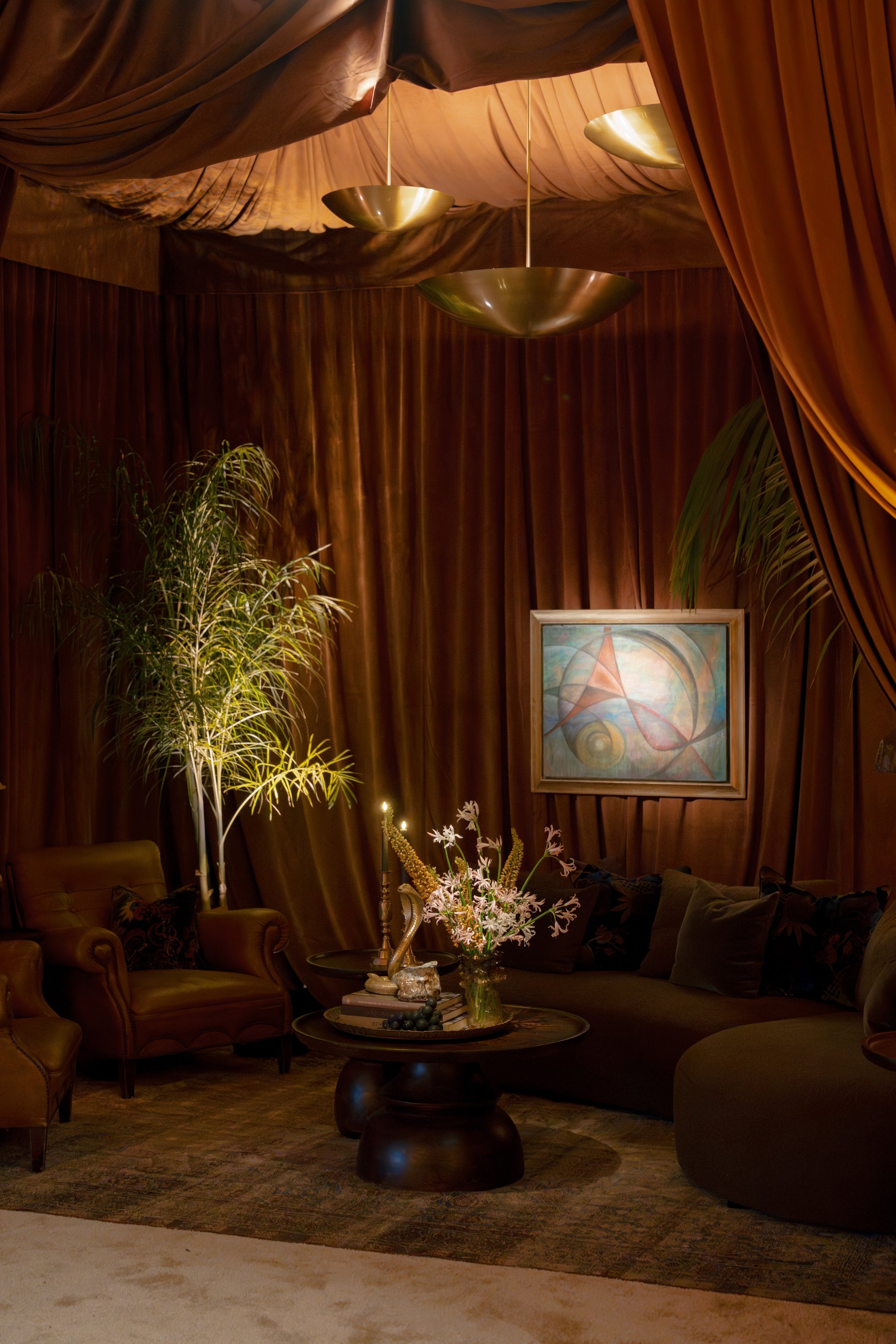 Round dark wood side table.