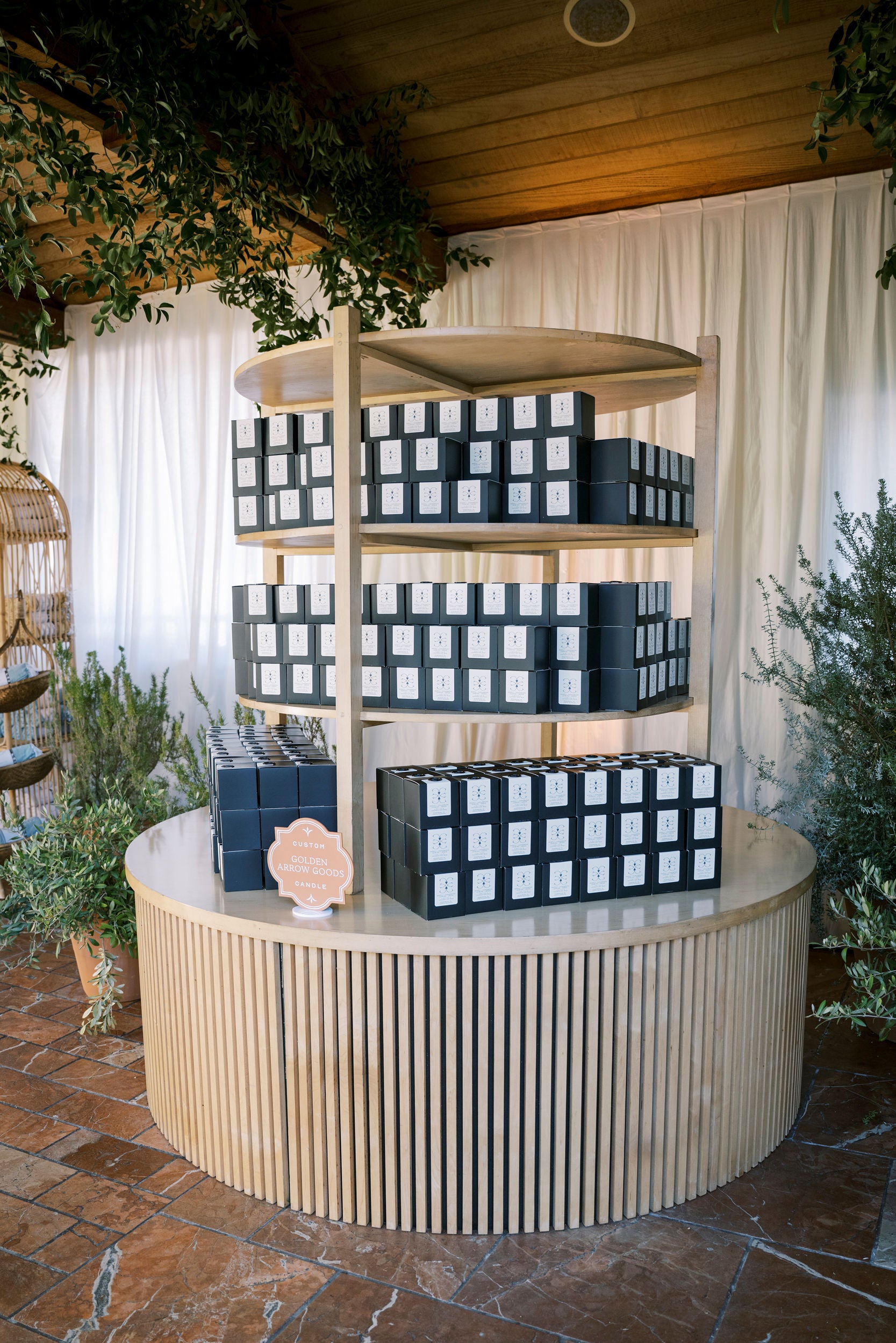 Make a statement with a piece from our Idyll Collection! This custom made slatted wood and comes in 4 pieces. Perfectly fitting into our Idyll collection, this versatile shelf is ideal as a back bar for the Idyll Round Bar. Can also be used to display escort cards, florals, photos, or a welcome drinks bar!