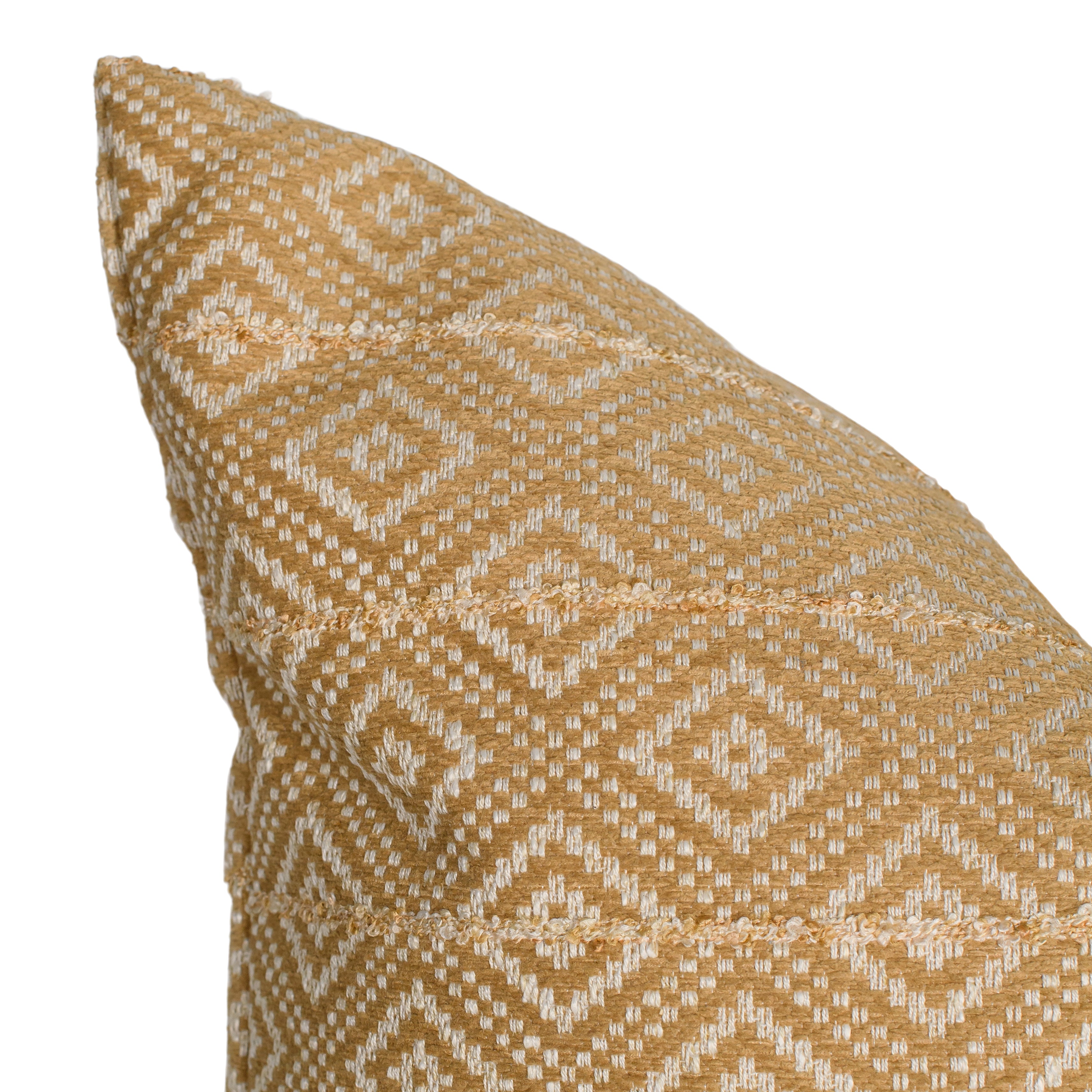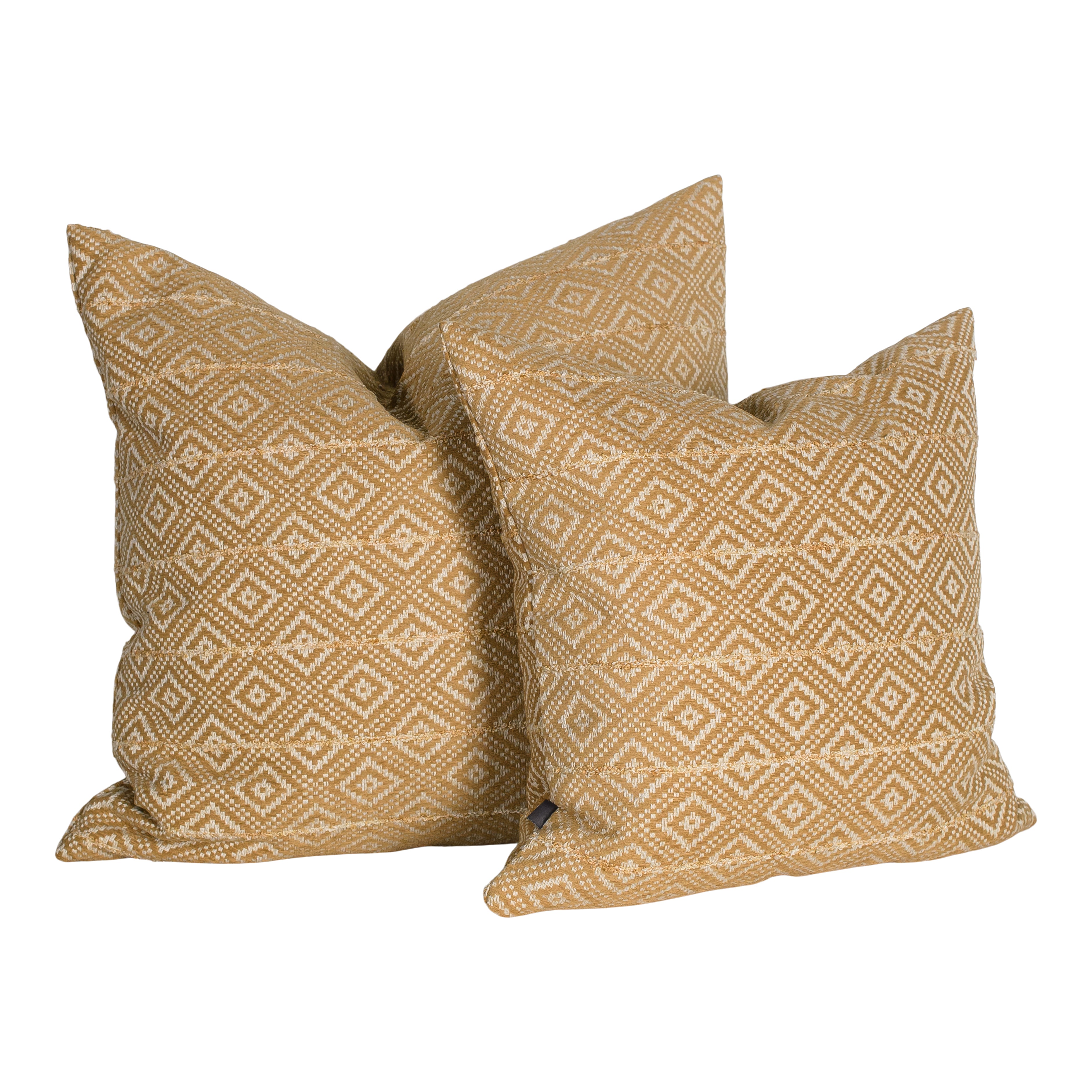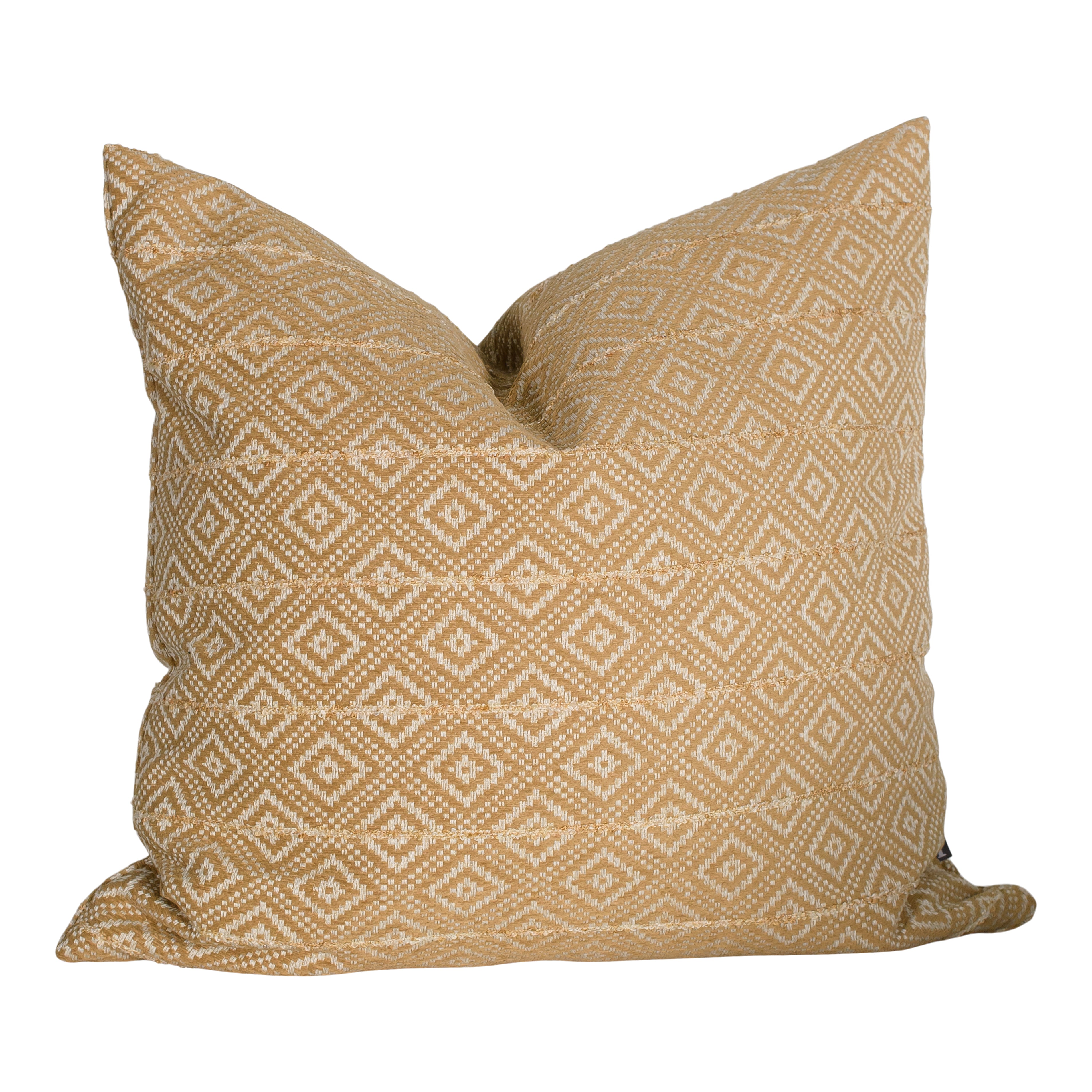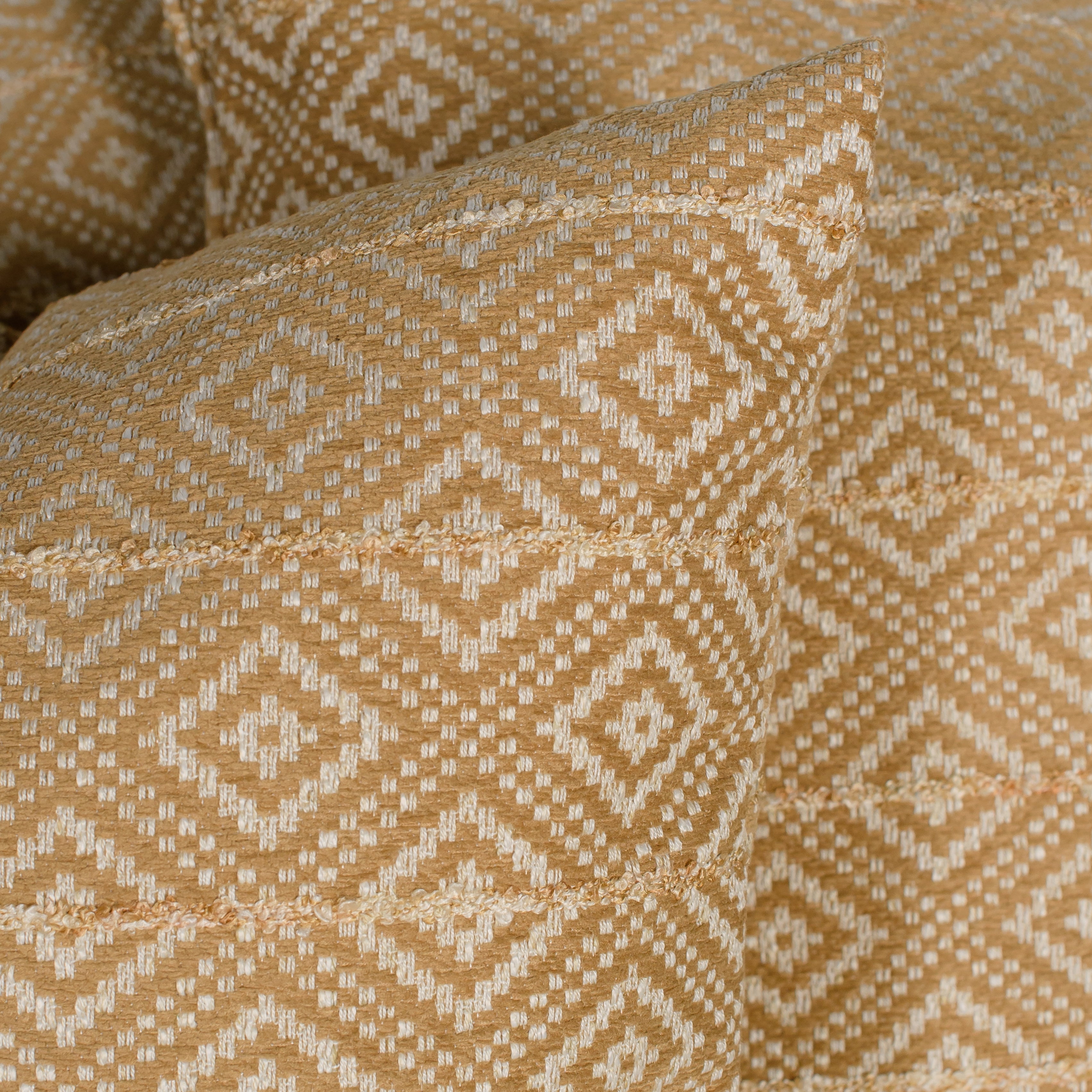A set of diamond-pattern pillows woven in a warm golden wheat tone with soft cream detailing. The textured design adds depth and a timeless, woven character that works across lounges, banquettes, or layered seating moments.
