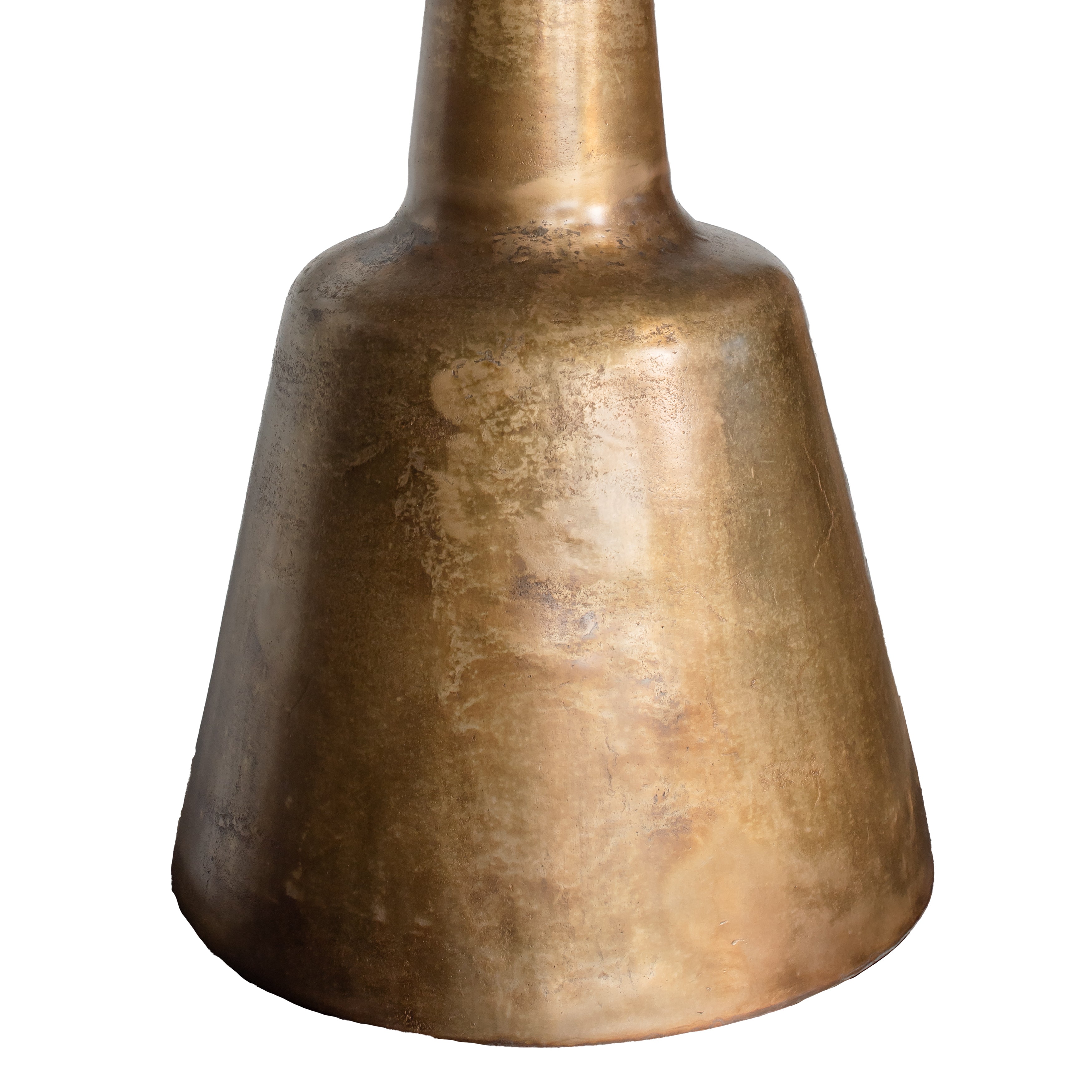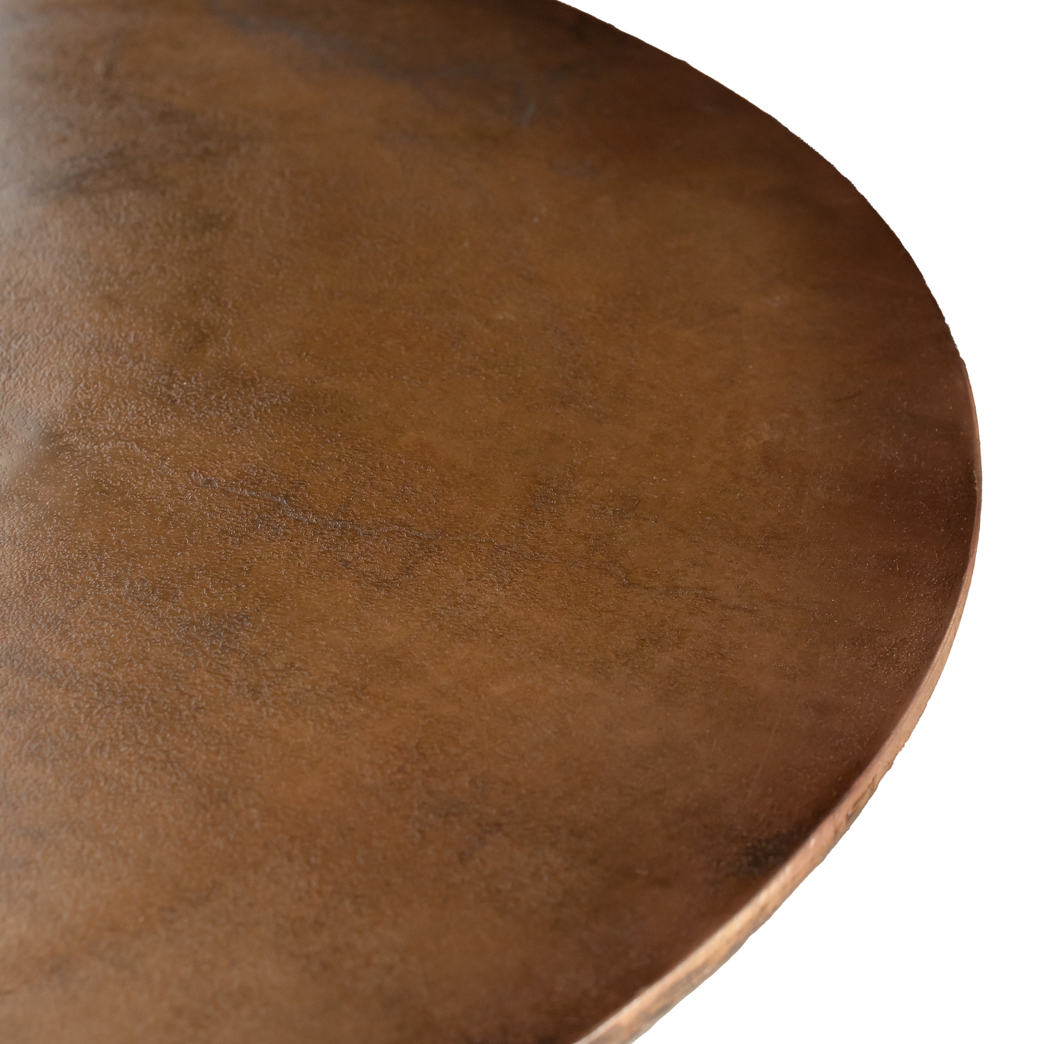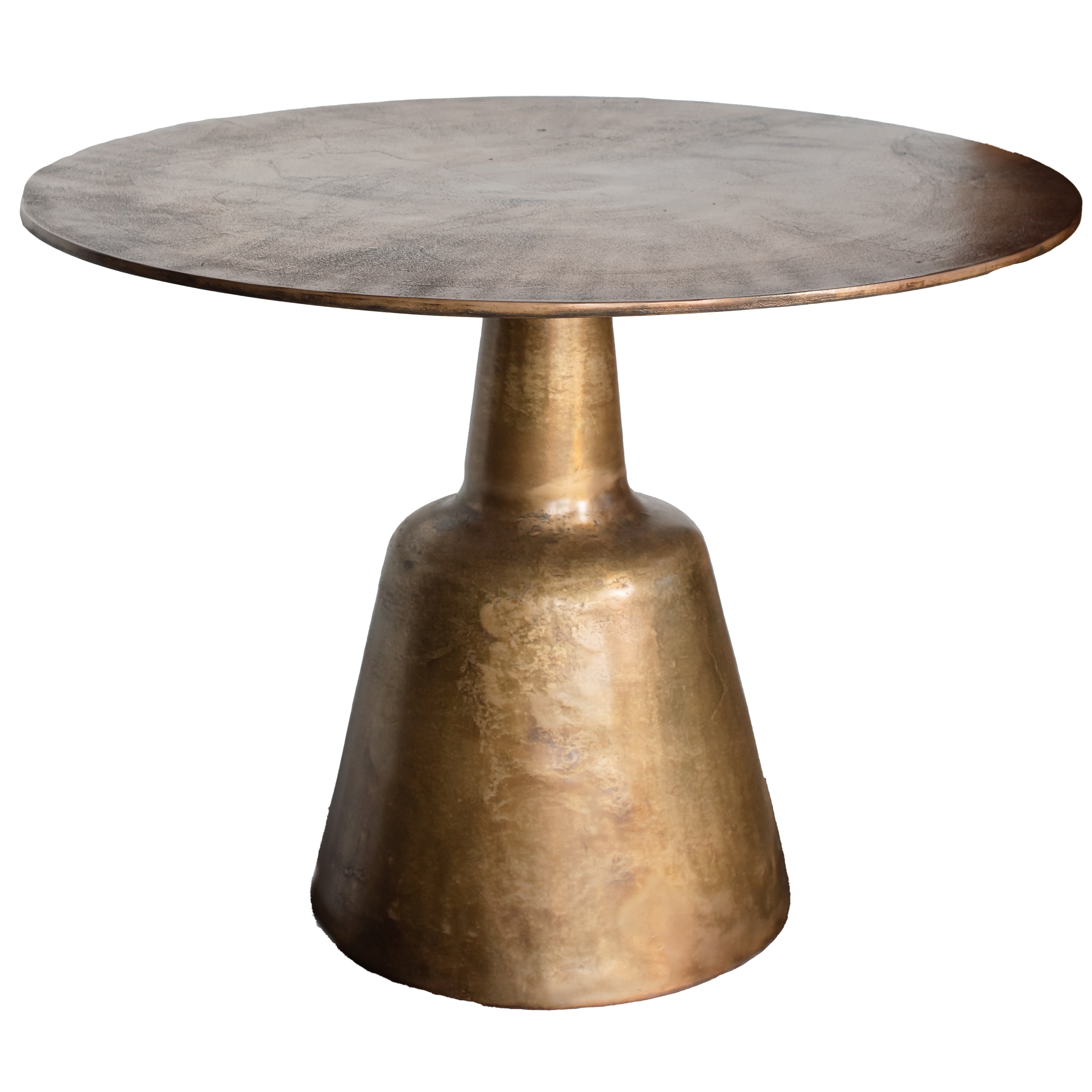 The Lane Grande Bistro Table features a sculptural metal base and a round top finished in antique brass. Its rich patina and clean lines create a warm, refined focal point that works beautifully in cocktail lounges, dining areas, or paired with upholstered seating. A versatile statement piece that brings texture and glow to any setting.