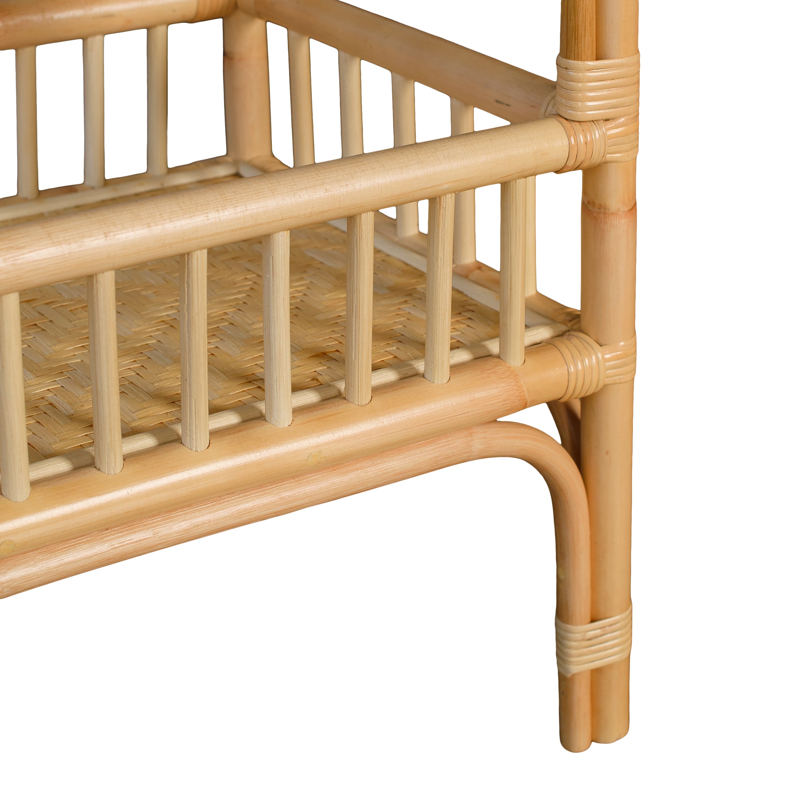 The Libby Natural Console Table features a tiered natural rattan design with a woven top shelf. Perfect for displaying drinks and sweet treats. Shelf space: 17.5" Dimensions: 31 x 13.25 x 32.25