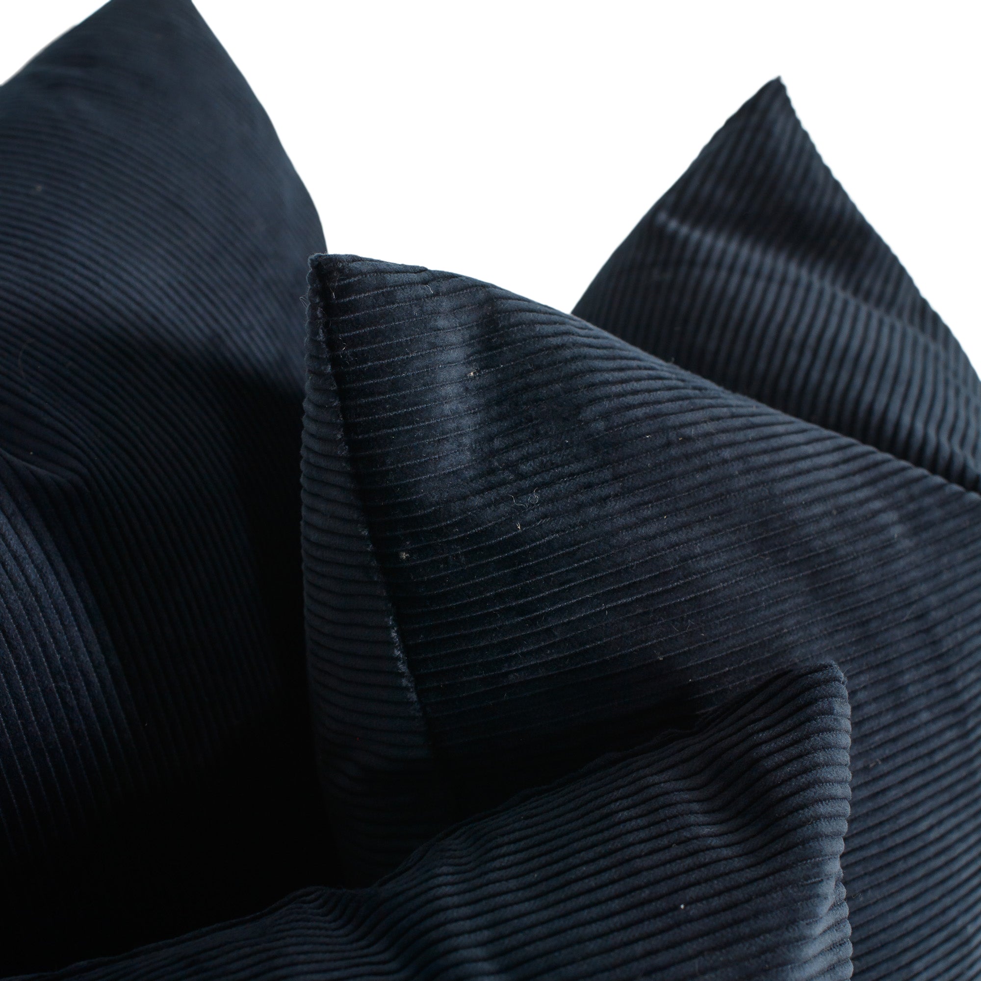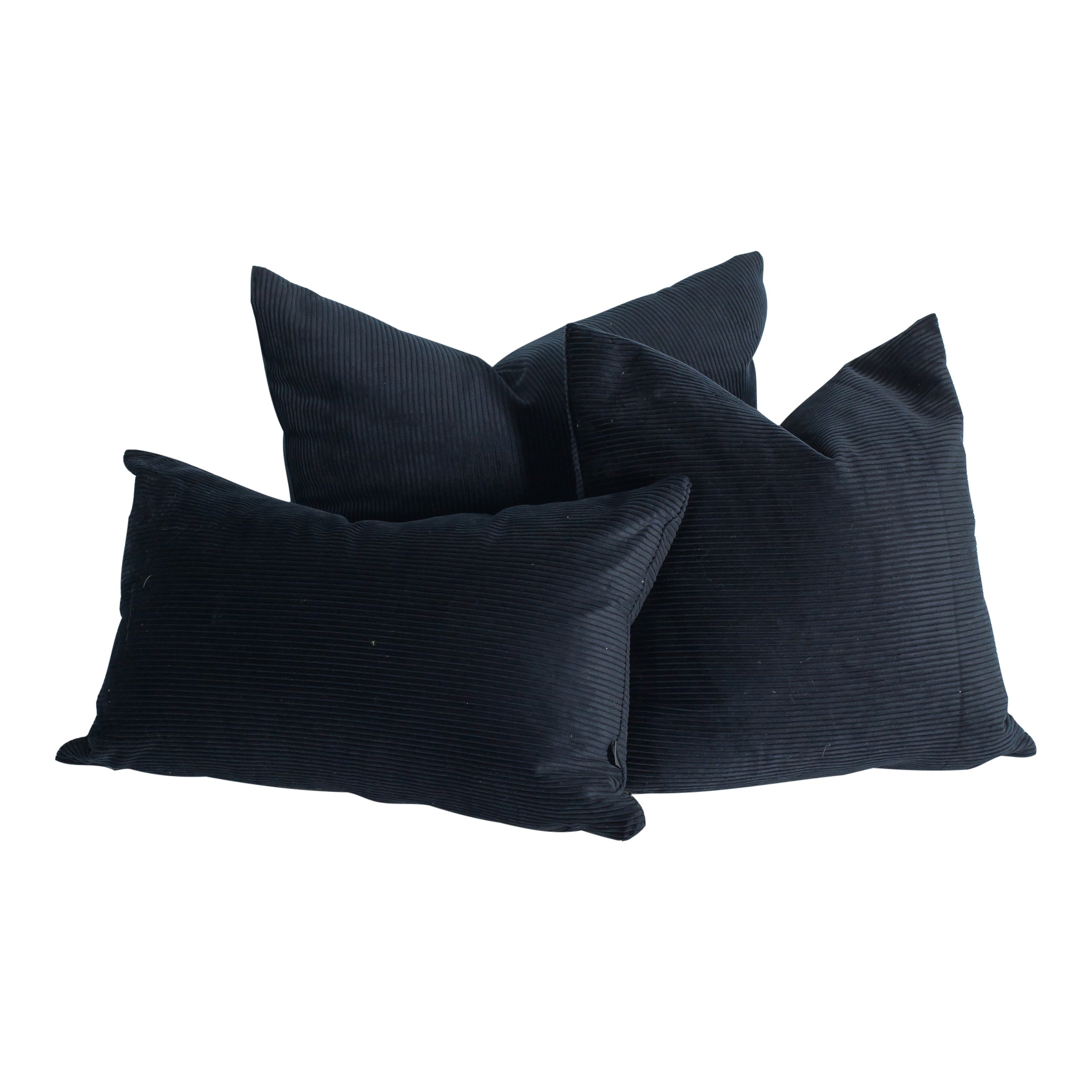 A set of navy corded pillows that add depth and texture to any lounge or seating arrangement. Their rich tone and subtle ribbing make them easy to layer with patterned or neutral pieces. Pillow sizes may vary.