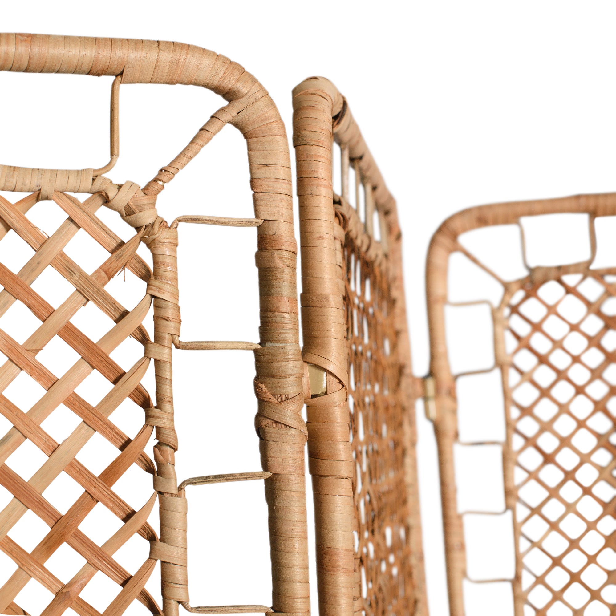 A woven rattan screen with an airy, open-weave pattern that brings texture and lightness to any space. Its three-panel design adds a natural, easygoing touch while offering subtle separation where needed.