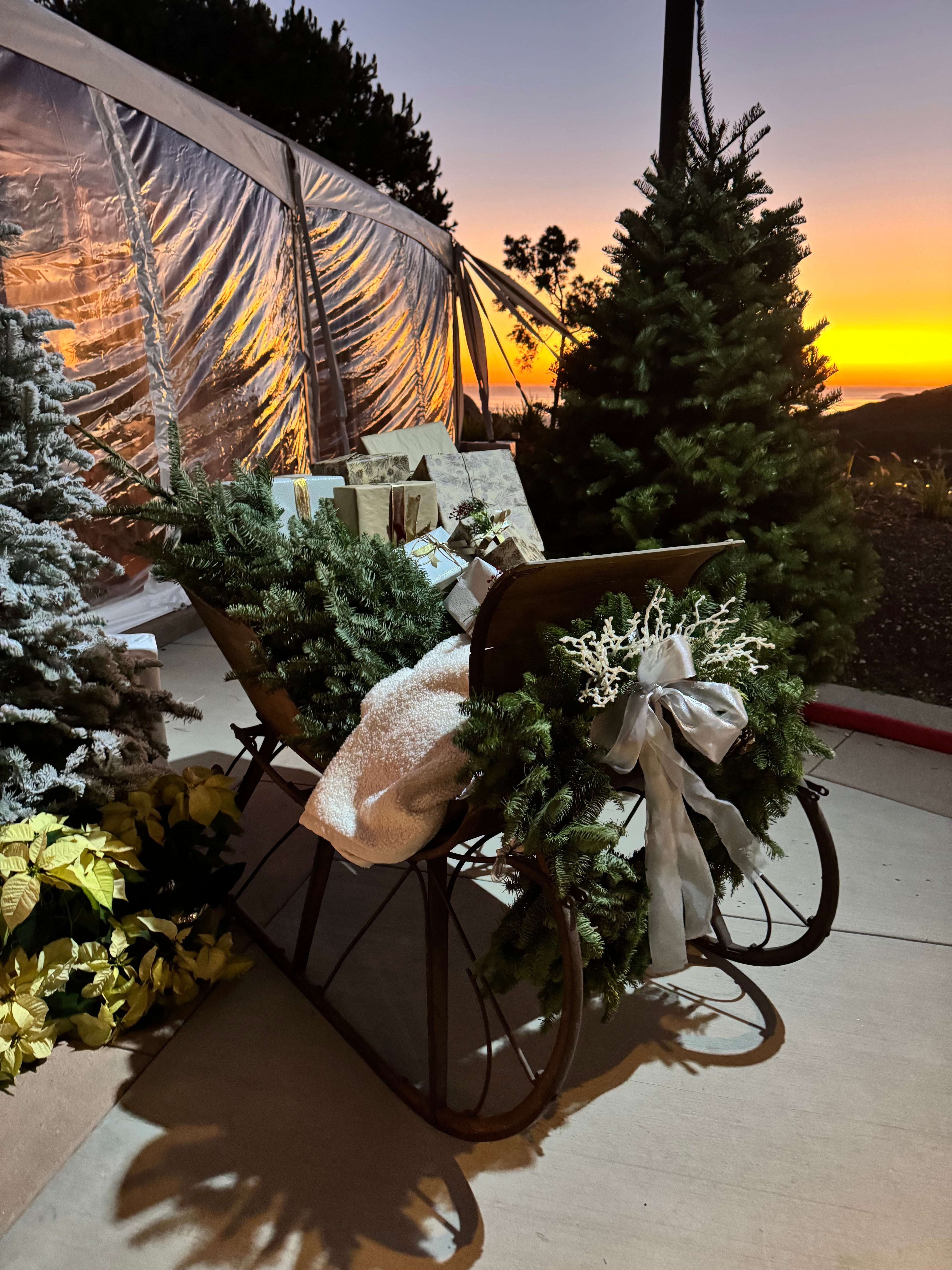 Wooden sleigh perfect for holiday parties as a gift table, backdrop or display