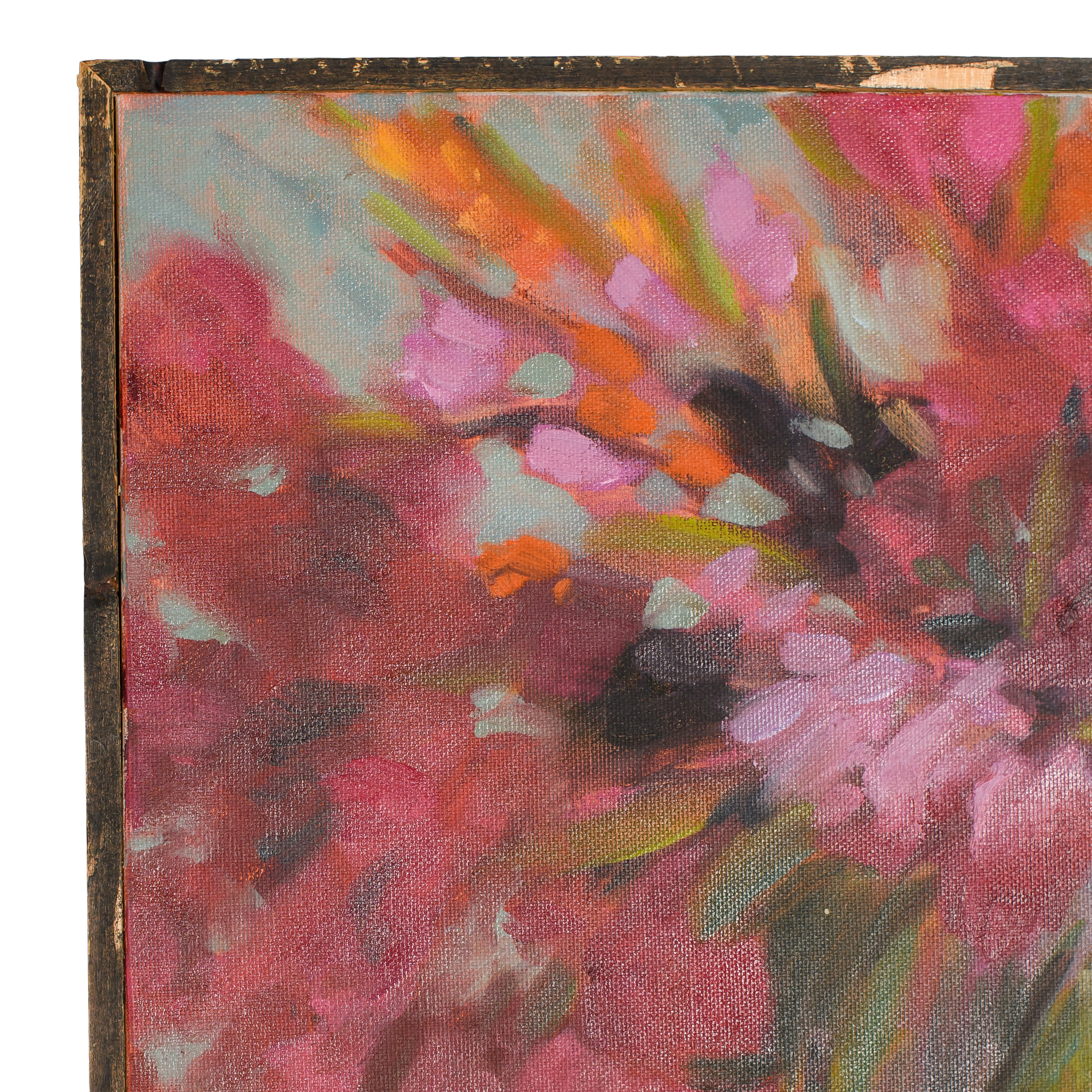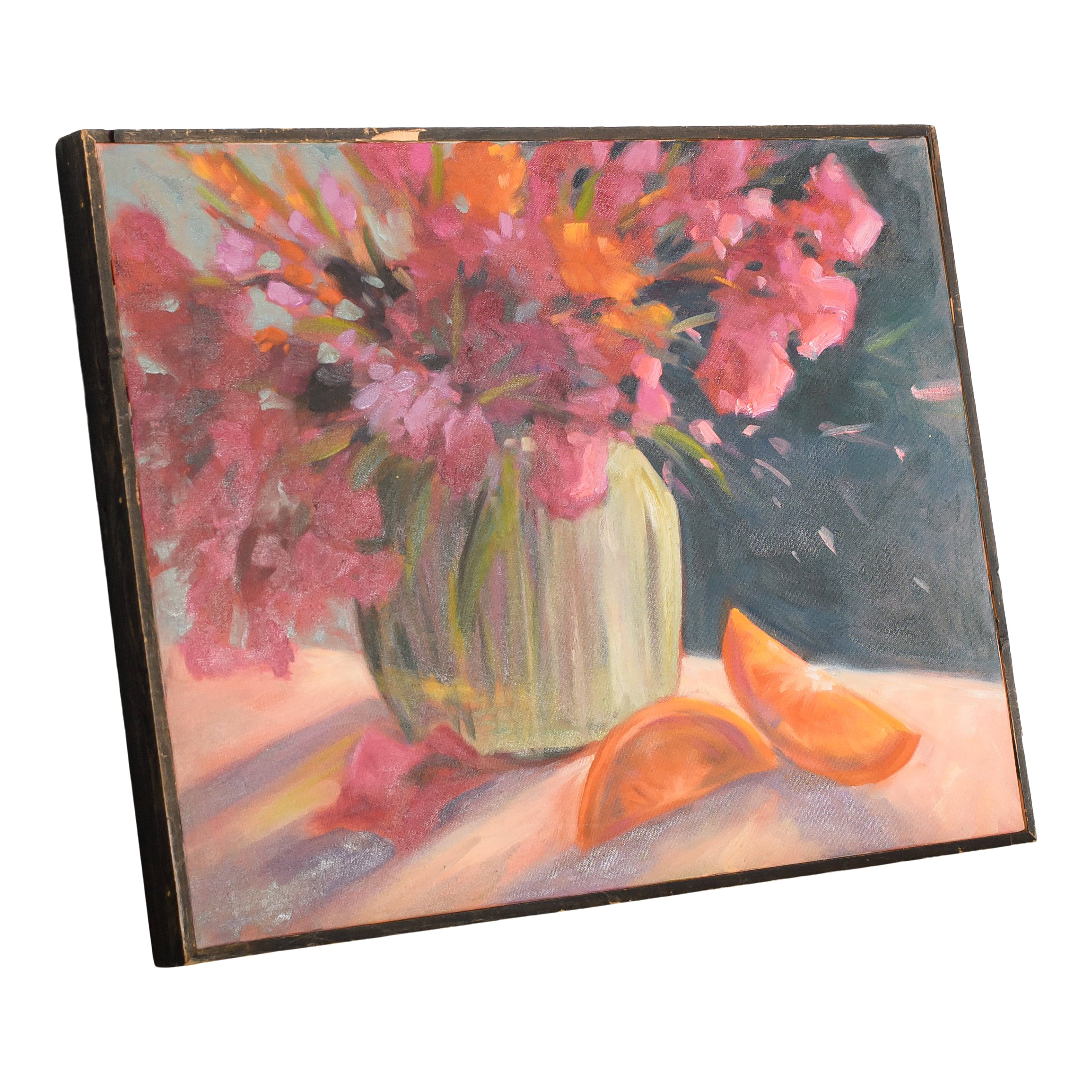 The Sahara Painting features a vivid still life of bright florals arranged in a vase, accented by bold strokes of orange and pink. With its rich tones and expressive brushwork, this vintage piece adds warmth and artistry to any setting. Perfect for styling lounge areas, gallery-inspired spaces, or adding a pop of color to event décor.