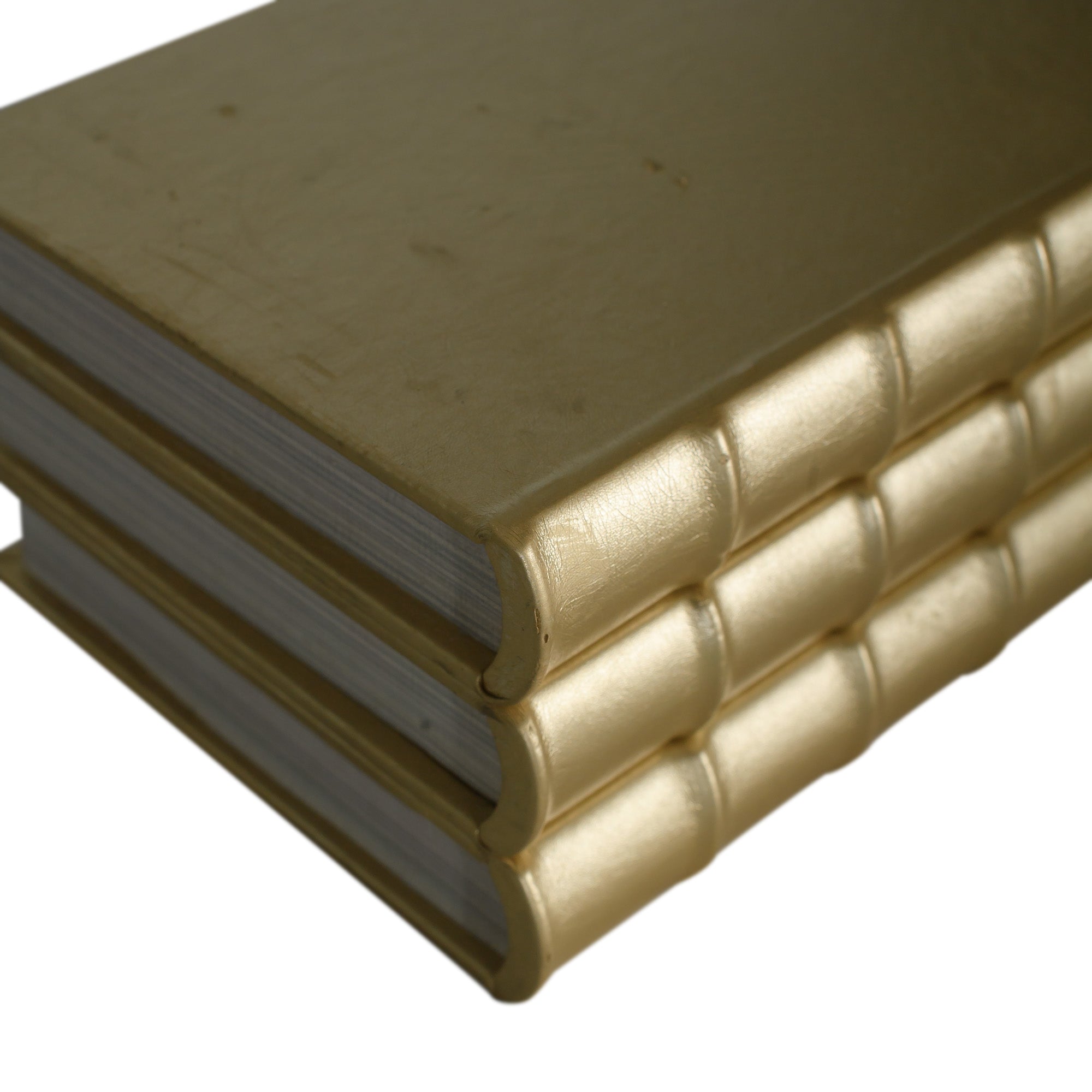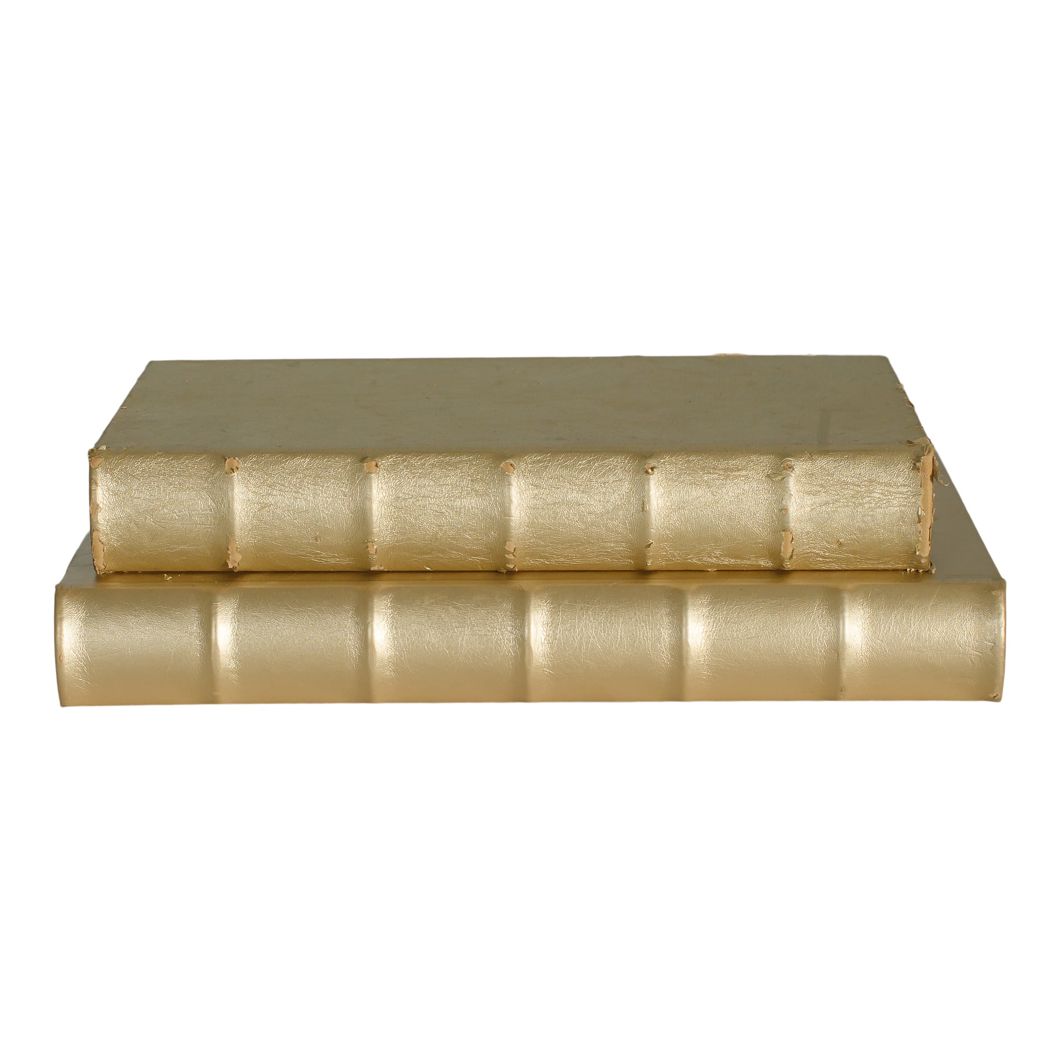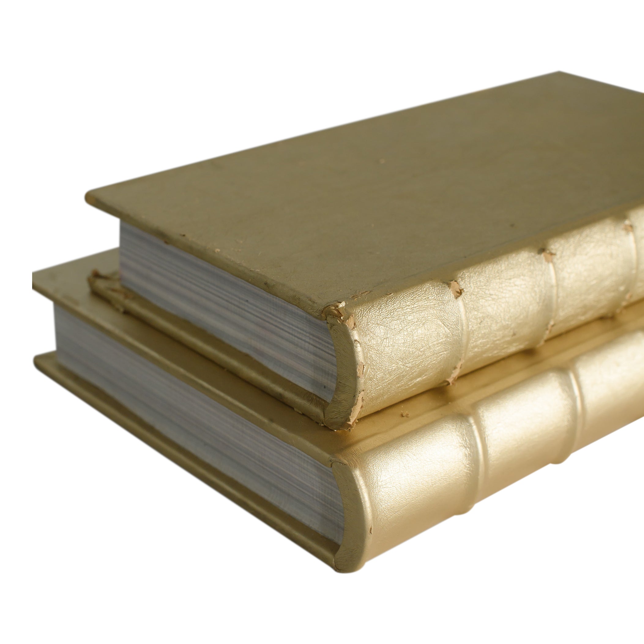 A pair of faux books finished in a soft gold tone. Perfect for adding height, layering on shelves, styling coffee tables, or bringing a hint of shine to any vignette. Size may vary.