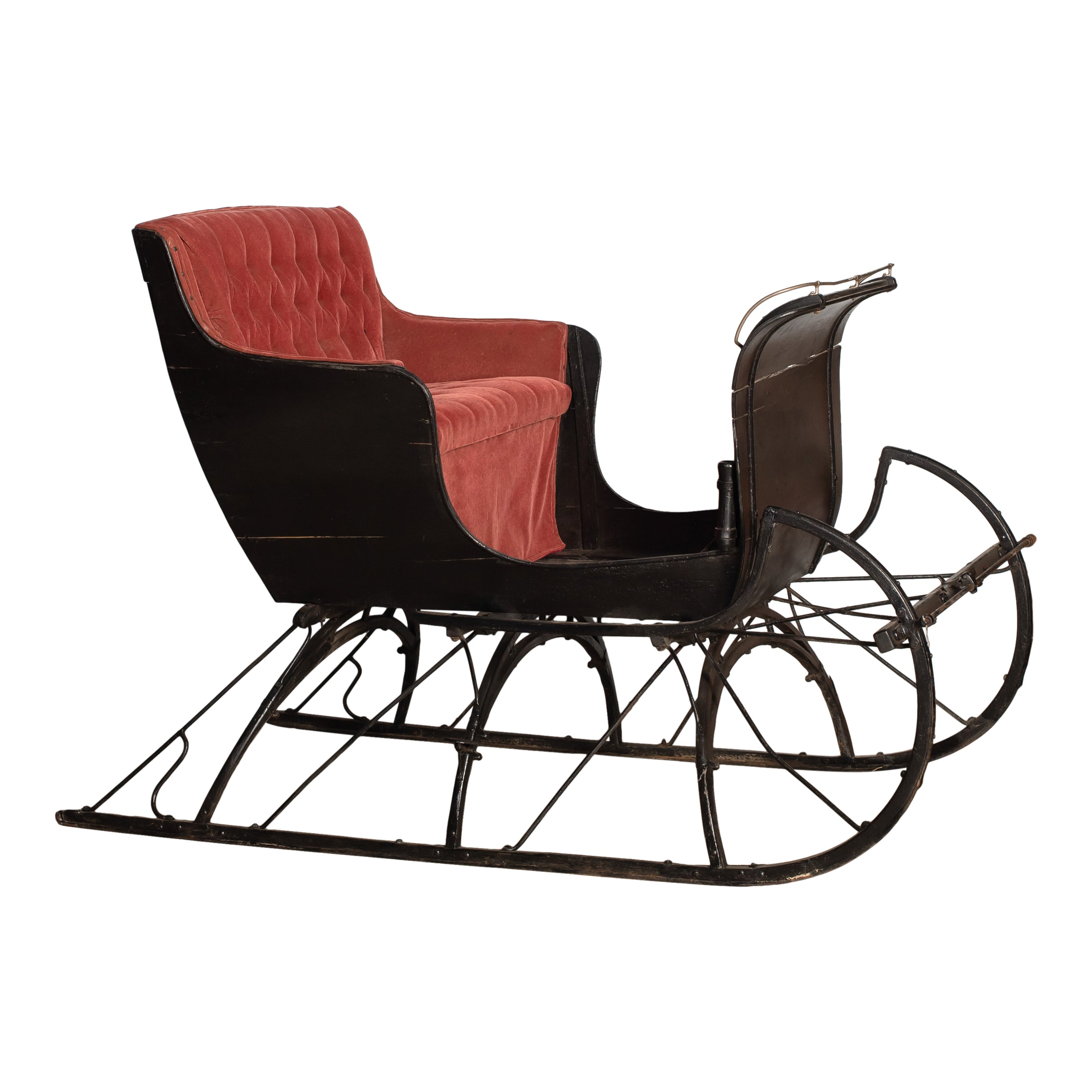A vintage sleigh with a deep black frame and plush red velvet-style seating that instantly sets a nostalgic, wintry scene. Its curved runners and charming silhouette make it a standout piece for holiday vignettes, photo moments, or festive entry displays. Ideal for bringing a touch of storybook magic to seasonal events.