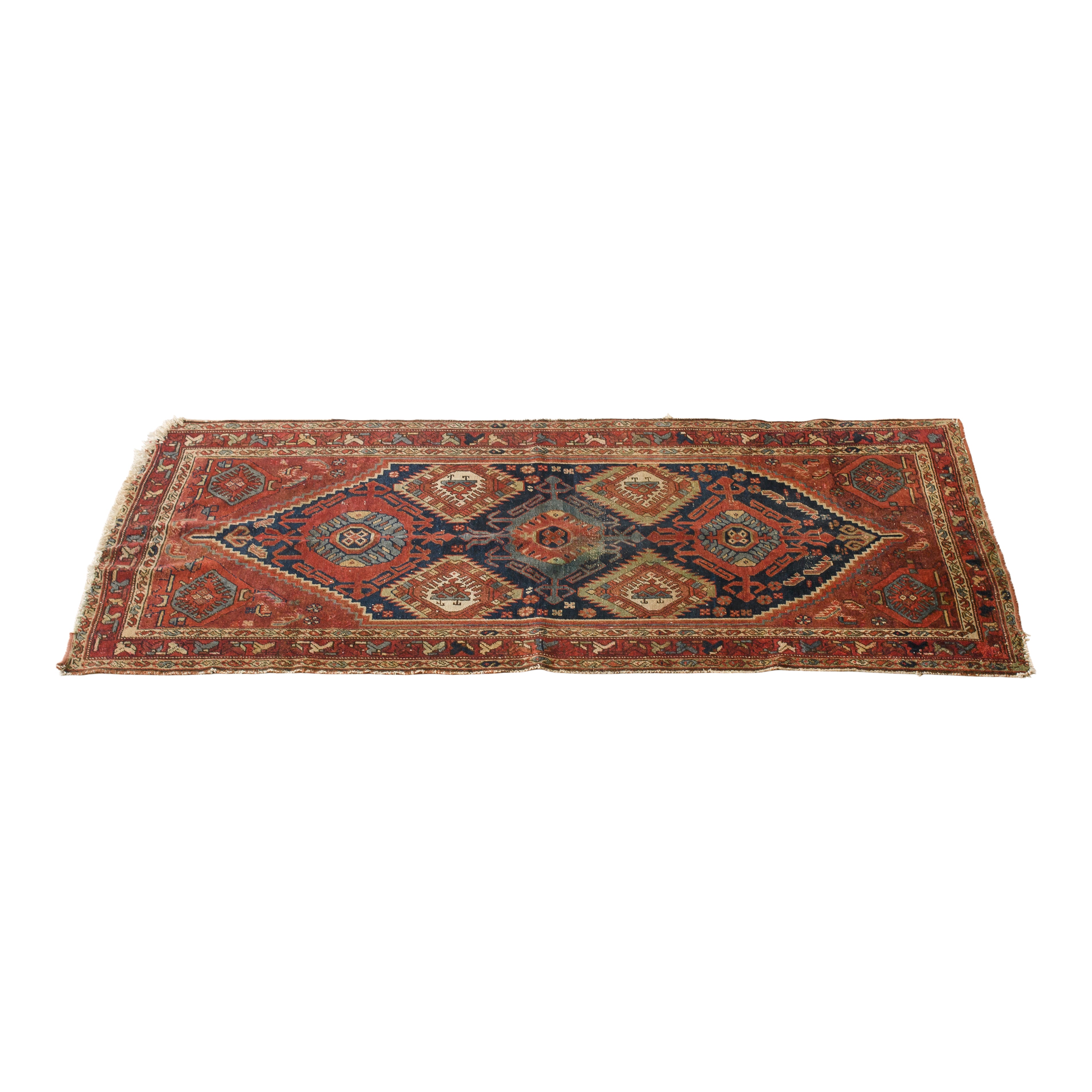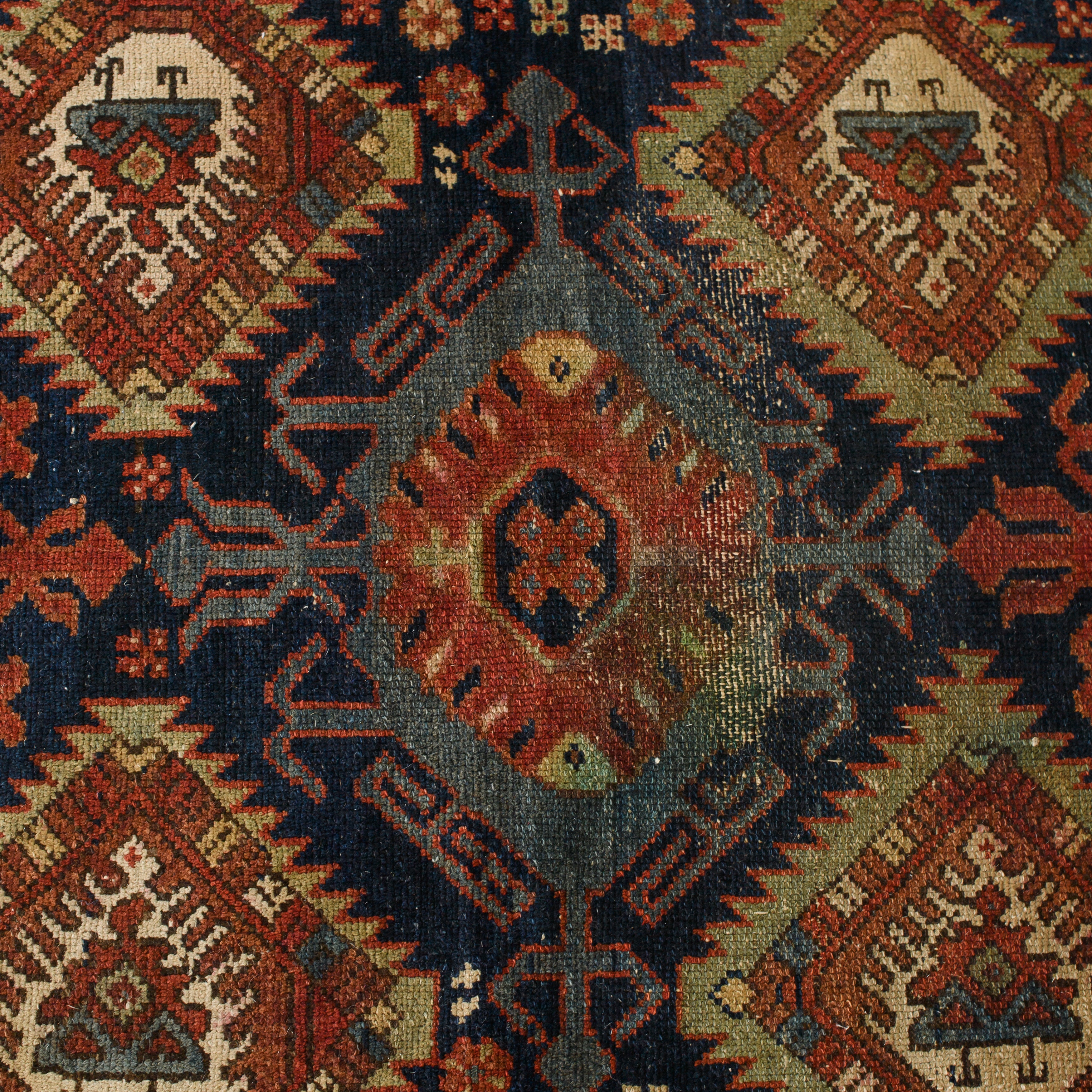 The Vidette Vintage Rug showcases a bold diamond medallion pattern in deep navy, rust, and ivory tones. Its intricate motifs and naturally faded finish bring character and history to any space. Perfect for aisles, entryways, or layered under lounge vignettes, this runner adds warmth and a touch of vintage artistry to event settings.
