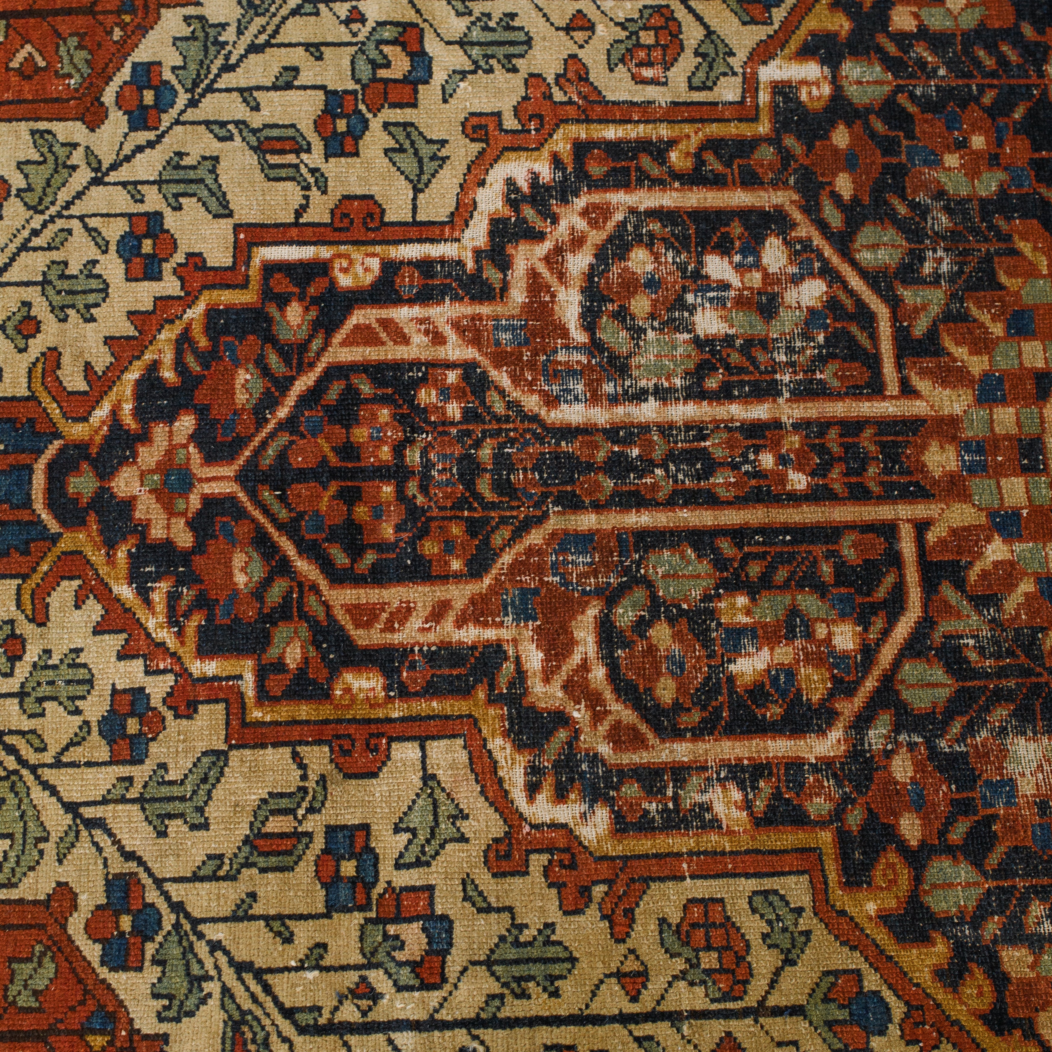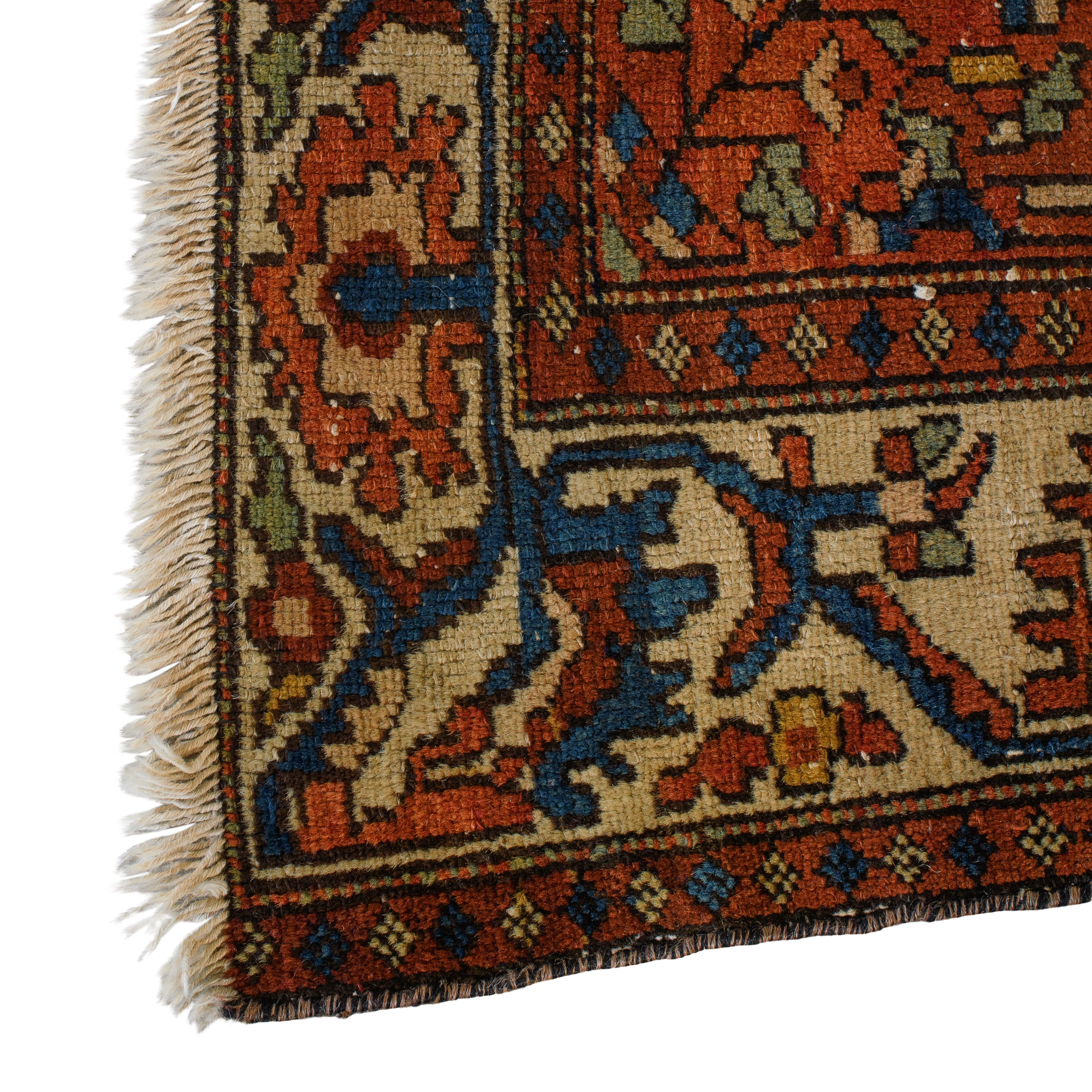 Vintage patterned rug in reds, tans, and dark colors, perfect for bringing together a dark and moody style or adding some depth to a lighter vibe. The perfect rental rug for styling any wedding, large party, or event of any kind.